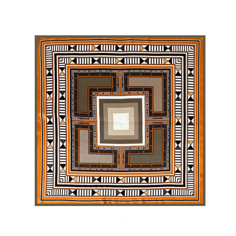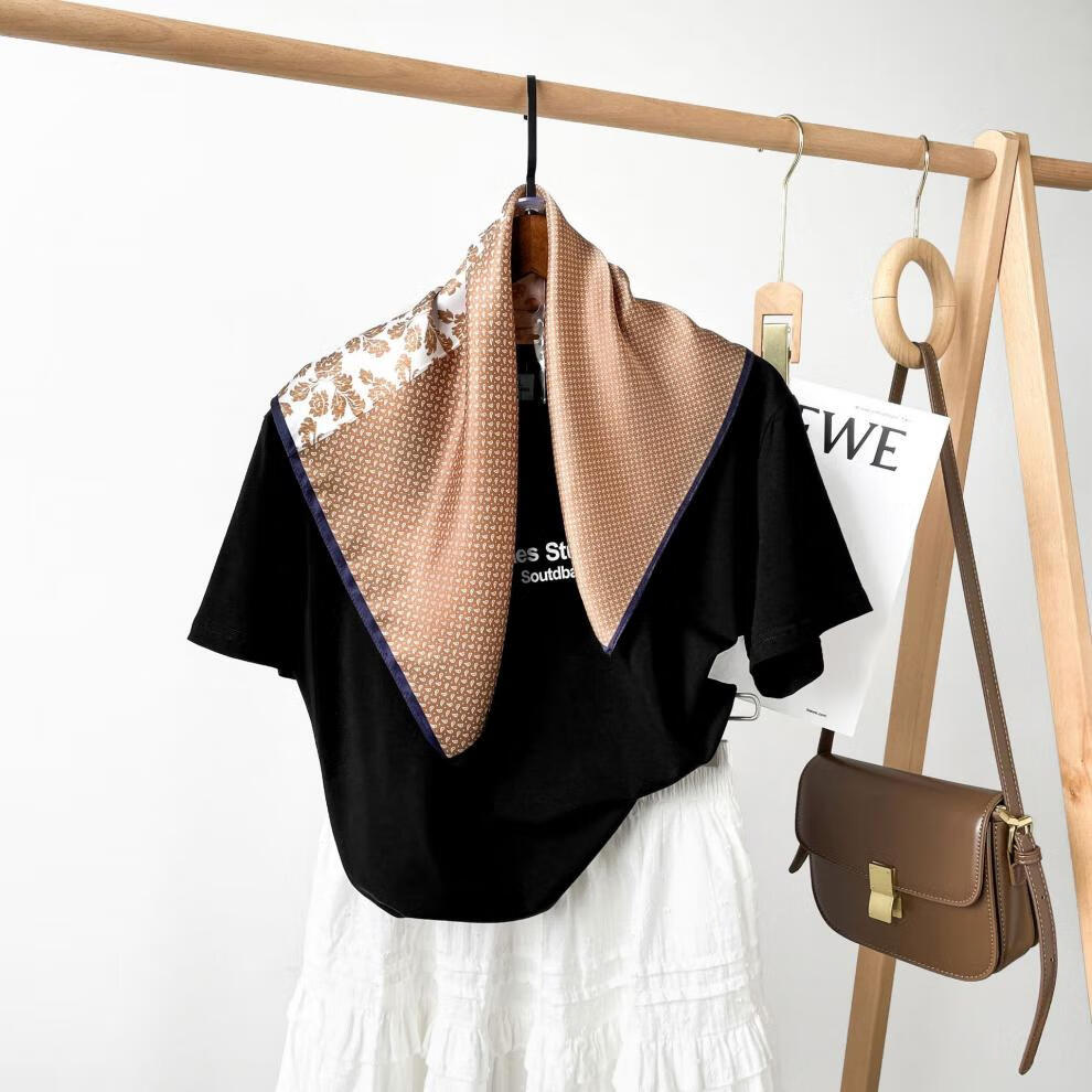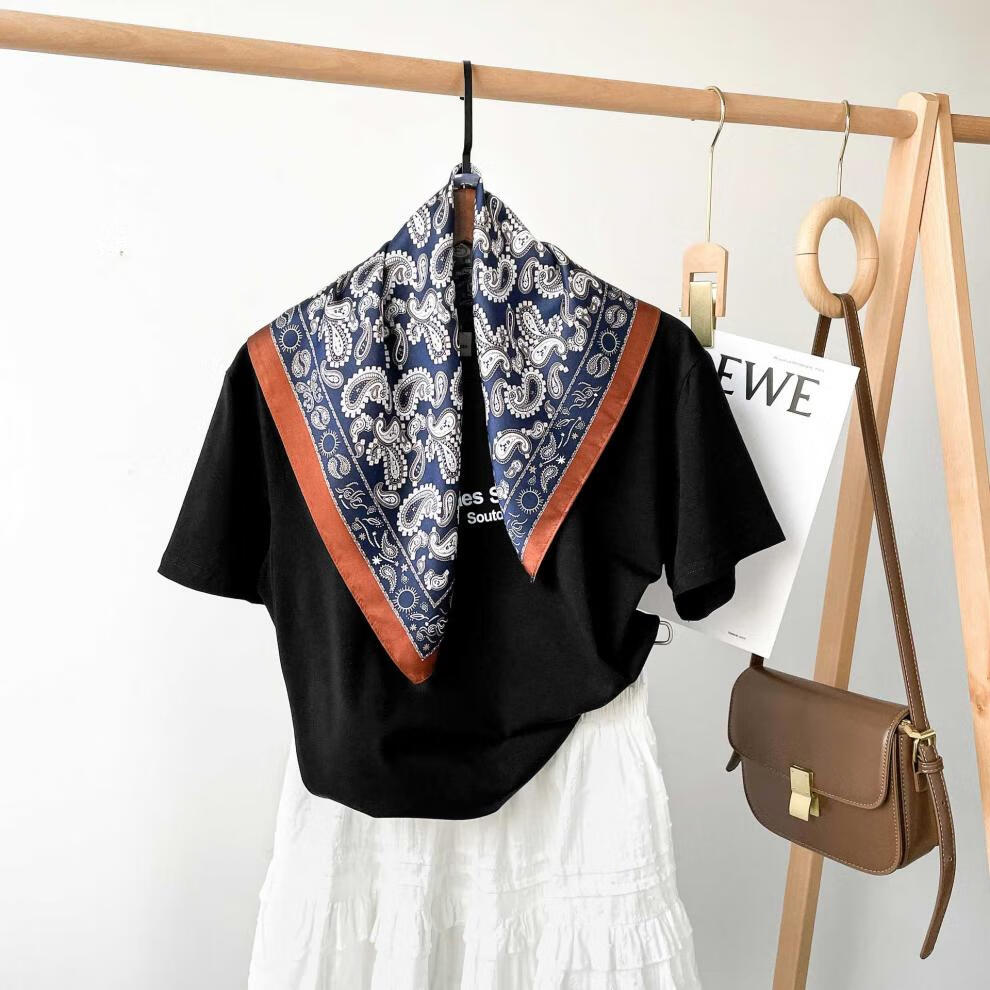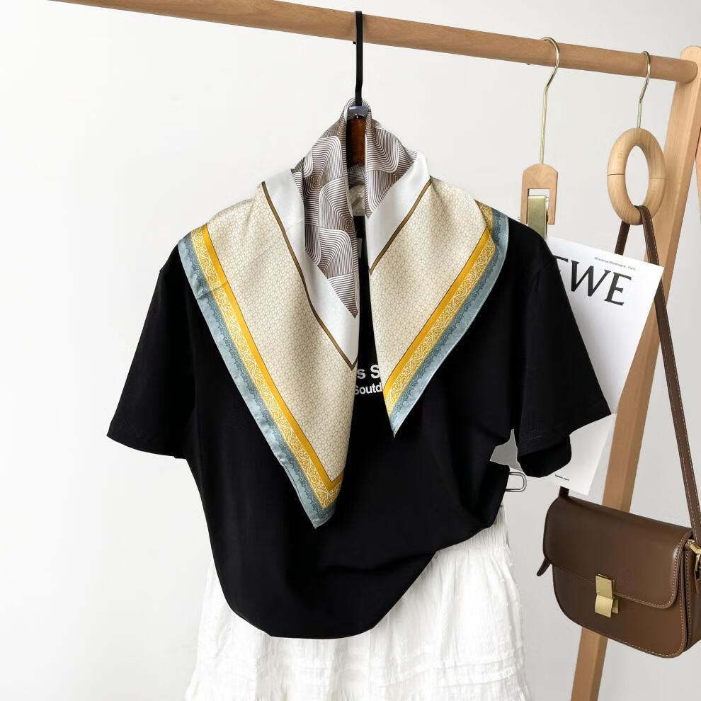 Navy Cashew 53 Bufanda cuadrada pequeña de seda Bufanda de seda coreana para mujer Bufanda de seda de morera Bufanda de moda geométrica Regalo ZS5353-Rejilla trasera beige 53*53