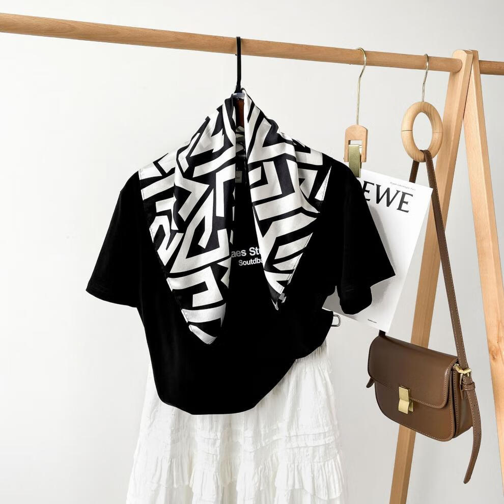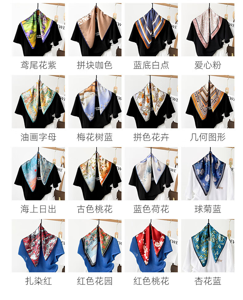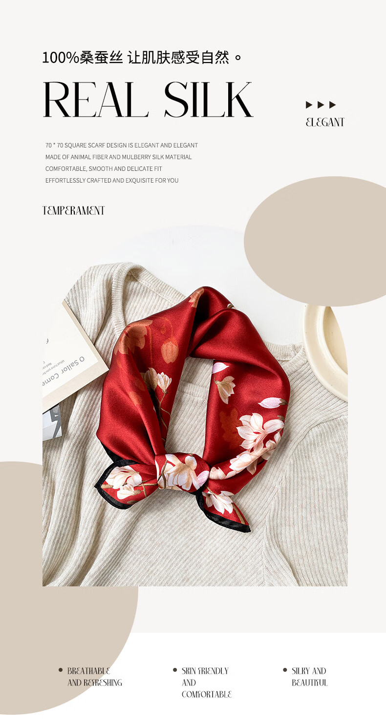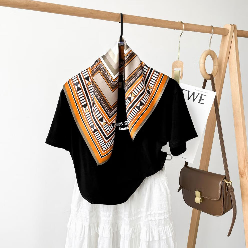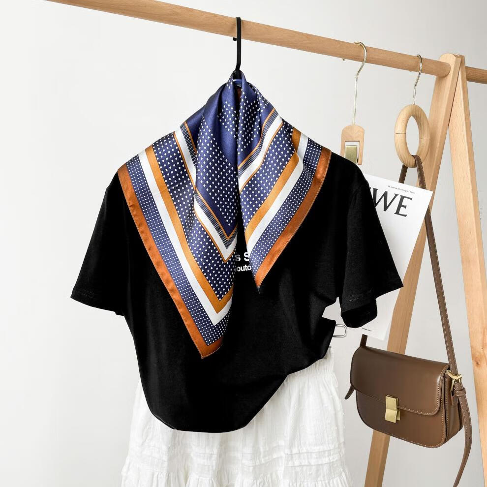 Navy Cashew 53 Bufanda cuadrada pequeña de seda Bufanda de seda coreana para mujer Bufanda de seda de morera Bufanda de moda geométrica Regalo ZS5353-Rejilla trasera beige 53*53