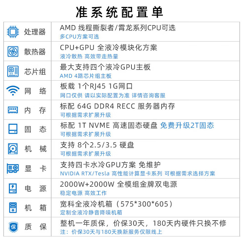 宽科AMD 5代霄龙/9965/9655 四路全液冷RTX4090/A800/5090/A100 静音GPU DeepSeek仿真深度学习工作站 AMD EPYC 9755 256核心512线程 256G内存+RTX 5090 32G*4