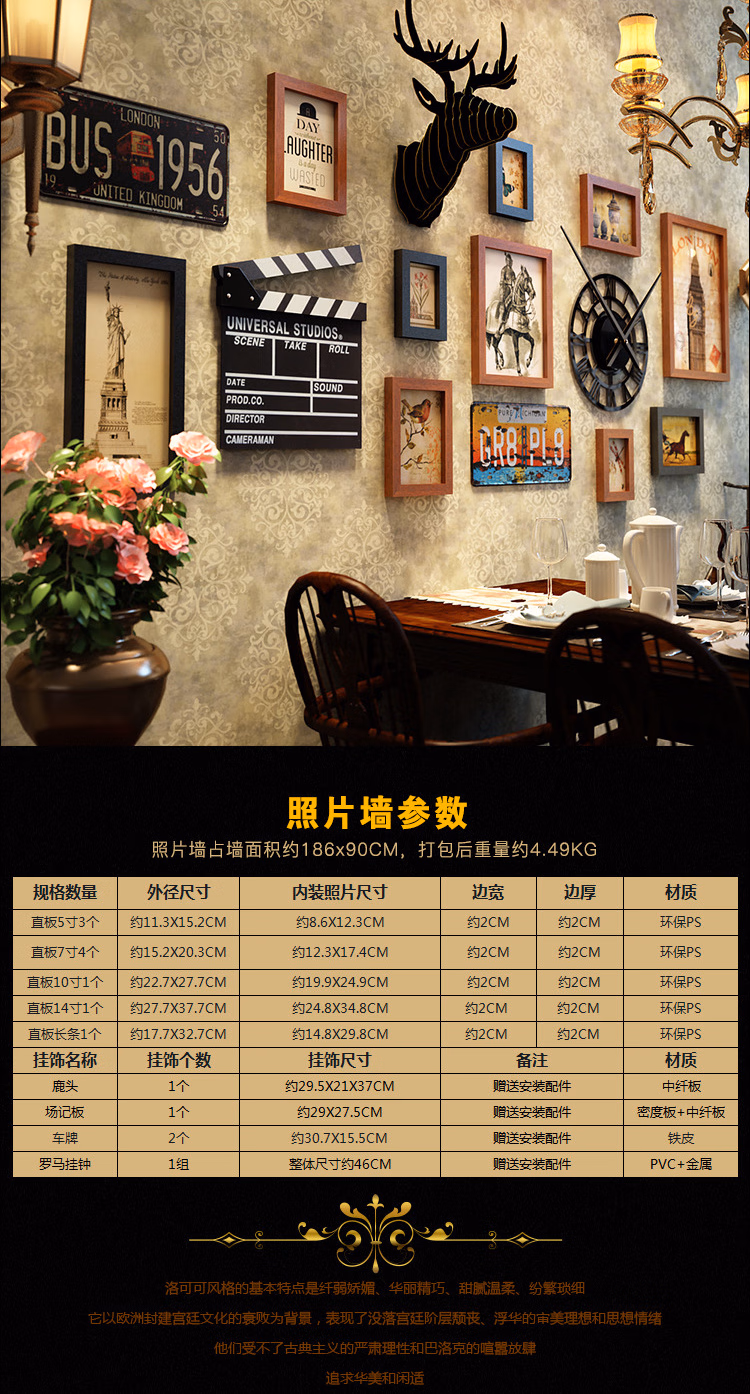 Du Zhunyu Mur de photos personnalité créative décoration murale rétro style industriel bar décoration murale magasin de thé au lait barbecue restaurant 19 pièces combinaison 2694 styles