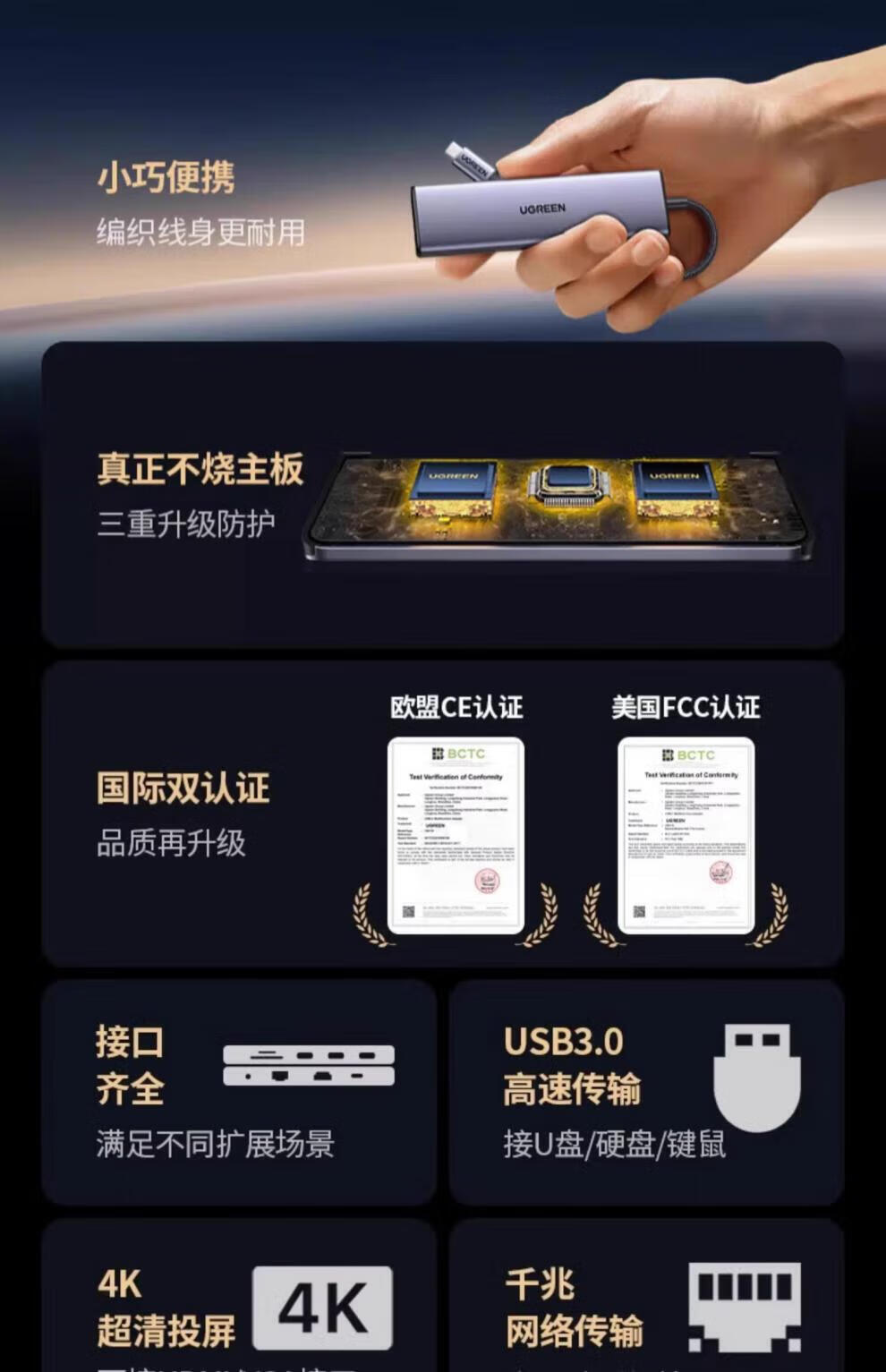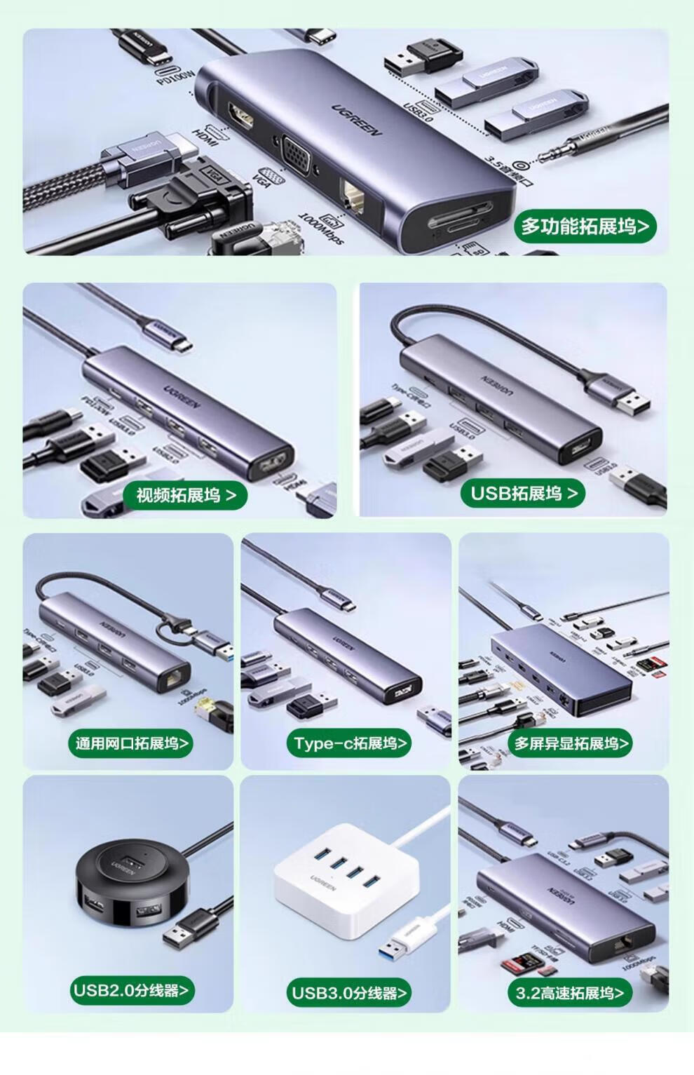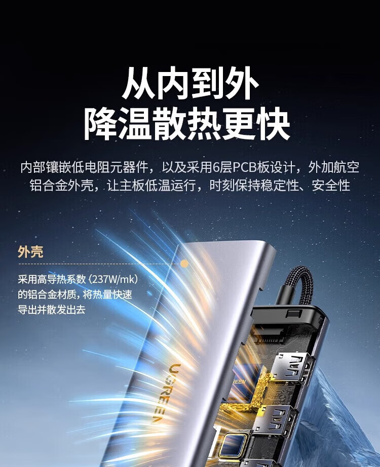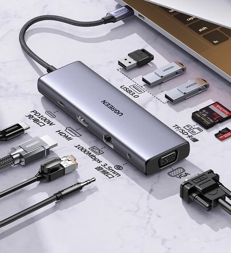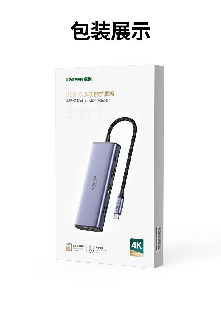 绿联拓展坞typec扩展转换器hub集分线器usb插头多口雷电4网线多功能转接头适用iPad平板macbookpro笔记 15602【9合1四屏异显】HDMI(60Hz)+ 0.2m