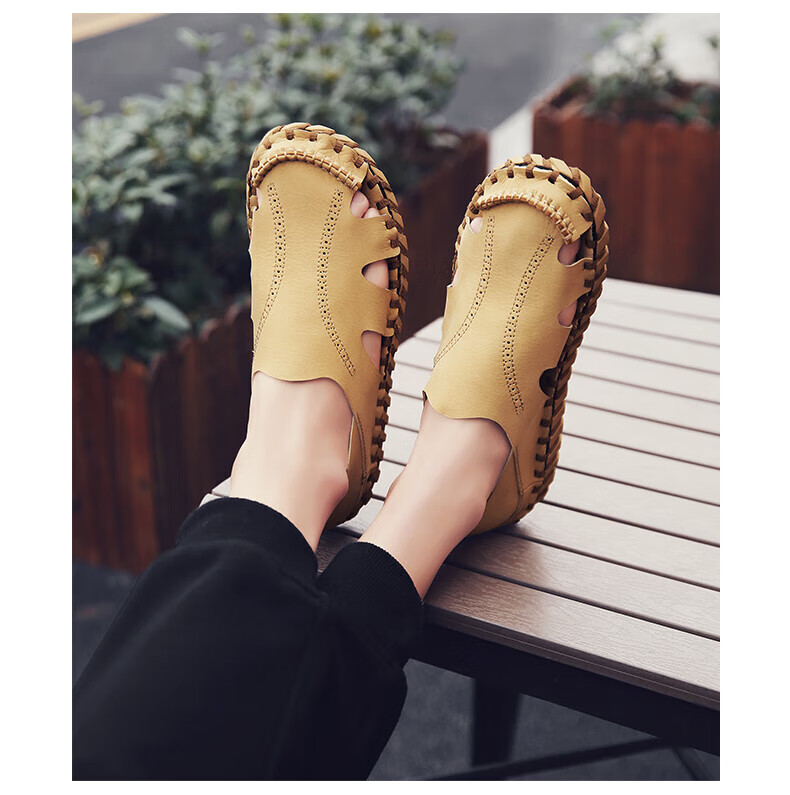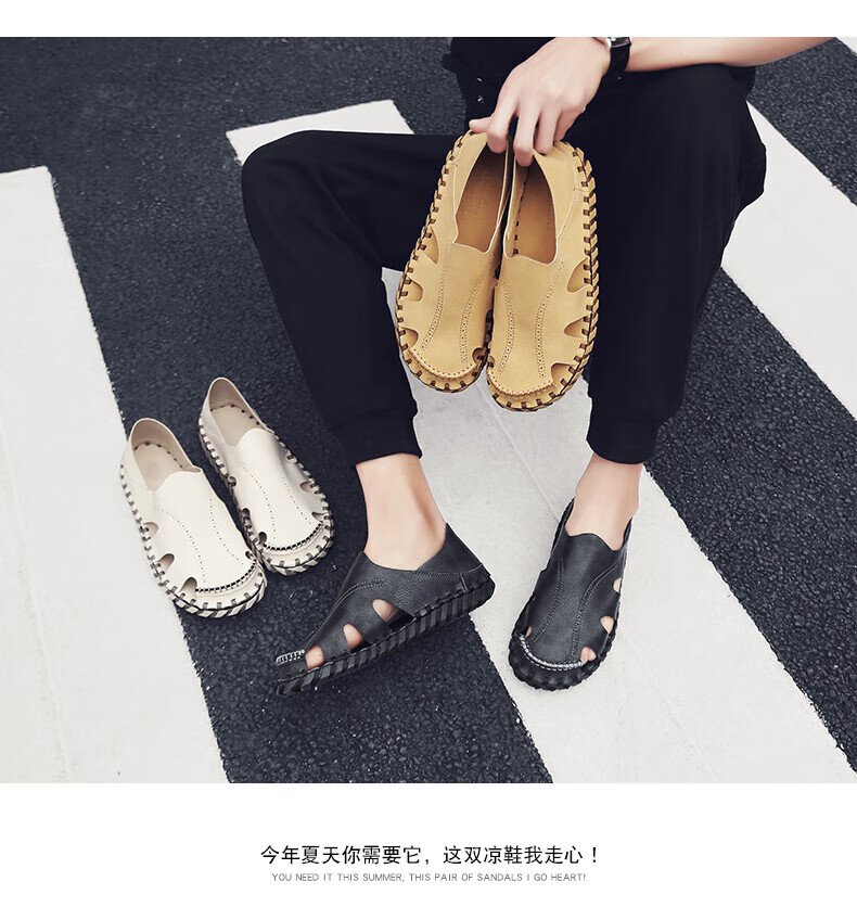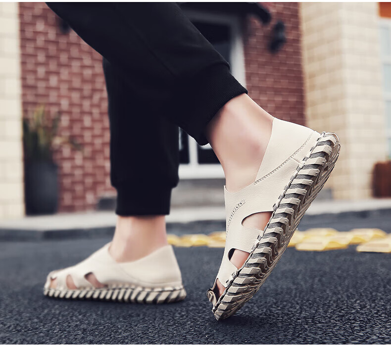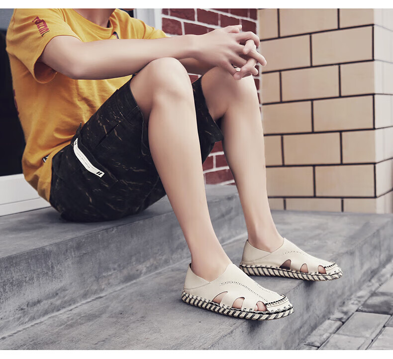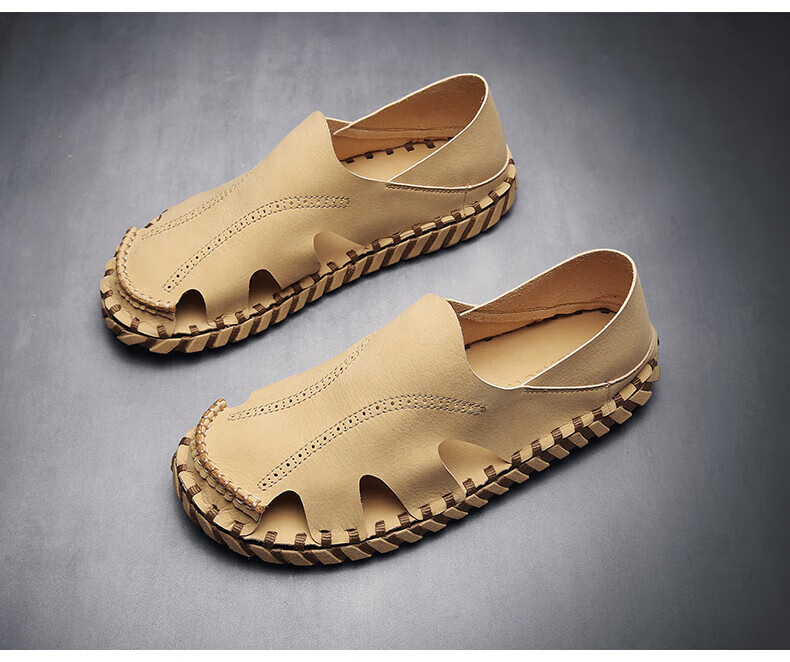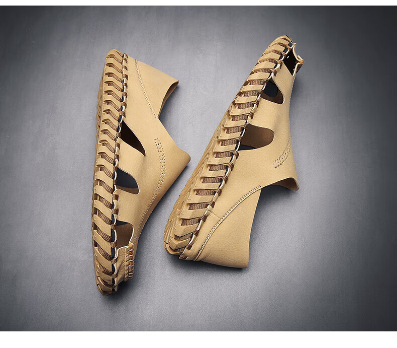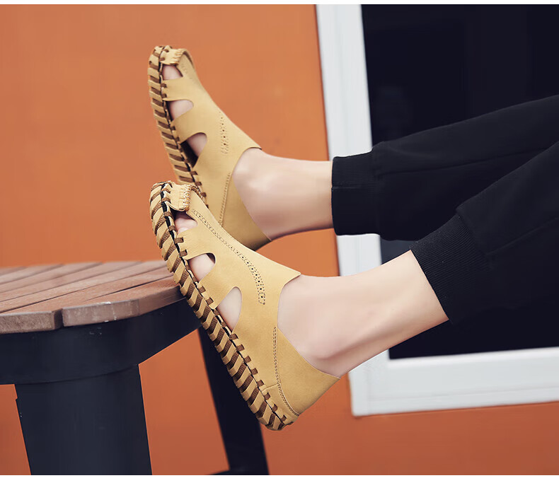 Woodpecker Roman Sandals Summer Extra Large Black New Breathable Lazy Driving Casual Shoes Soft Sole Driving Men's Shoes 9926 Beige 38