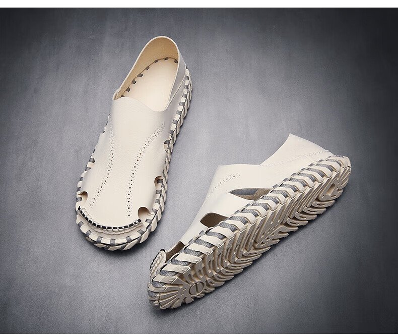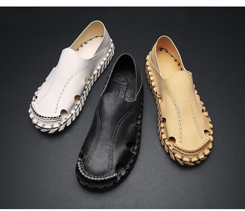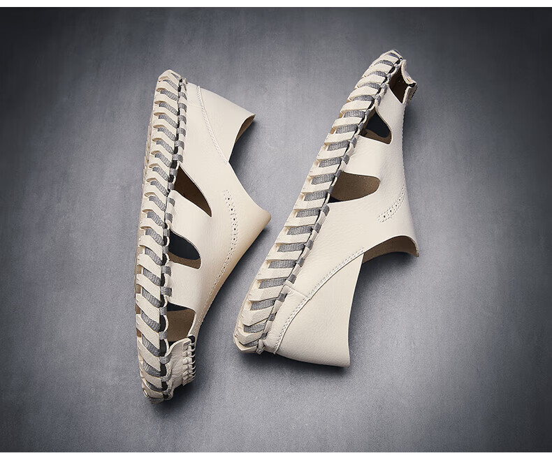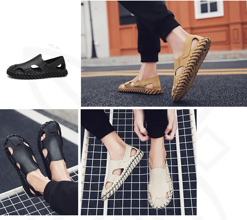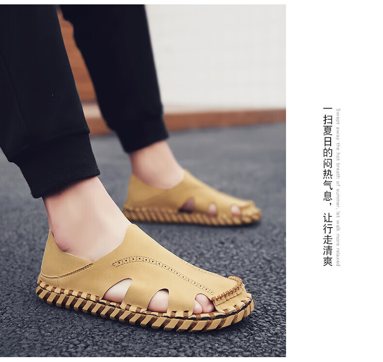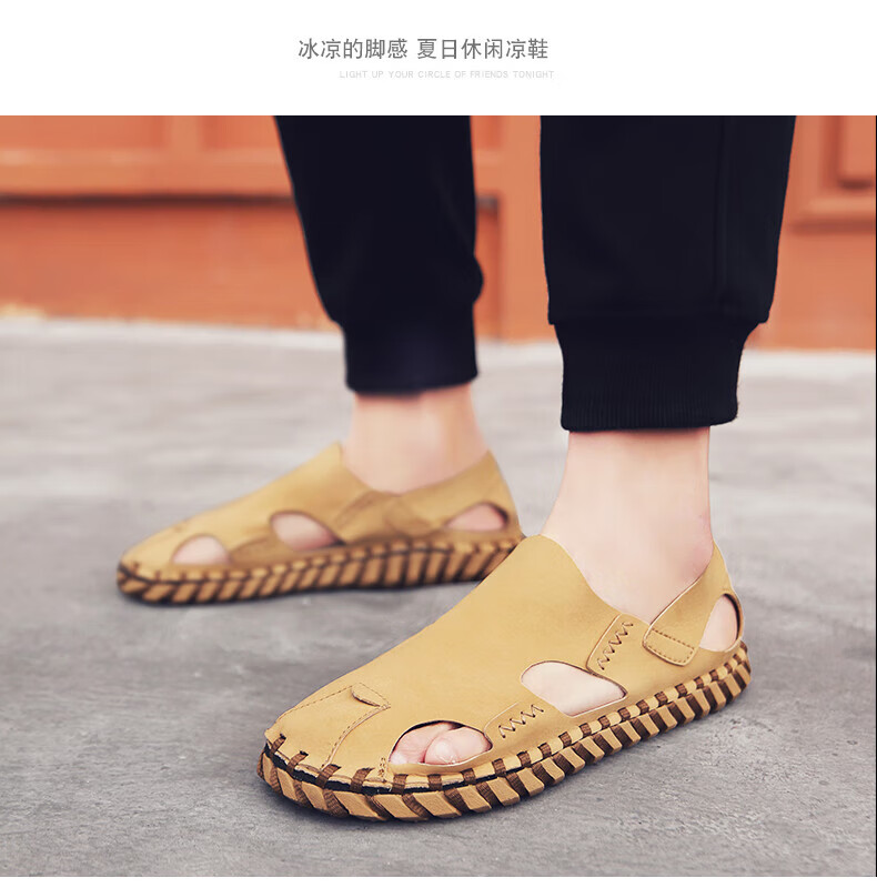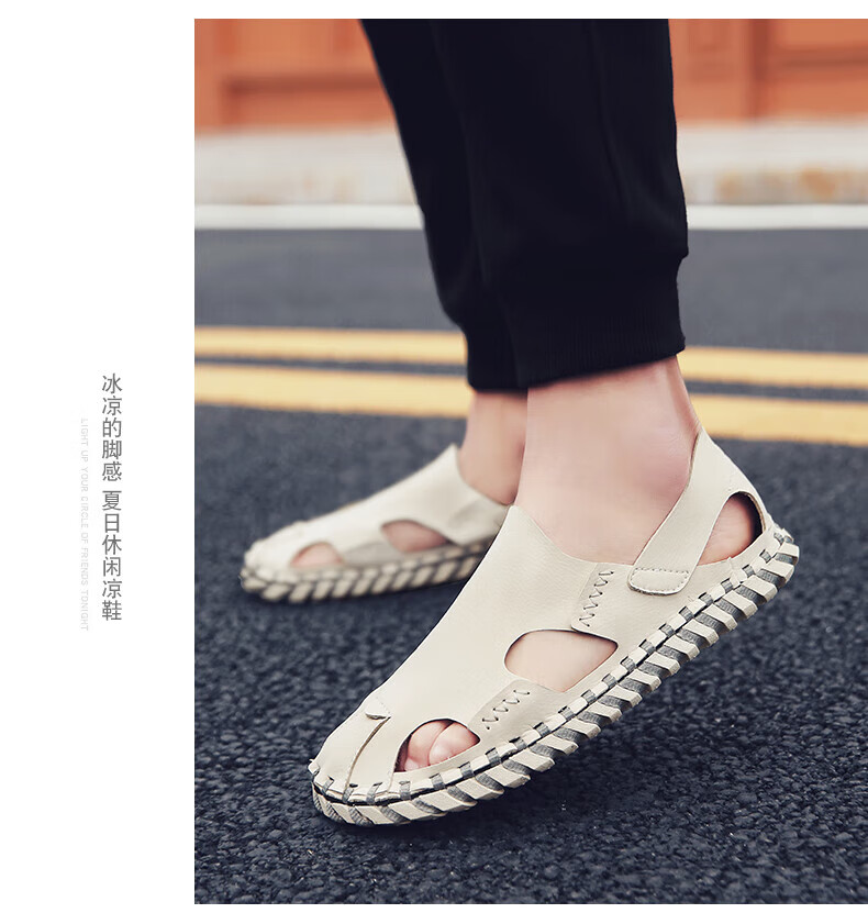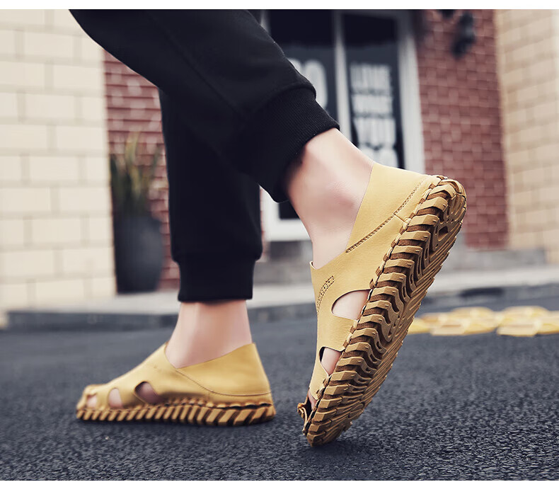 Woodpecker Roman Sandals Summer Extra Large Black New Breathable Lazy Driving Casual Shoes Soft Sole Driving Men's Shoes 9926 Beige 38
