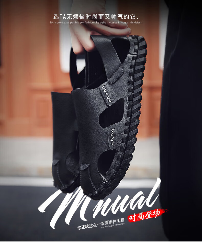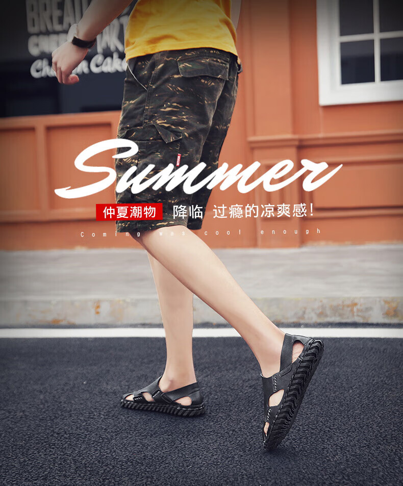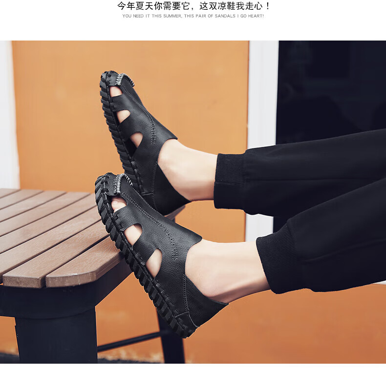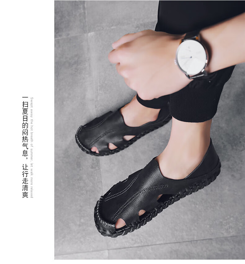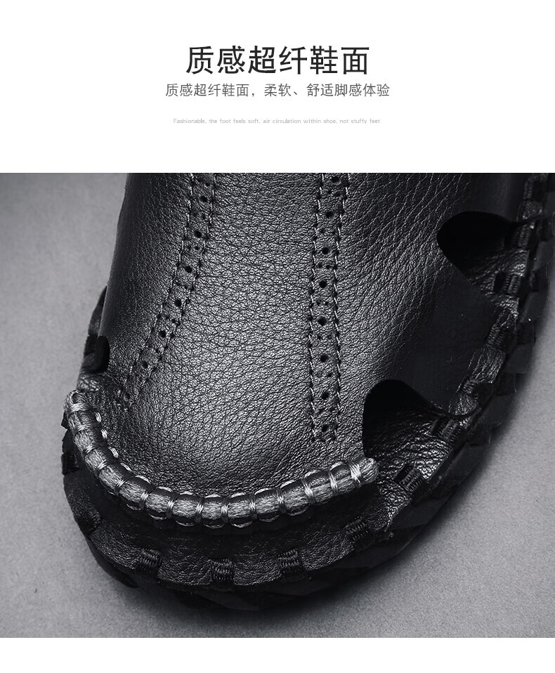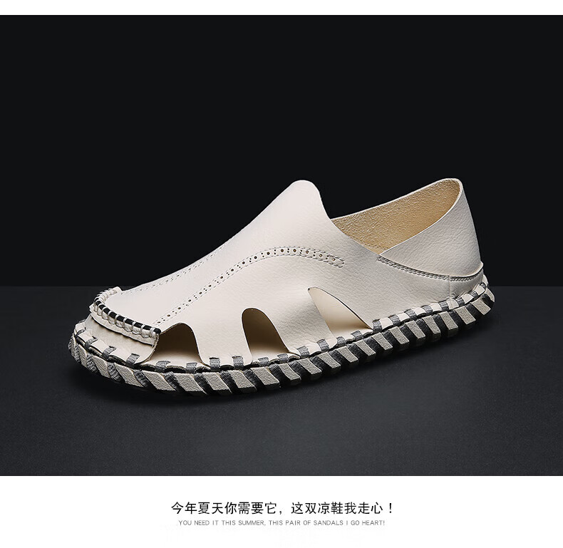 Woodpecker Roman Sandals Summer Extra Large Black New Breathable Lazy Driving Casual Shoes Soft Sole Driving Men's Shoes 9926 Beige 38