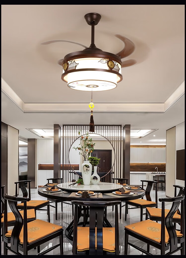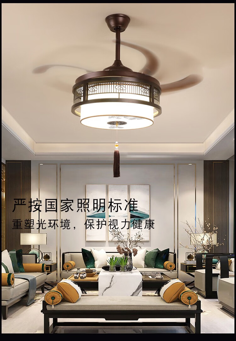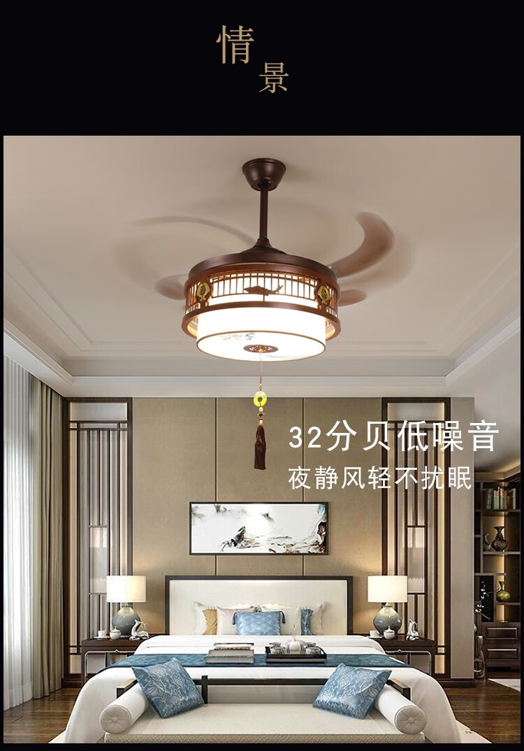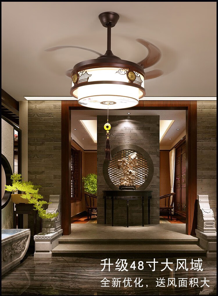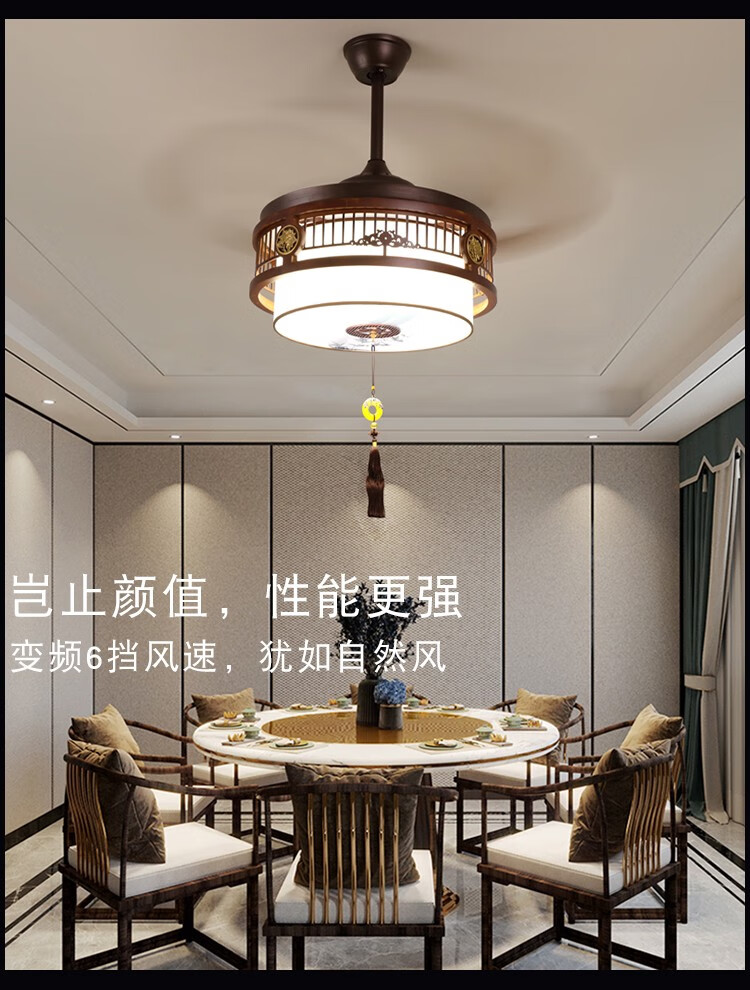 Hualeji nouveau style chinois ventilateur lustre chambre salon bois massif invisible avec course rétro ventilateur conversion de fréquence restaurant lustre 9896 tricolore 48 pouces conversion de fréquence de débit cuivre
