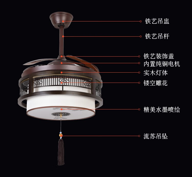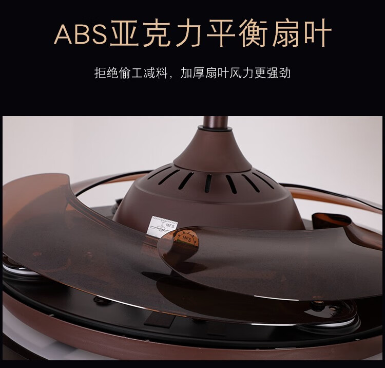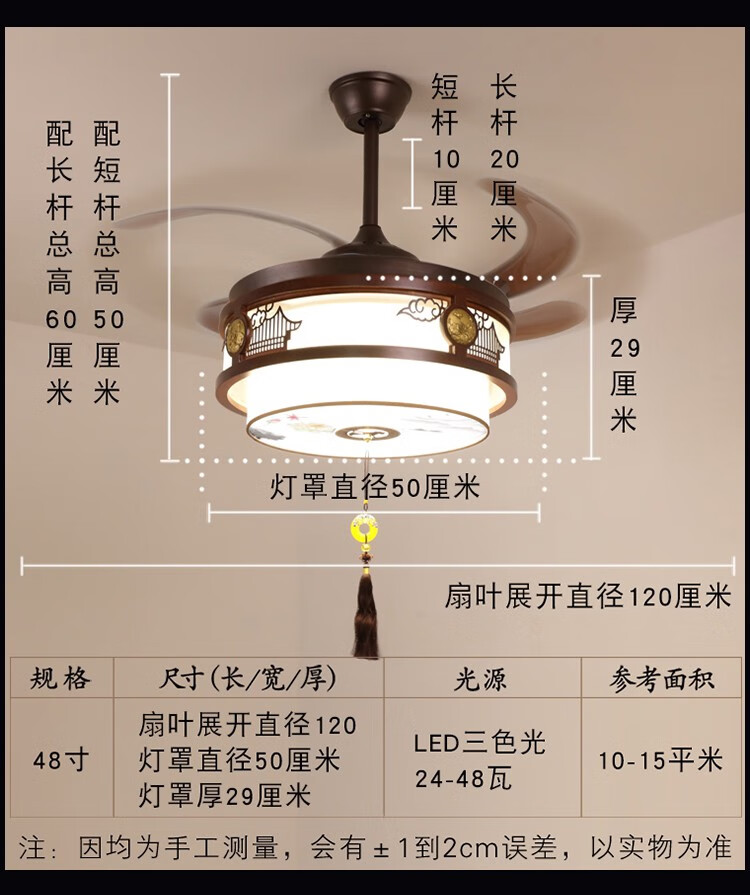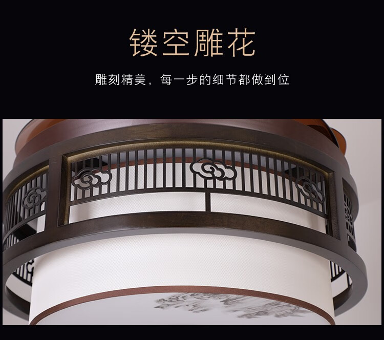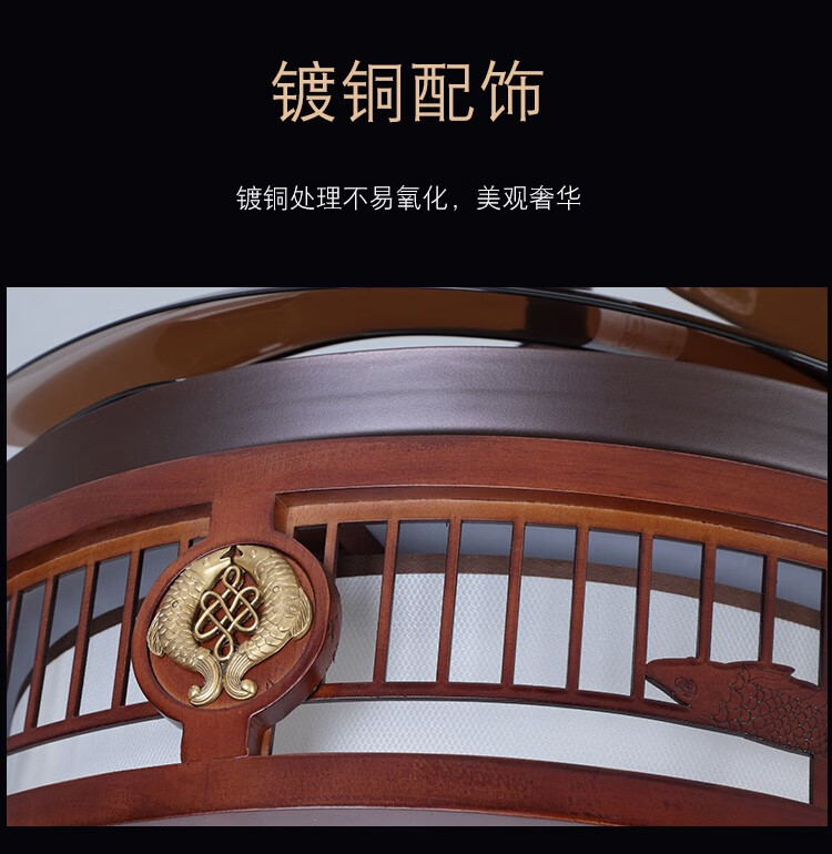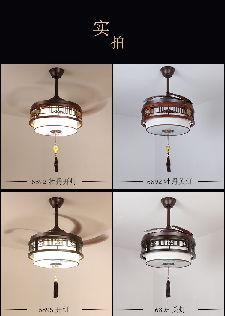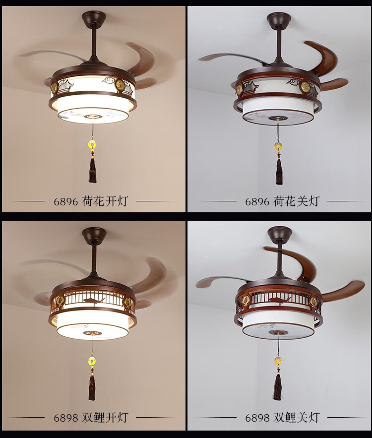 Hualeji nouveau style chinois ventilateur lustre chambre salon bois massif invisible avec course rétro ventilateur conversion de fréquence restaurant lustre 9896 tricolore 48 pouces conversion de fréquence de débit cuivre