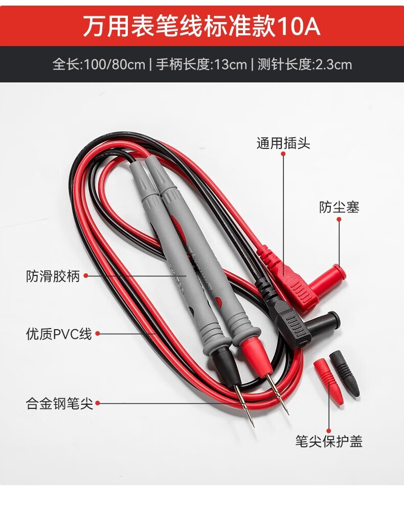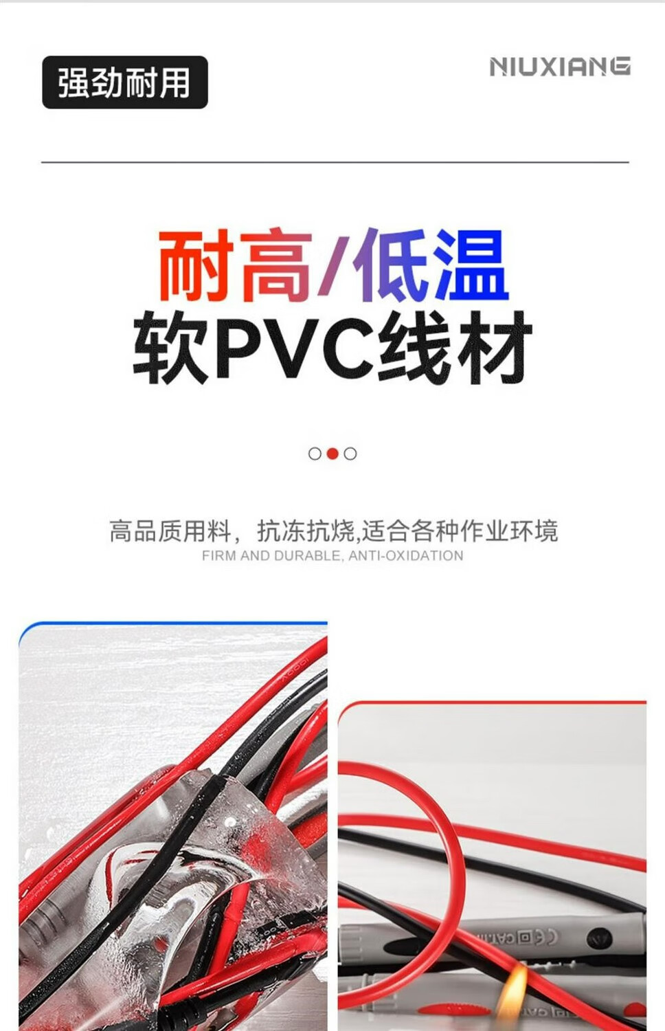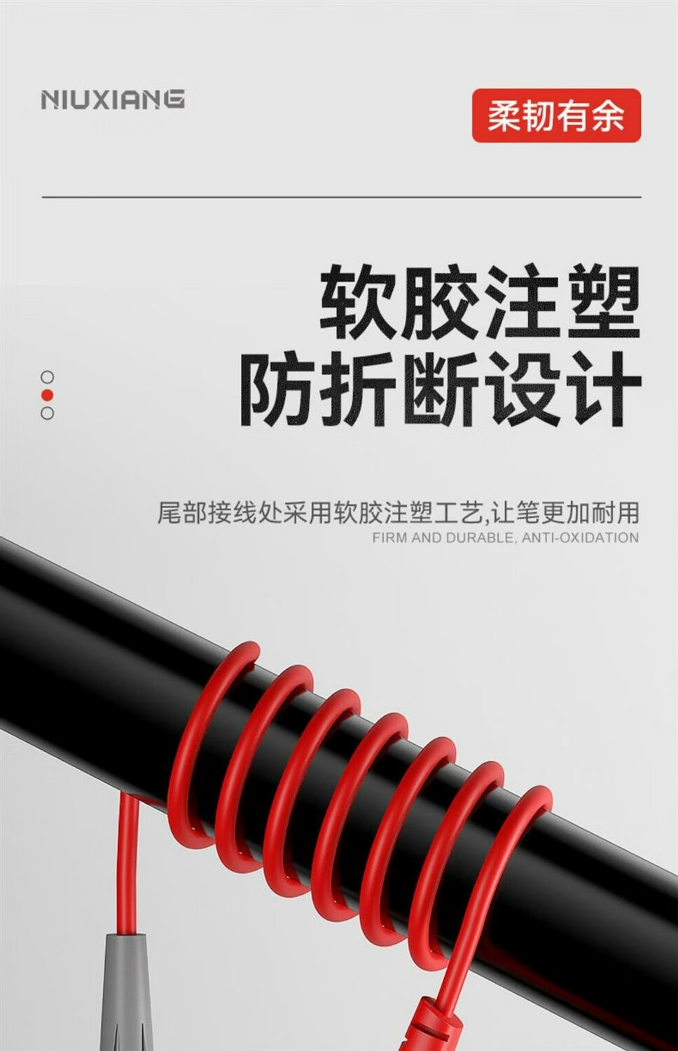 万用表表笔特尖探针通用试电笔数字高精准硅胶线测试笔 万用表黑色款DT9207+加强款表笔