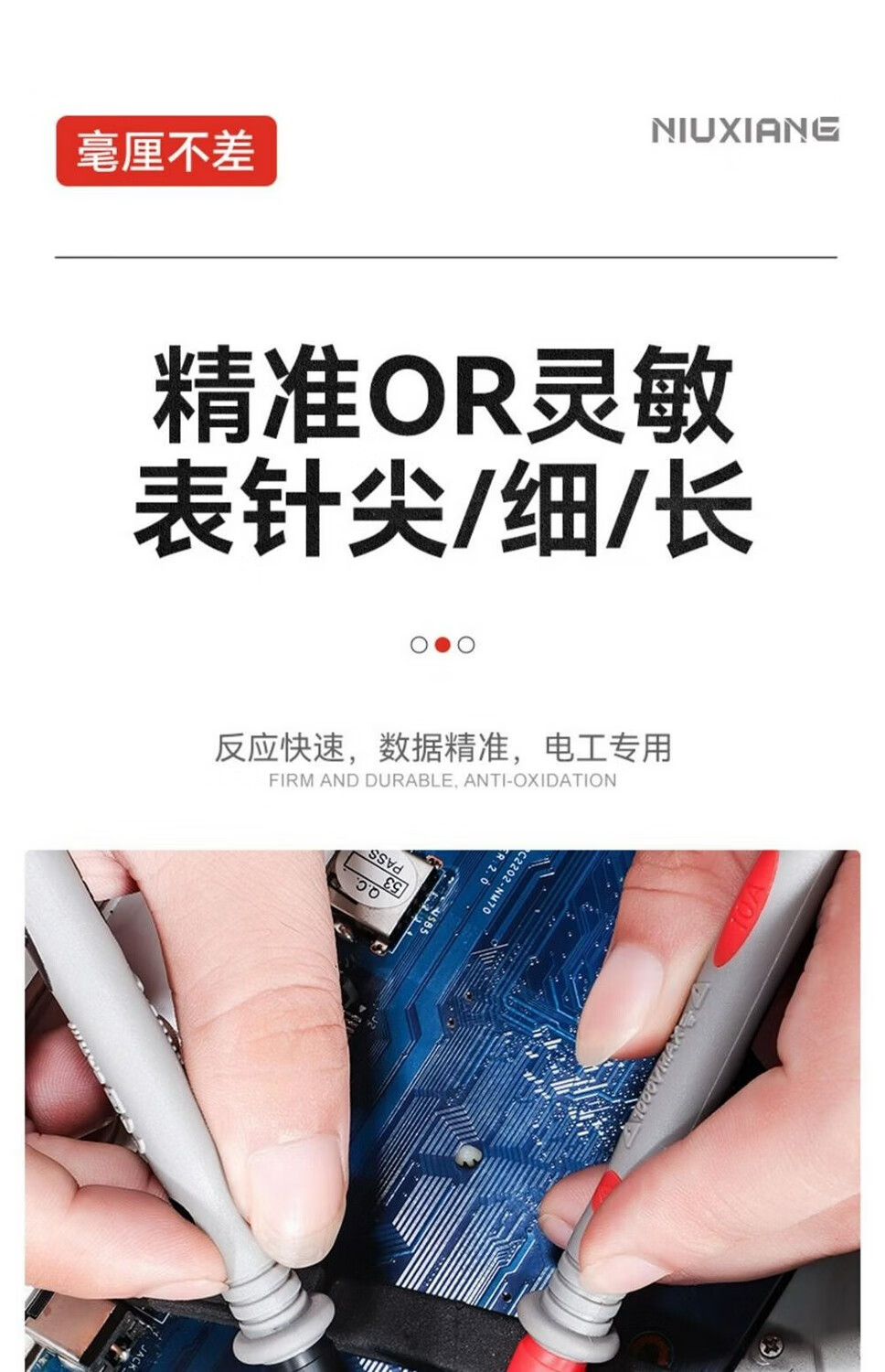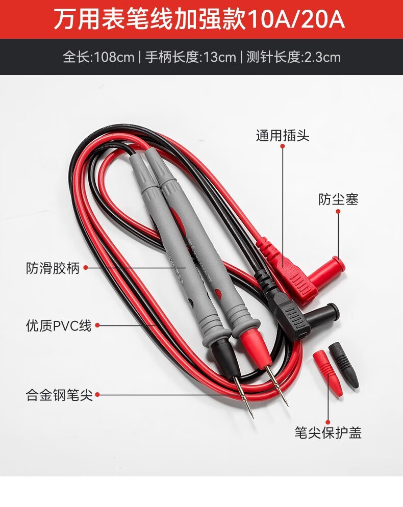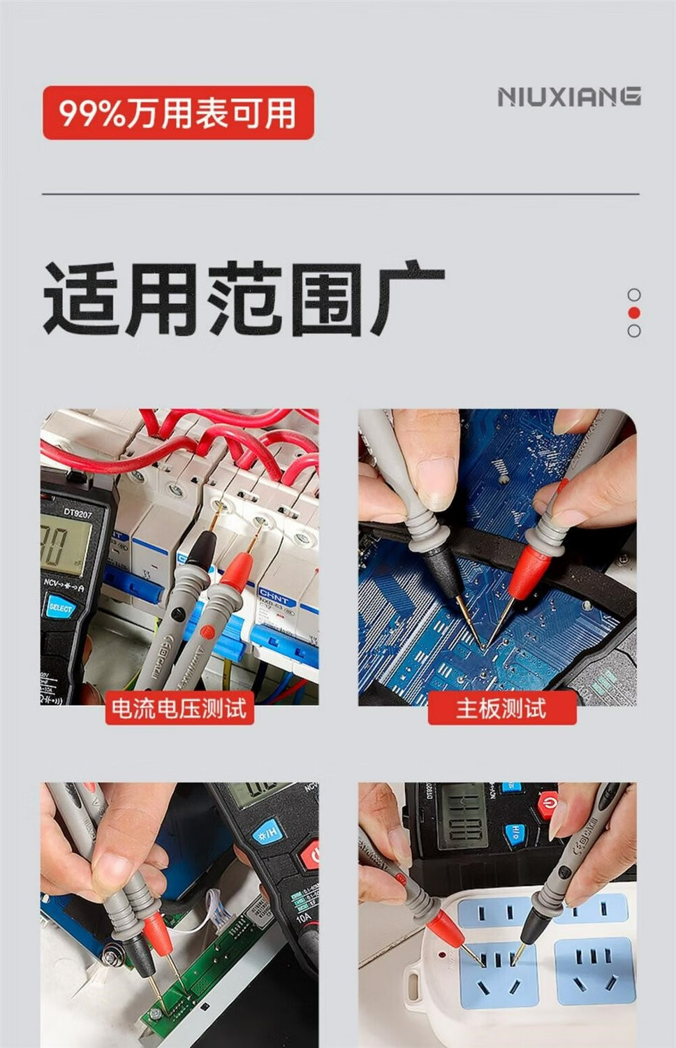万用表表笔特尖探针通用试电笔数字高精准硅胶线测试笔 万用表黑色款DT9207+加强款表笔