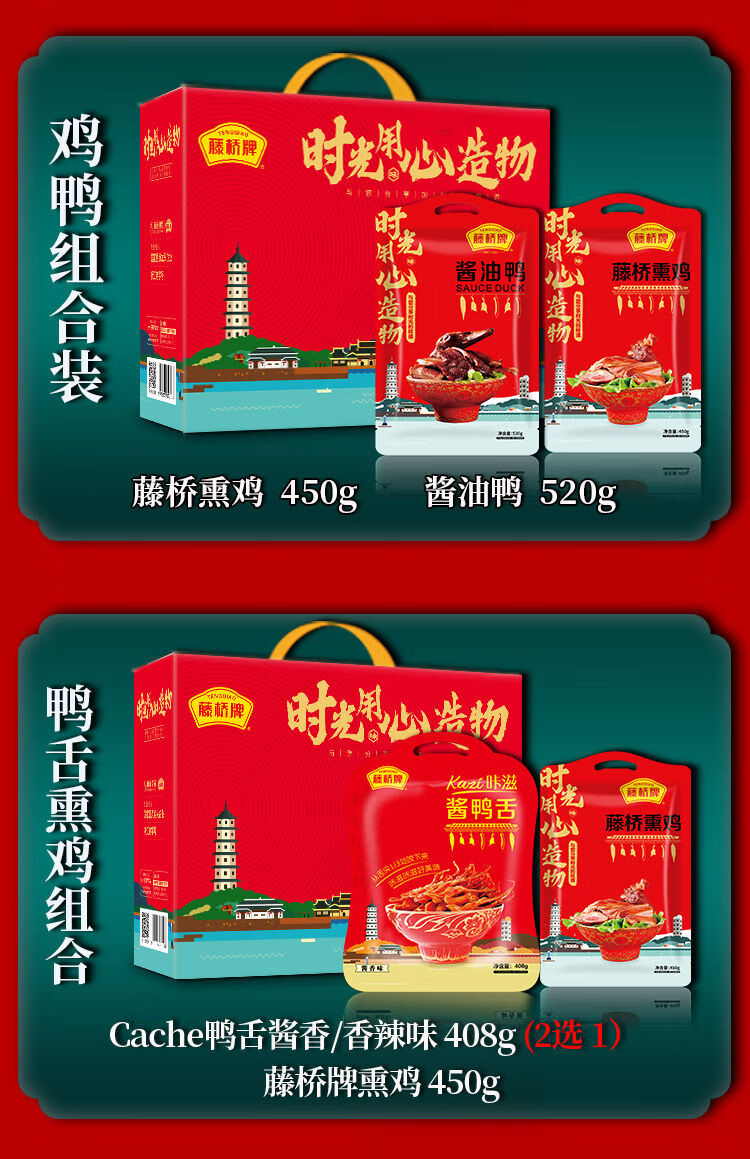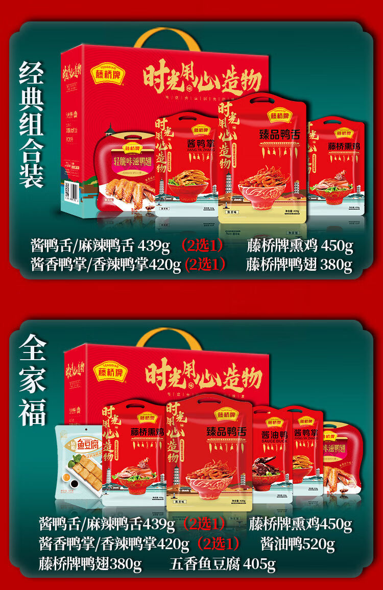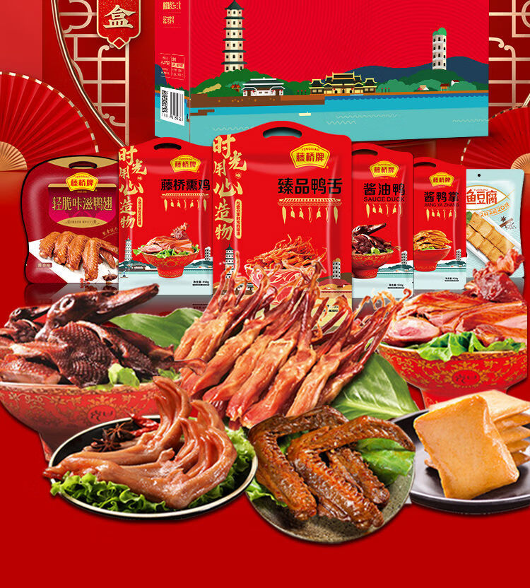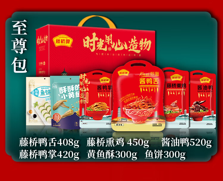 藤桥温州特产熏鸡酱油鸭舌掌年货节日组合礼盒正宗特色小吃零食 经济组合1号/1343克