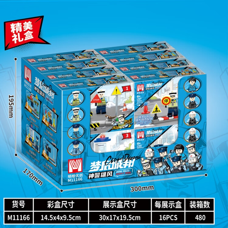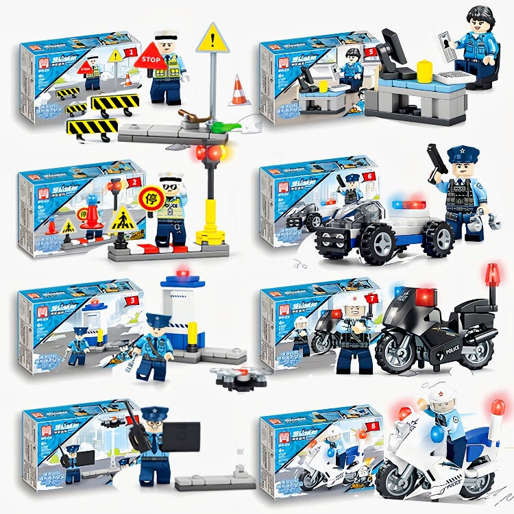 明格优品11166城市警察系列积木拼装人仔武器玩具儿童男孩礼物 拍1发八盒整套【明格优品11166