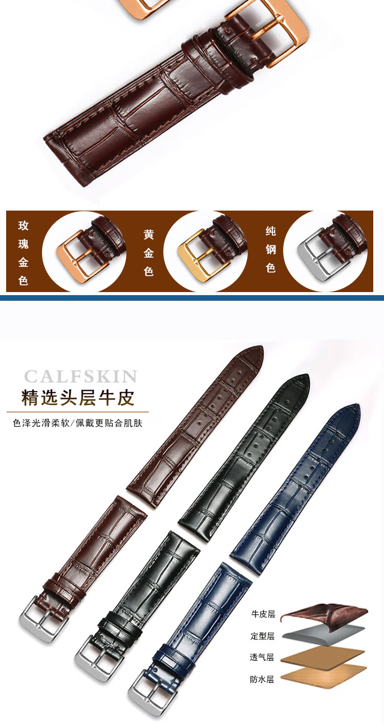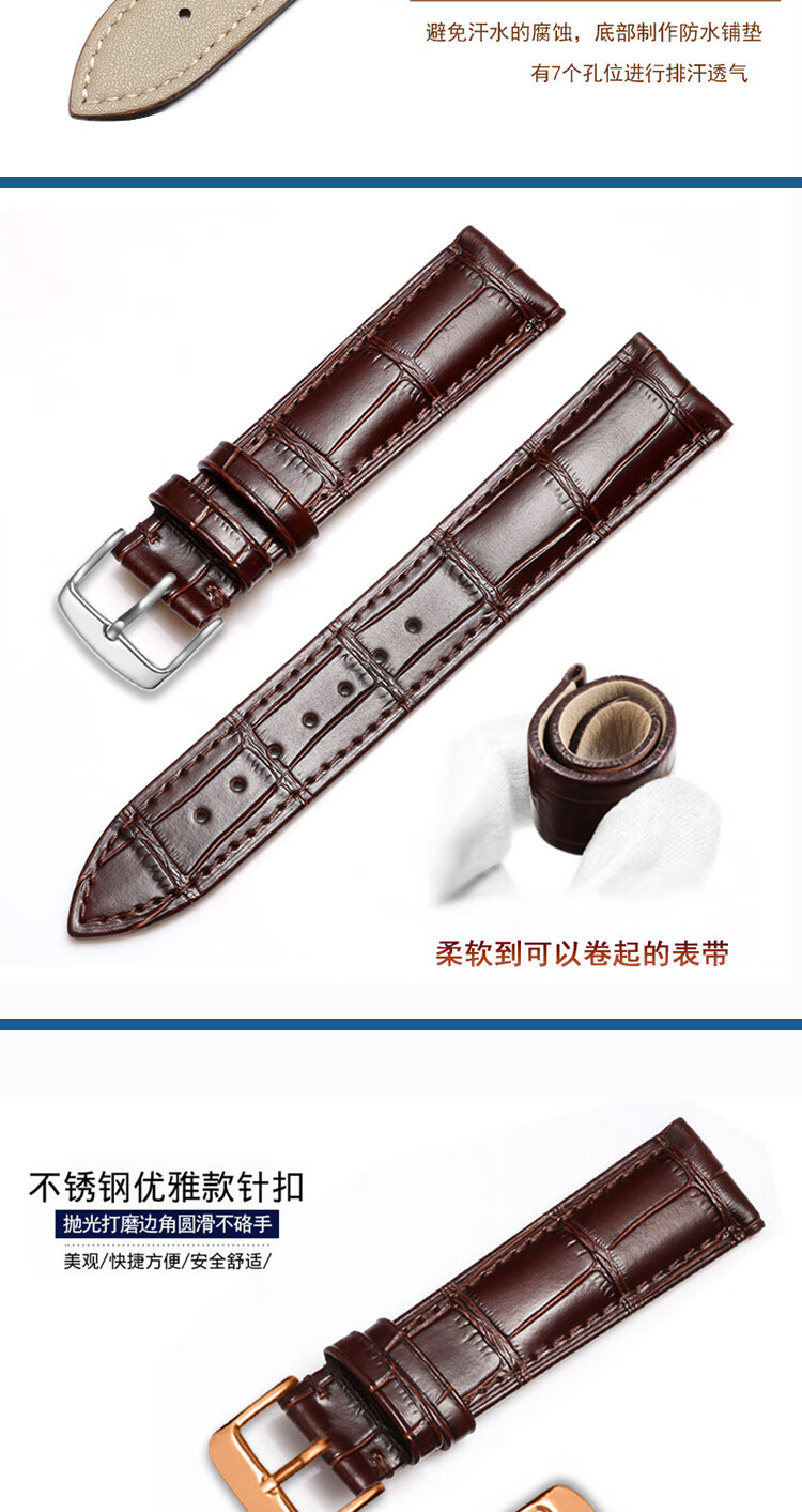 CASTLEKNIGHT阿玛尼原装真皮表带男女满天星1926/11244/11269/11149/11322女14 黑色+银色针扣 12mm