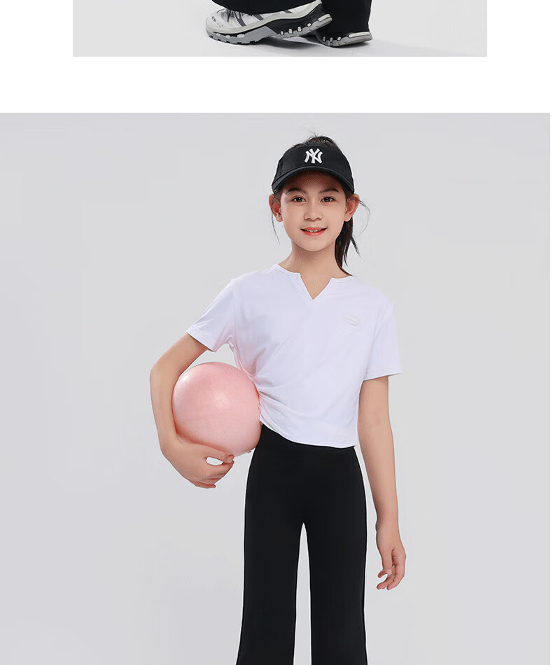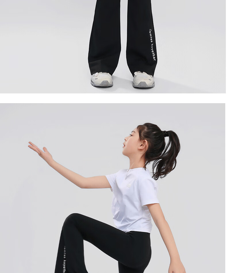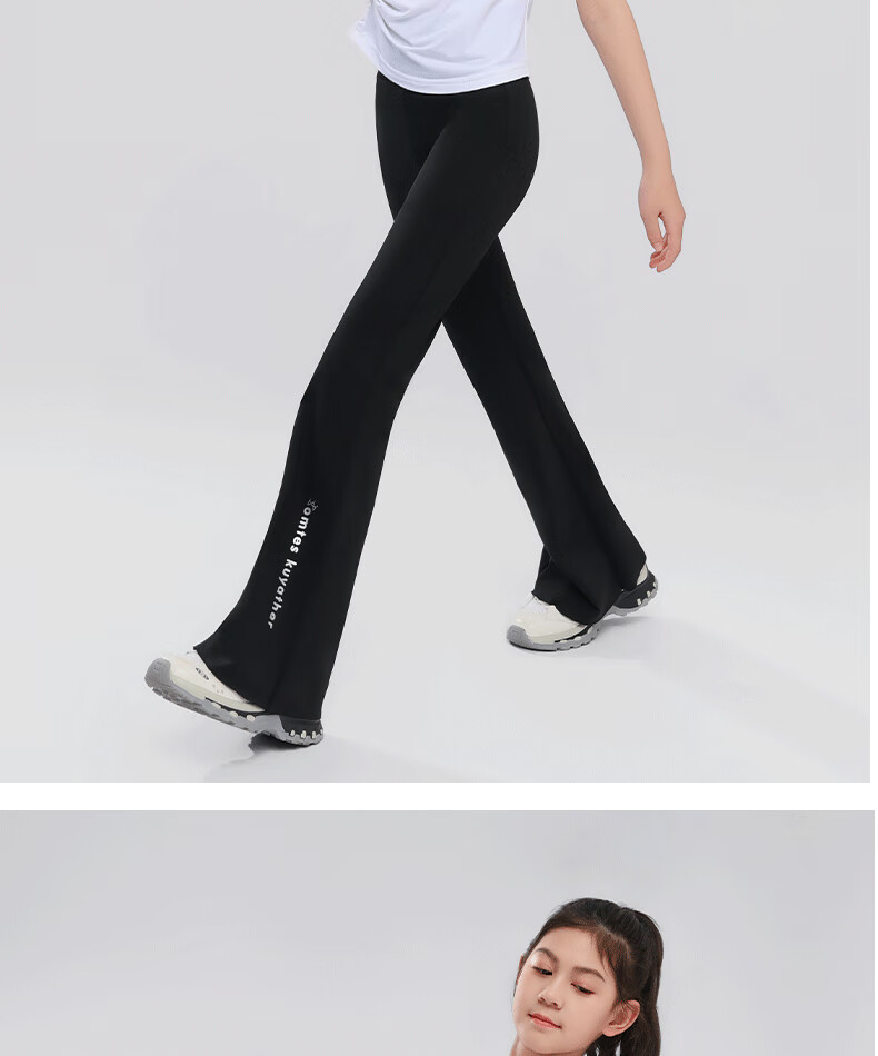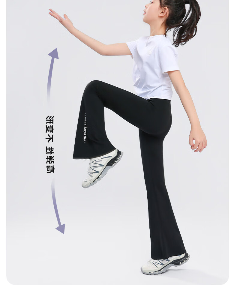 小猪彼特女童喇叭裤2025夏季新款儿童鲨鱼裤运动速干瑜伽裤子中大童微喇裤 9889白色9669黑色【套装】 140 cm