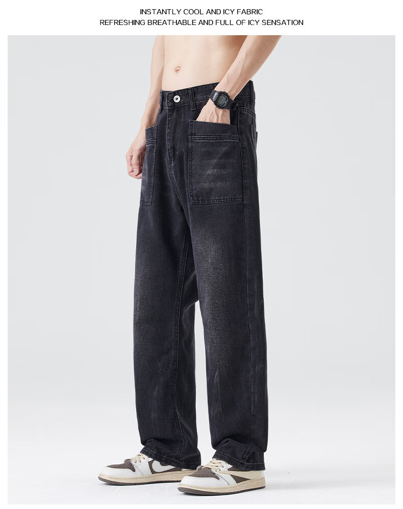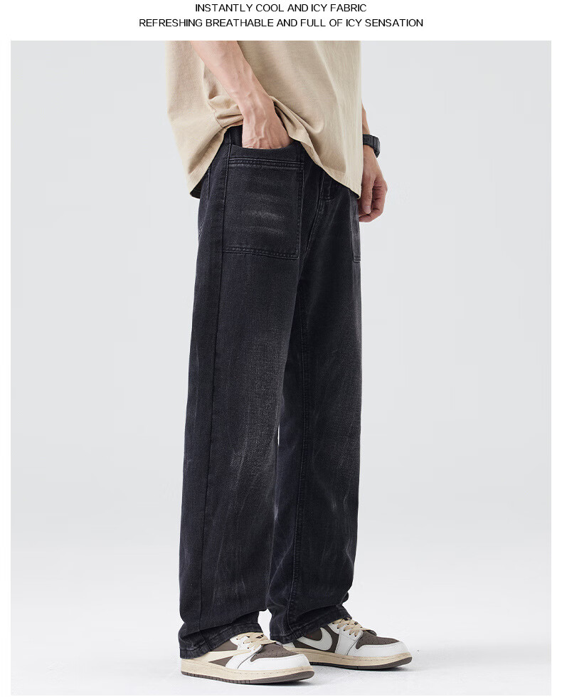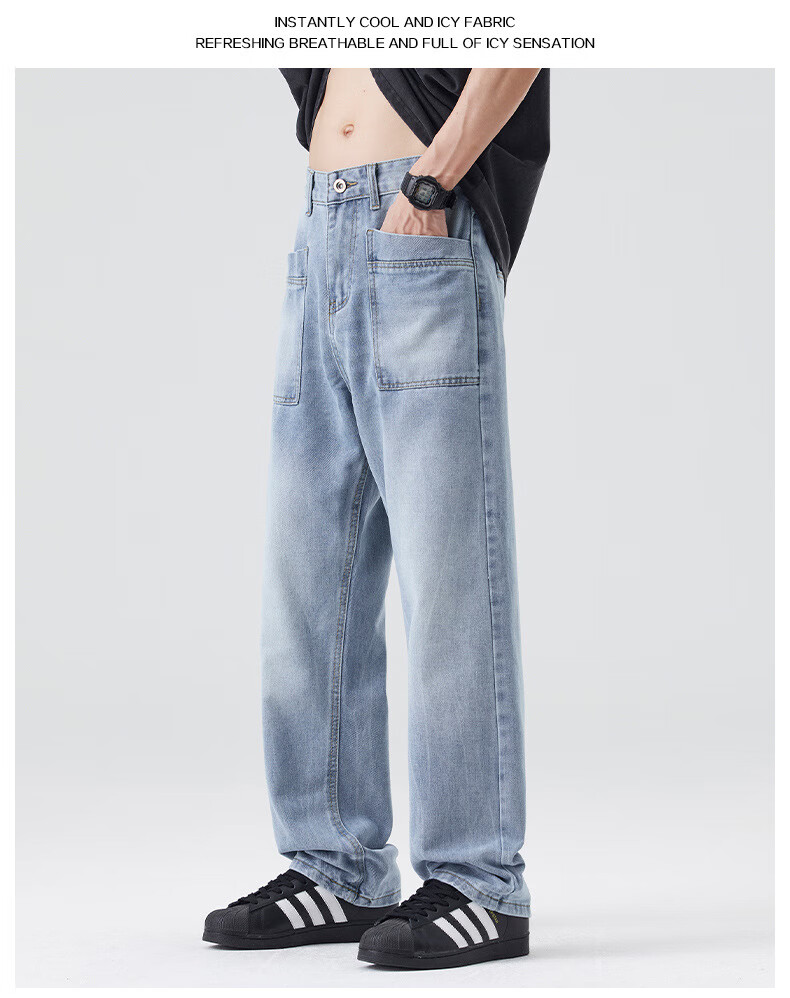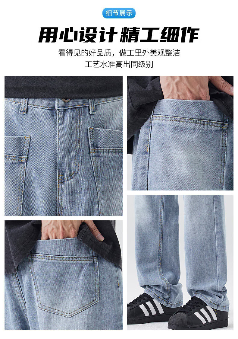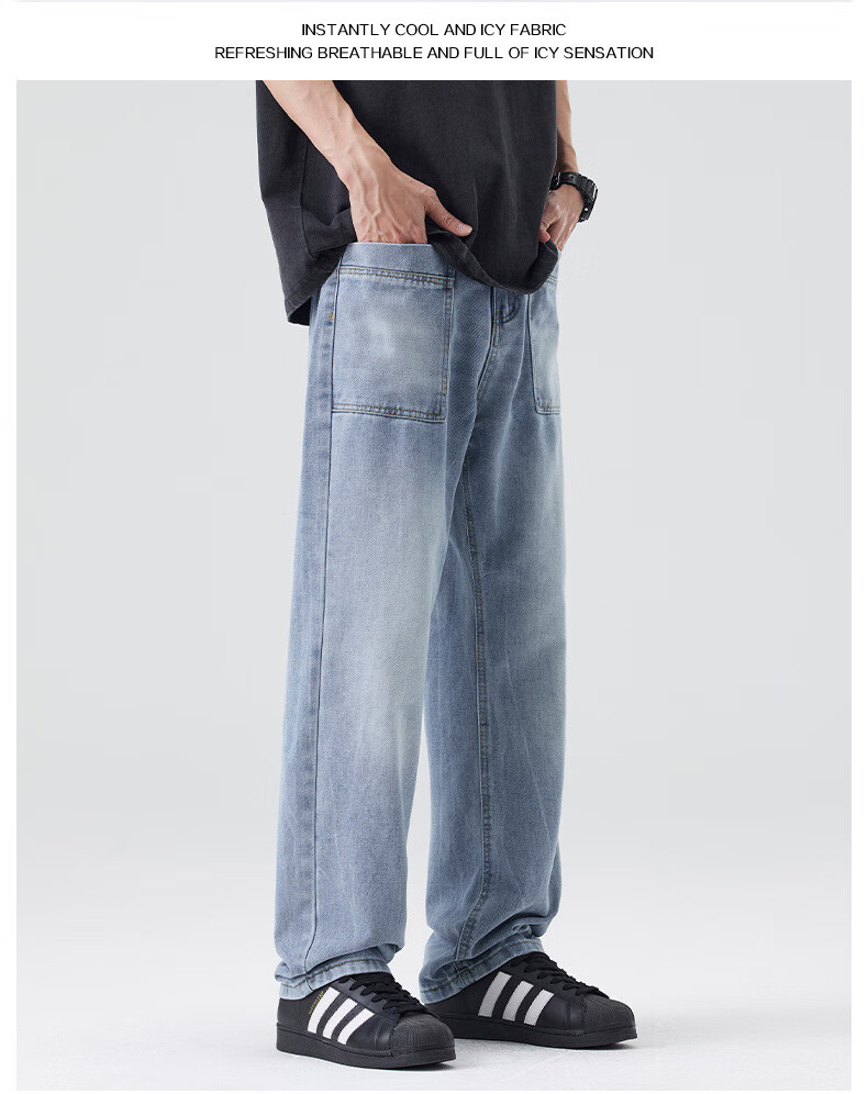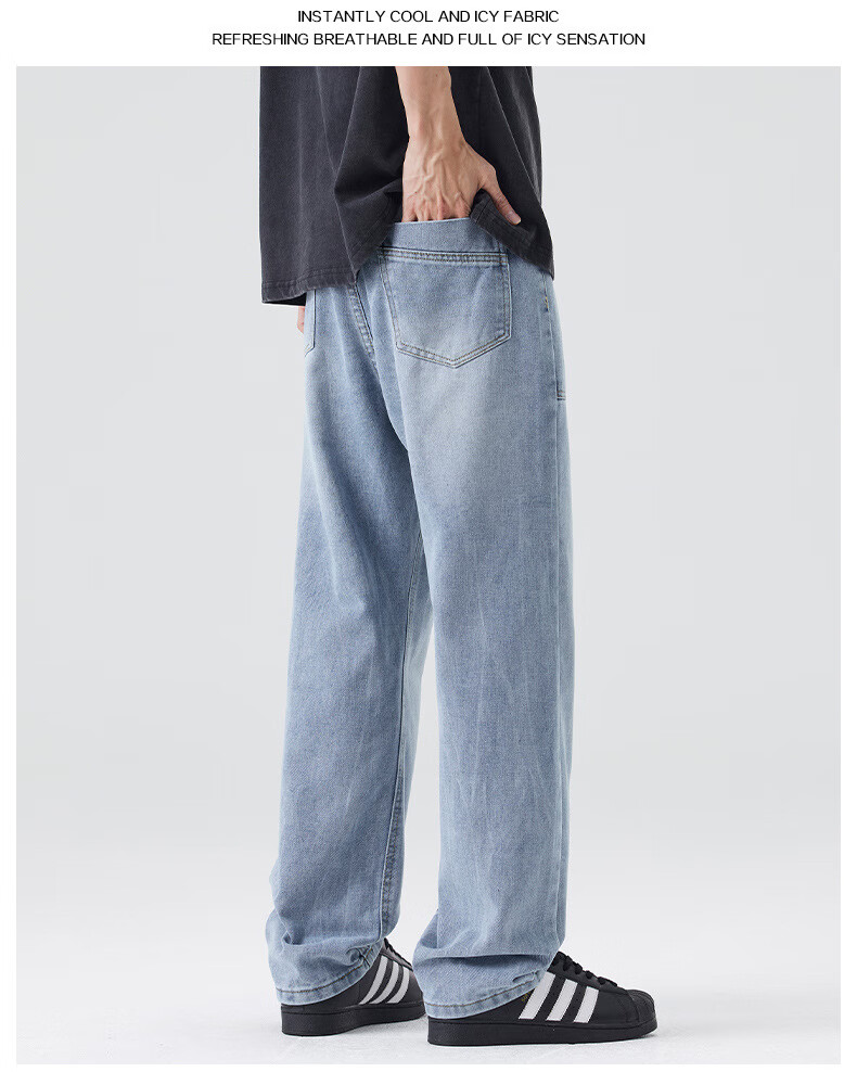 LEE KIDS2025夏季男士薄款牛仔裤宽松七夕裤前侧口袋直筒裤 9893蓝色 薄款 M (100斤)