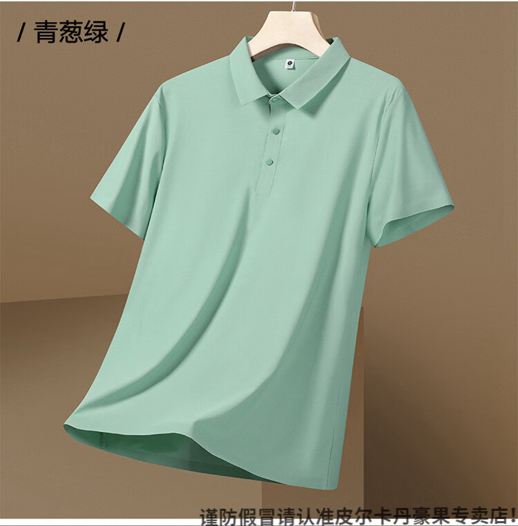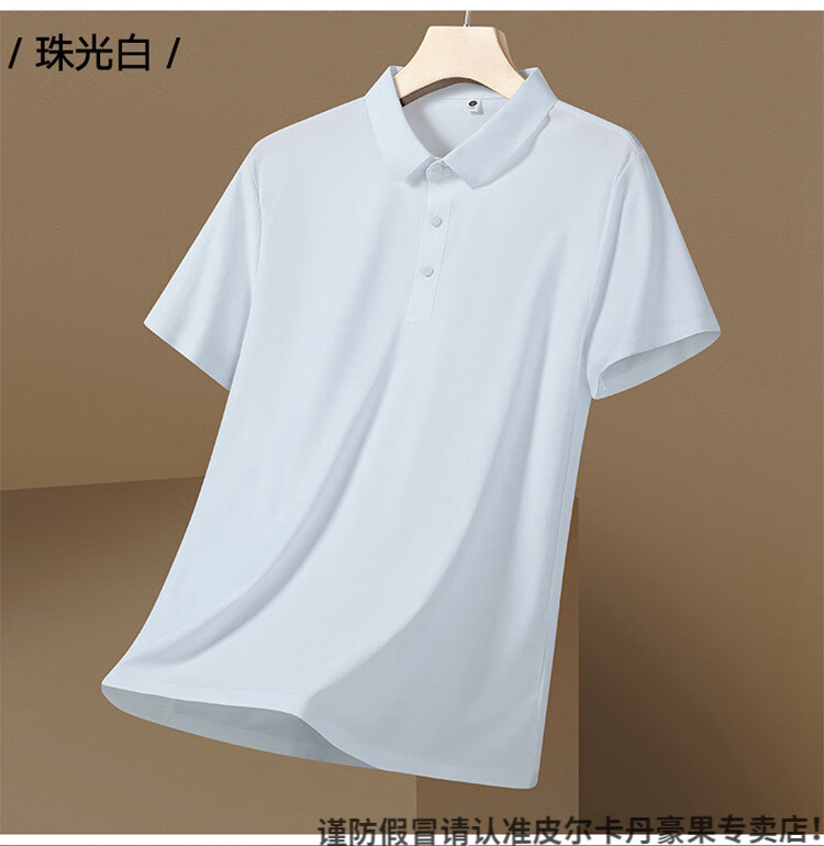 皮尔卡丹(pierre cardin)珠地速干polo衫男士冰感夏季短袖无缝压胶polo衫工作服冰丝T 12357蓝灰 4XL