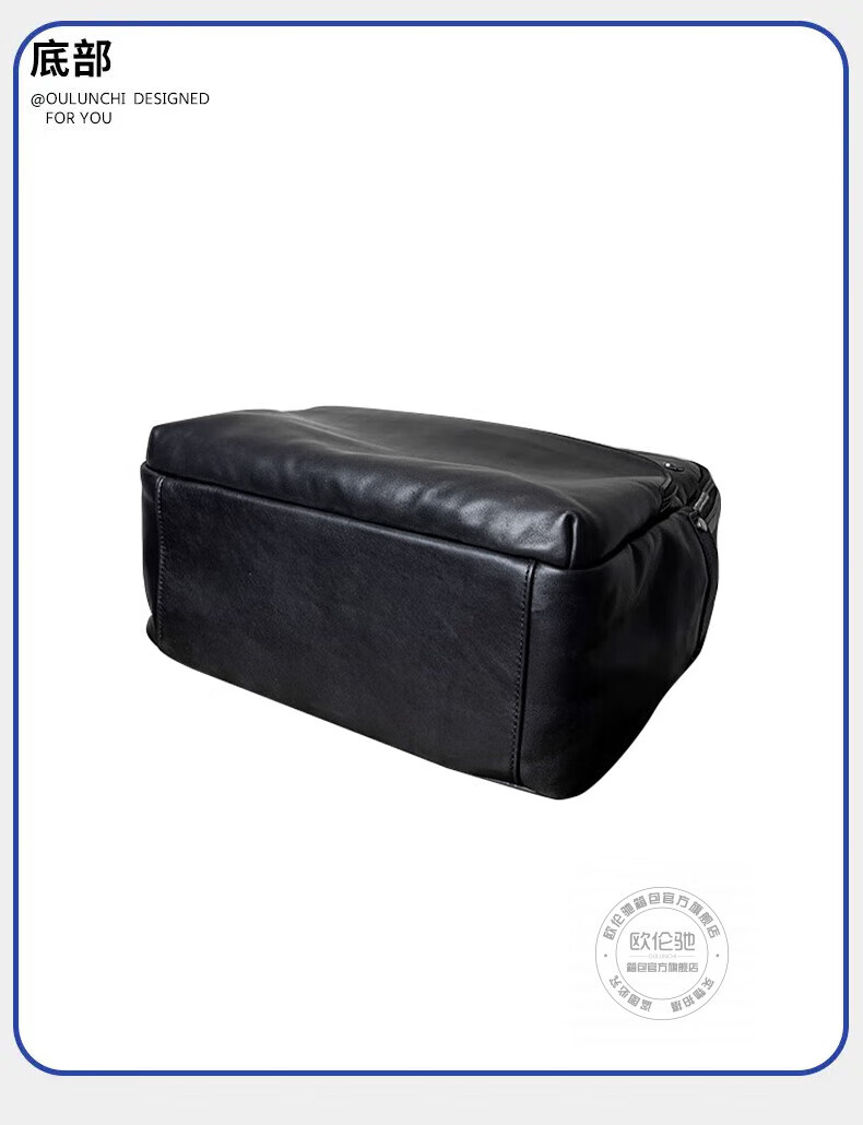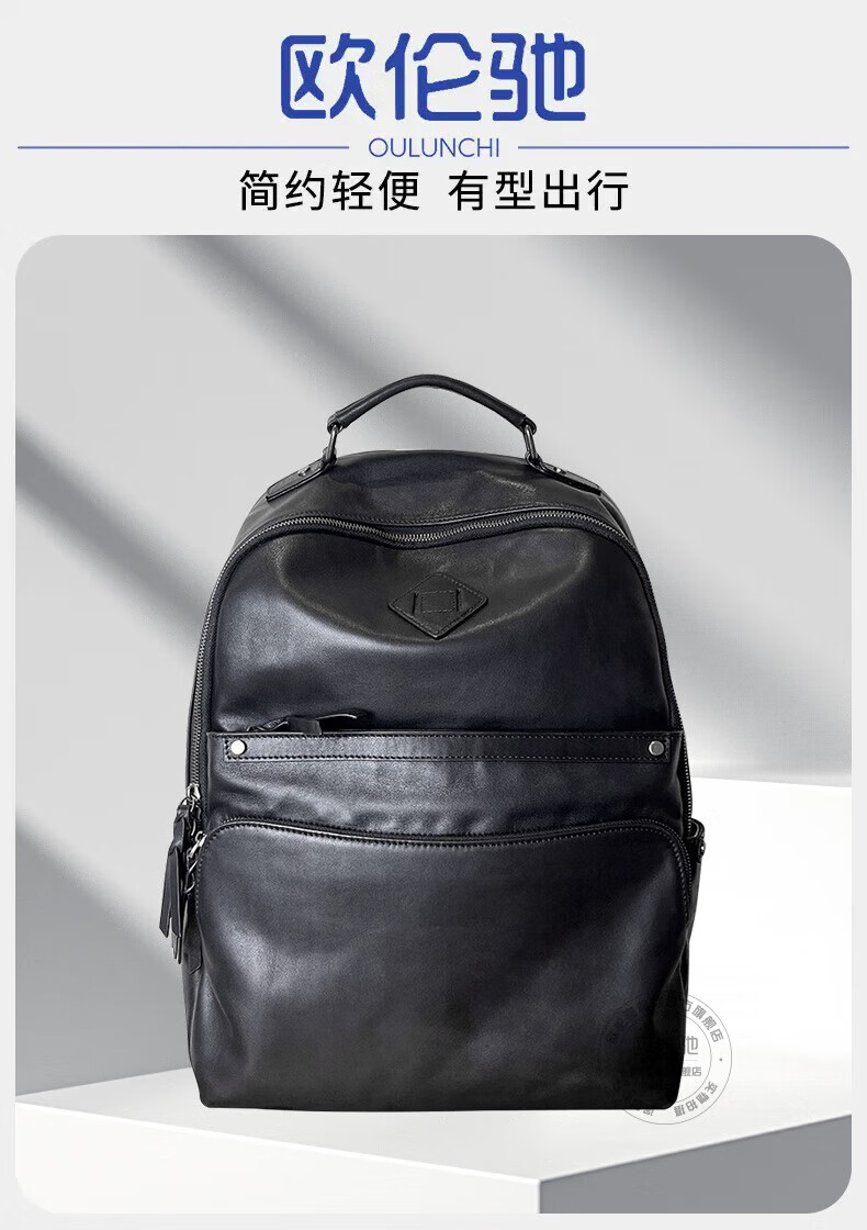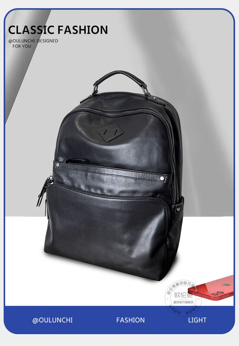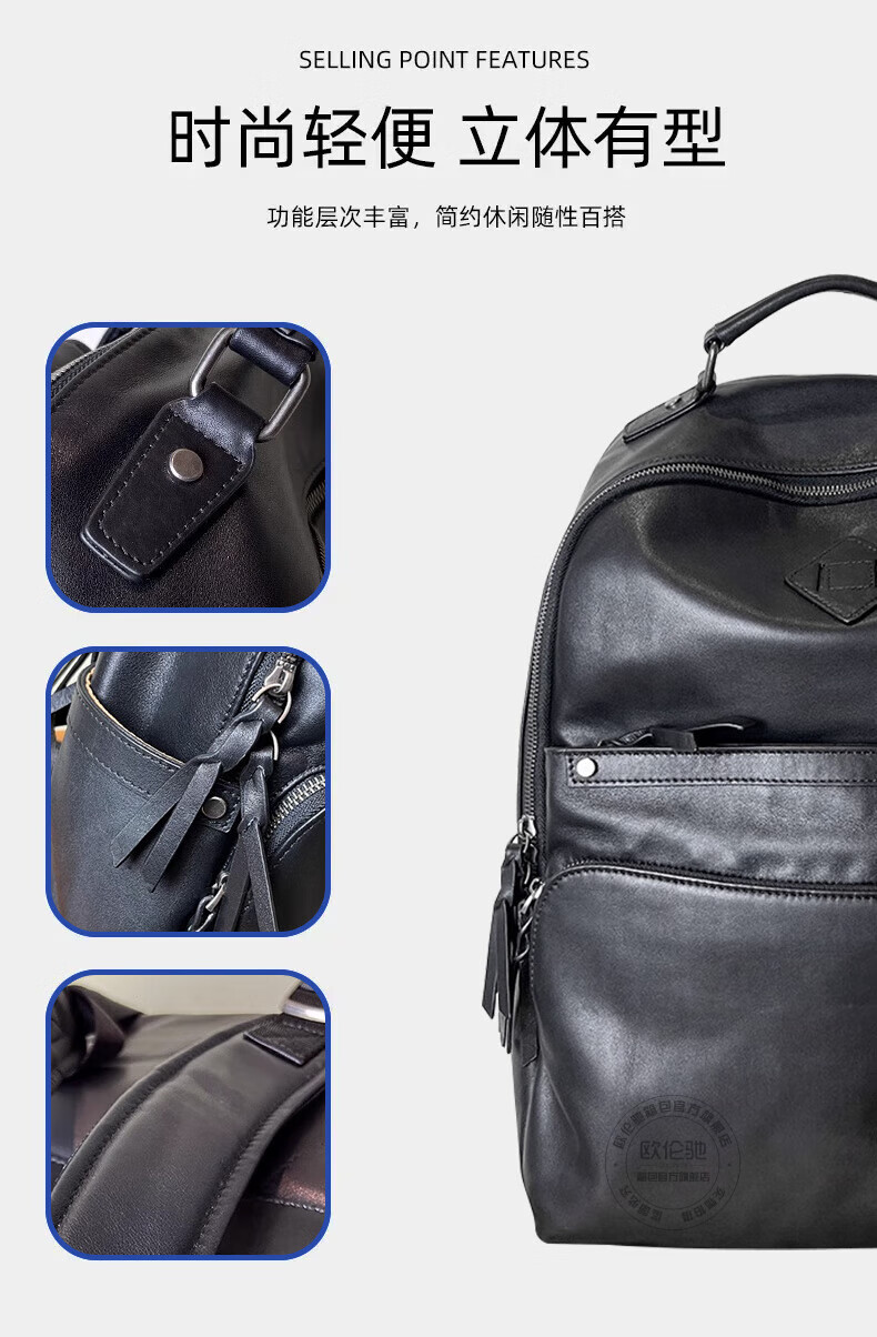 欧伦驰(OULUNCHI)真皮背包男士双肩包大容量商务出差旅行包头层牛皮高级感电脑书包 黑色 33*16*47CM