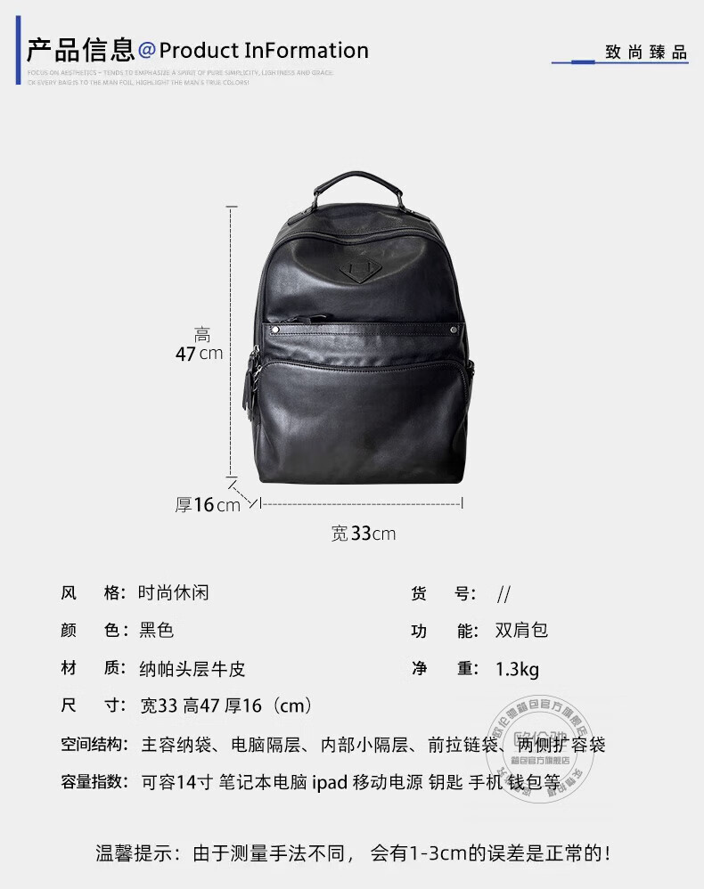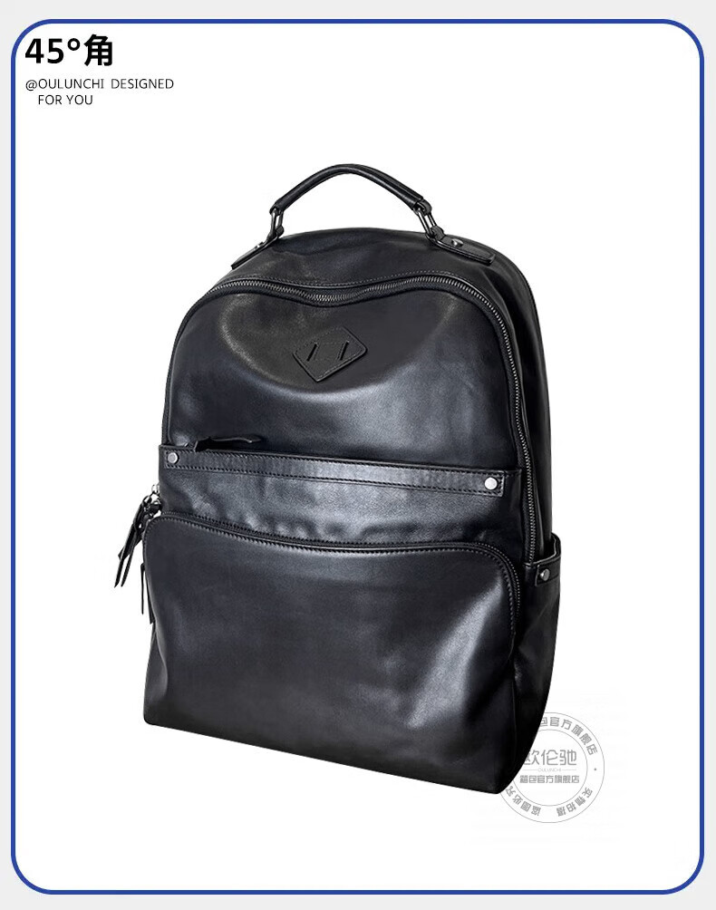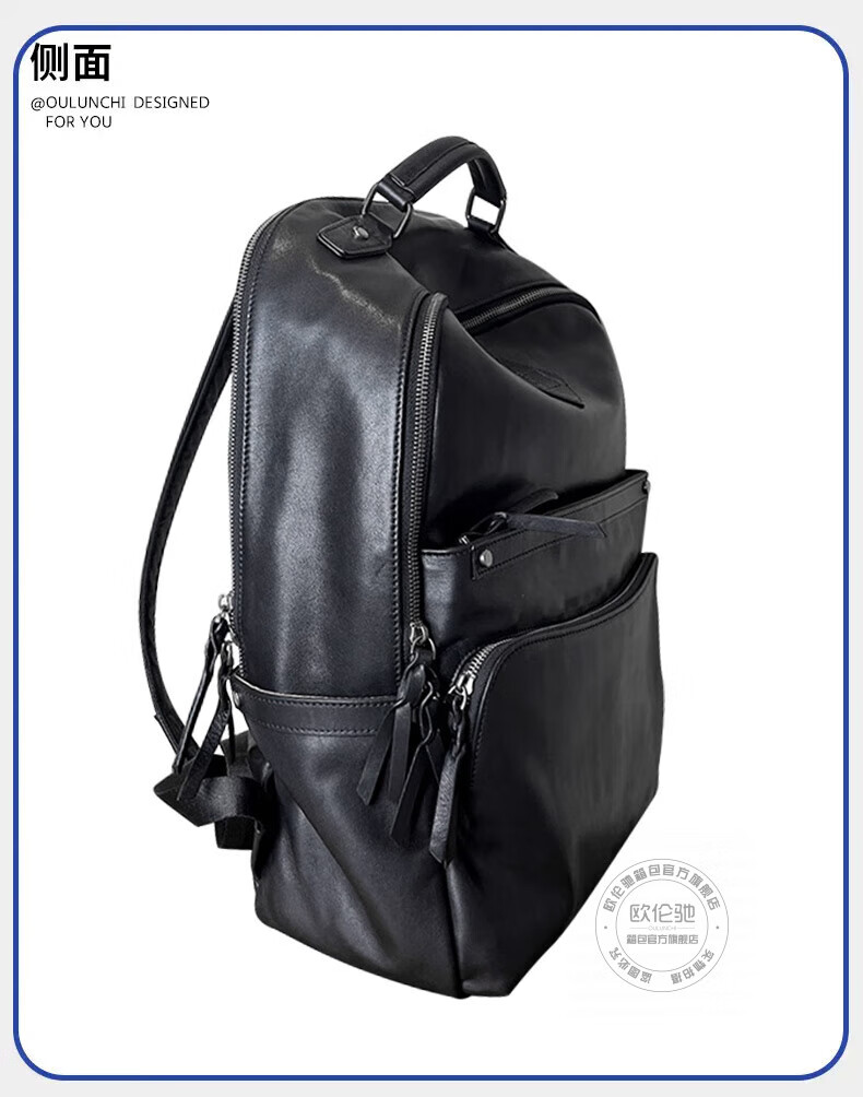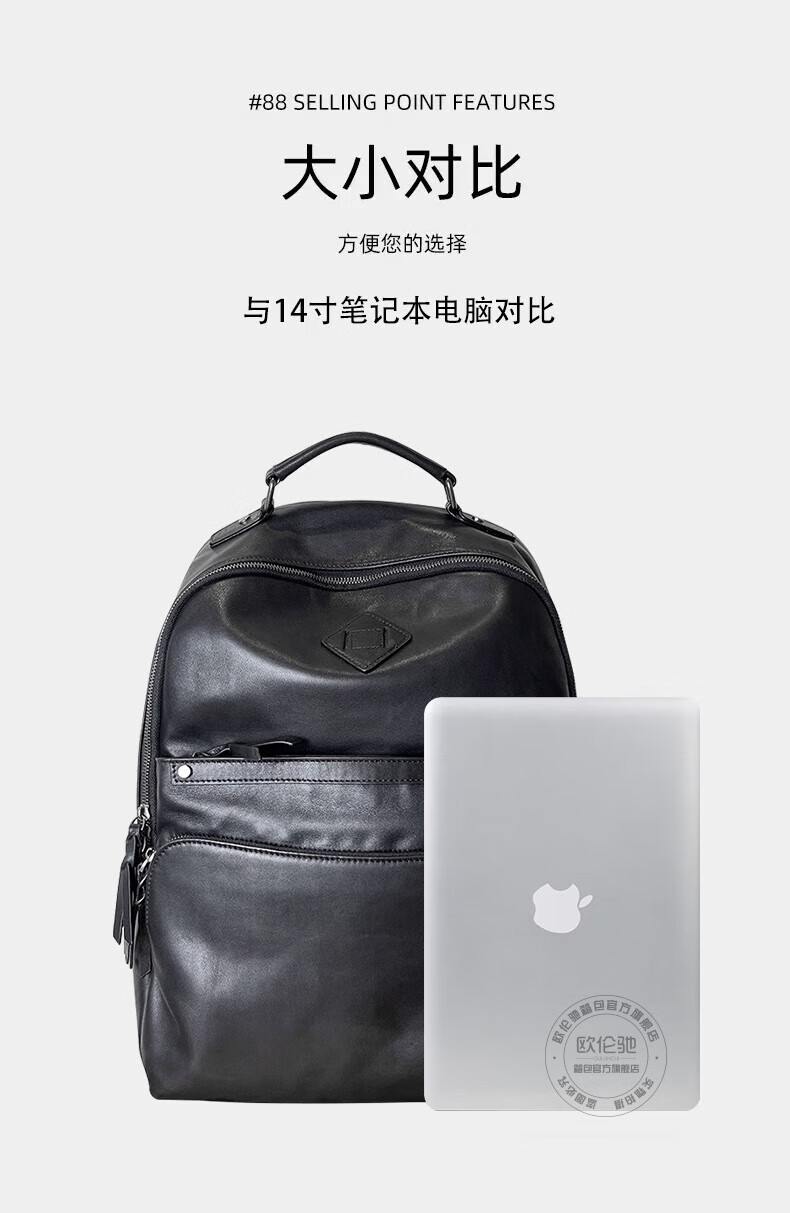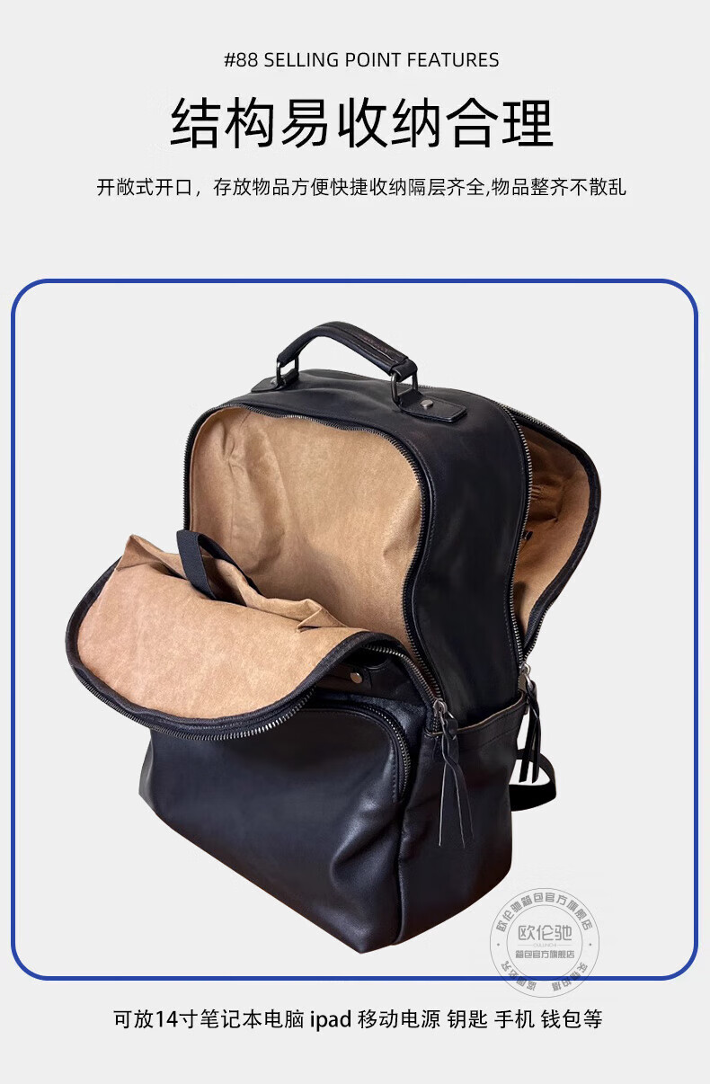 欧伦驰(OULUNCHI)真皮背包男士双肩包大容量商务出差旅行包头层牛皮高级感电脑书包 黑色 33*16*47CM