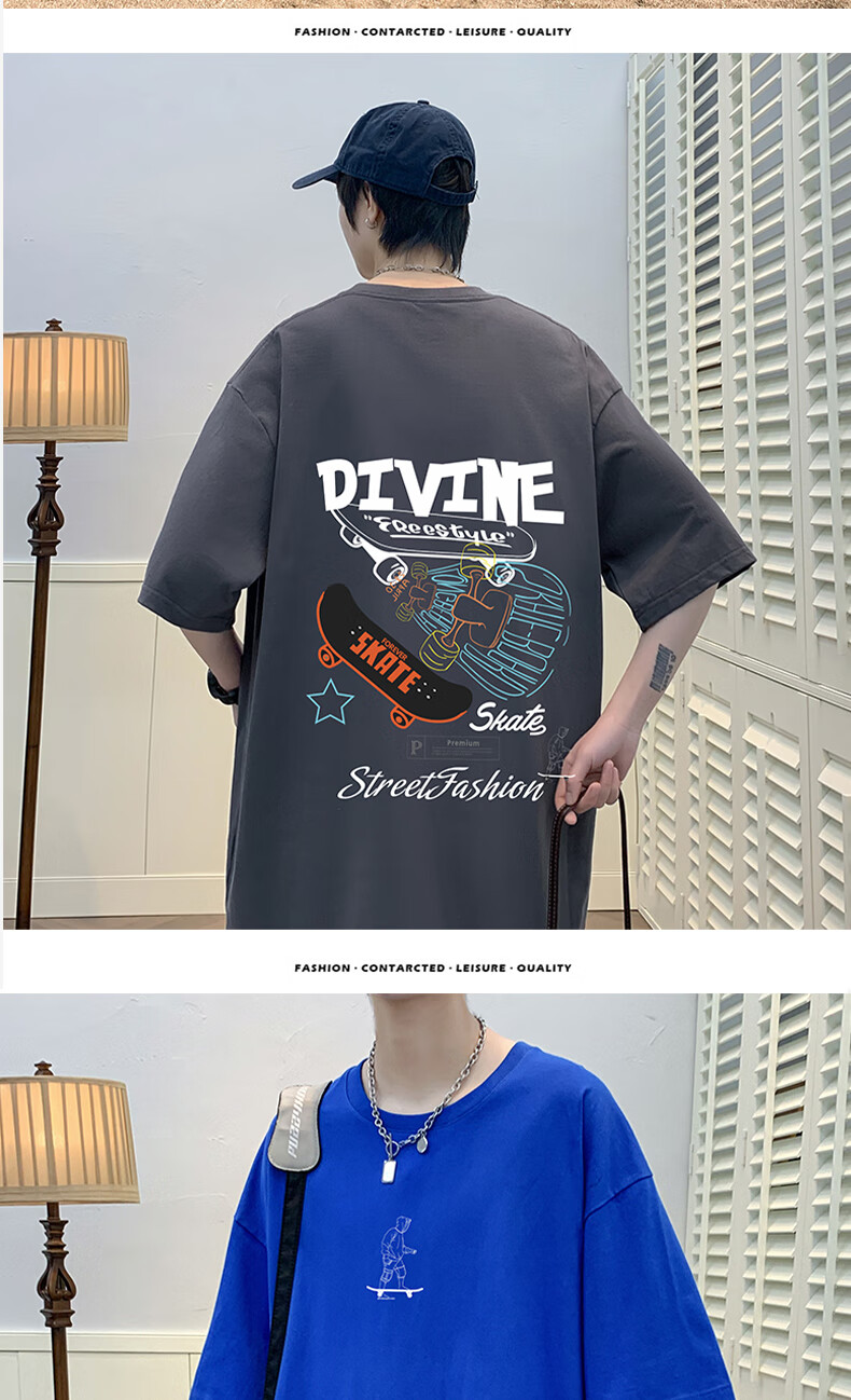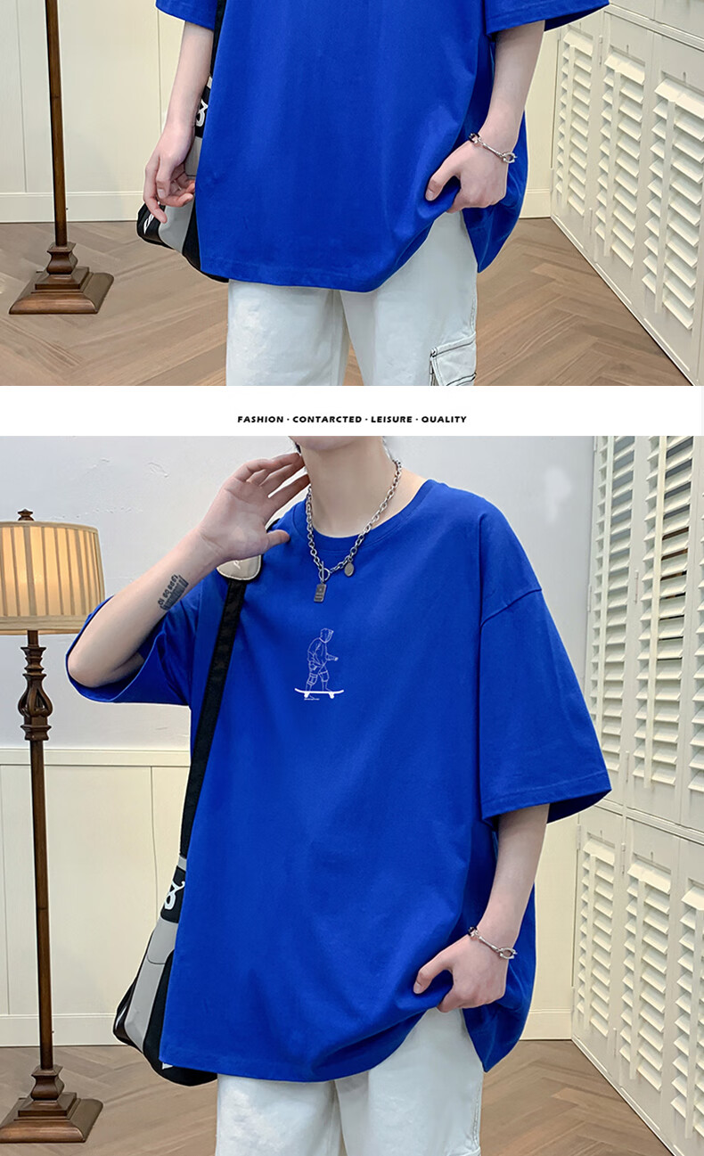 叮噜鱼宽松男士短袖重磅T恤男夏季港风上衣服凉感透气青少年五分半袖男t 3899白色 S (约100-120斤可穿)