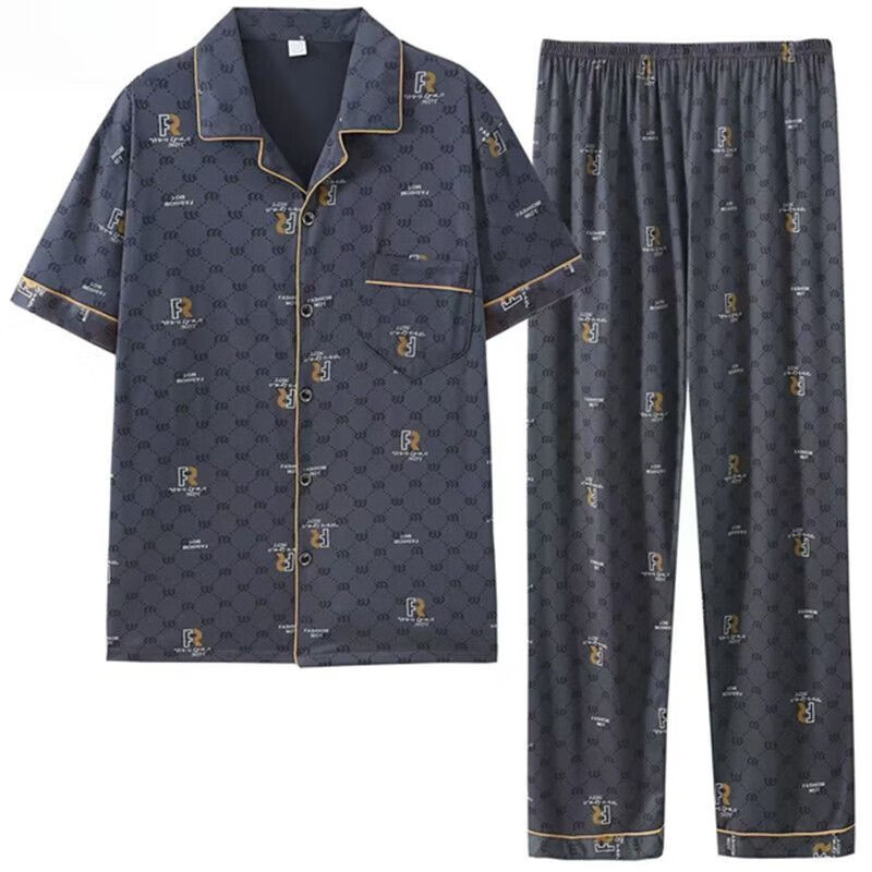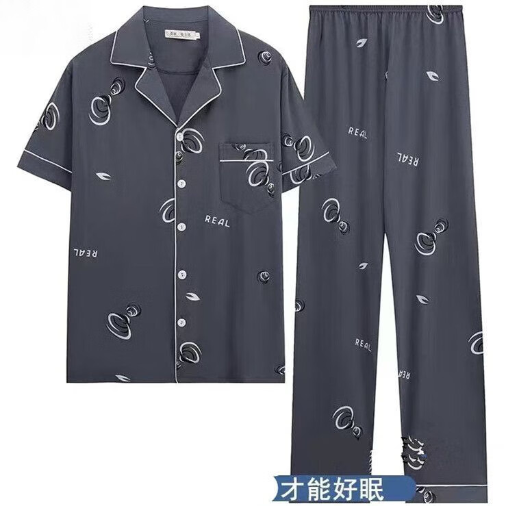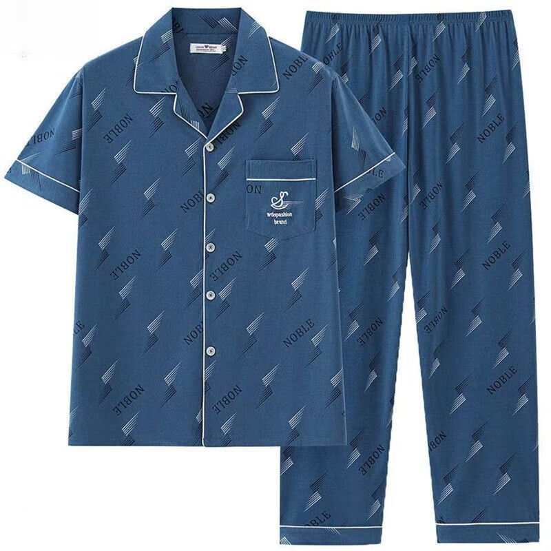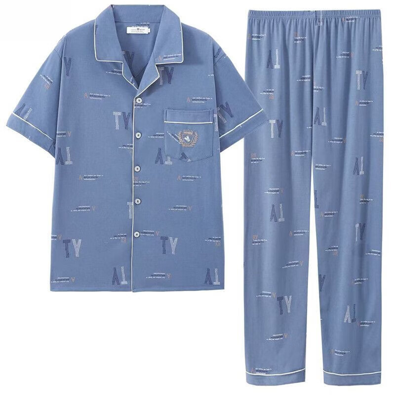 Pijamas Hengyuanxiang para hombres 2025 algodón verano manga corta sección delgada solapa para adolescentes jóvenes y de mediana edad se puede usar fuera del hogar conjunto de ropa SY6622 L 95-120 Jin Jin es igual a 0,5 kg