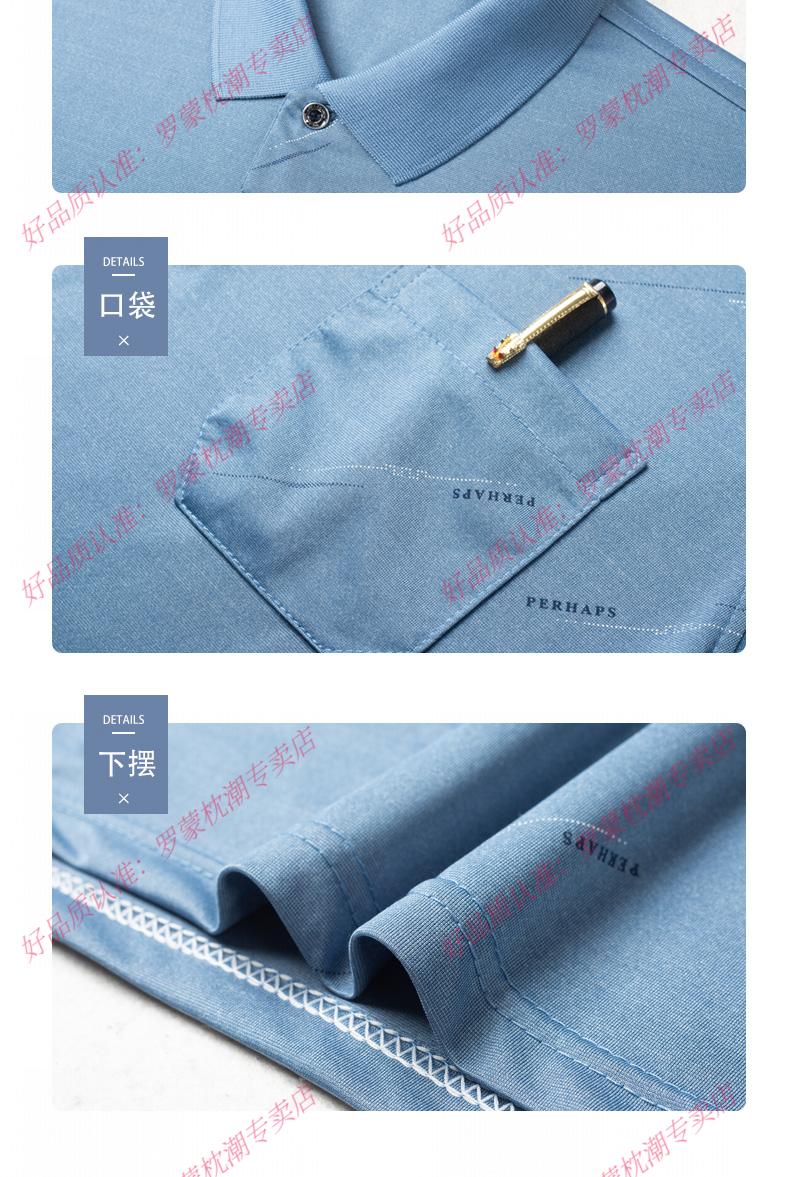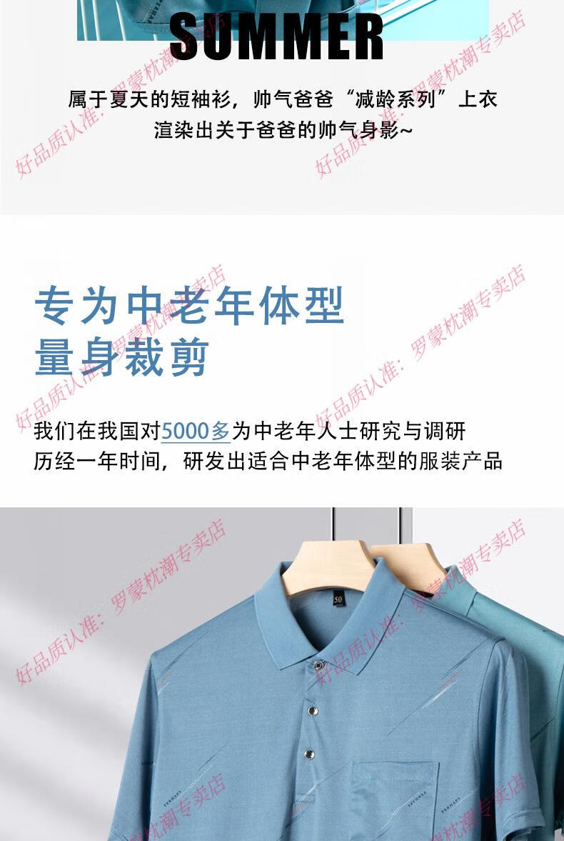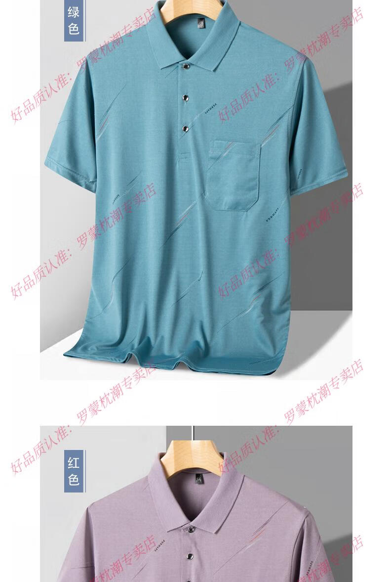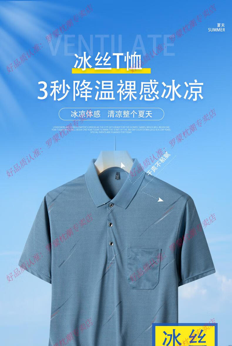 ROMON été d'âge moyen et personnes âgées T-shirt à manches courtes en soie glacée polo à poche pour hommes papa d'âge moyen été à manches mi-longues 9853 bleu + 9915 bleu M 48 recommandé 90-115 Jin Jin équivaut à 0,5 kg