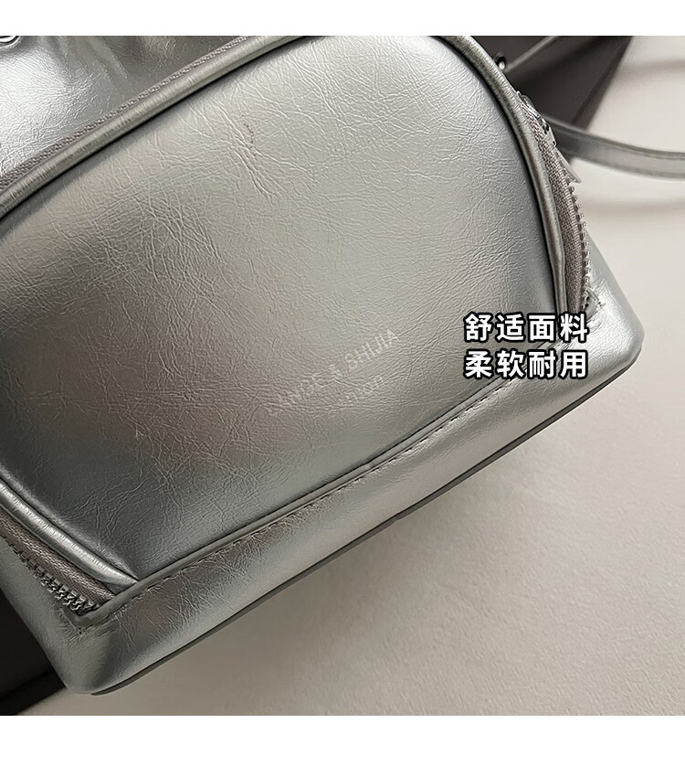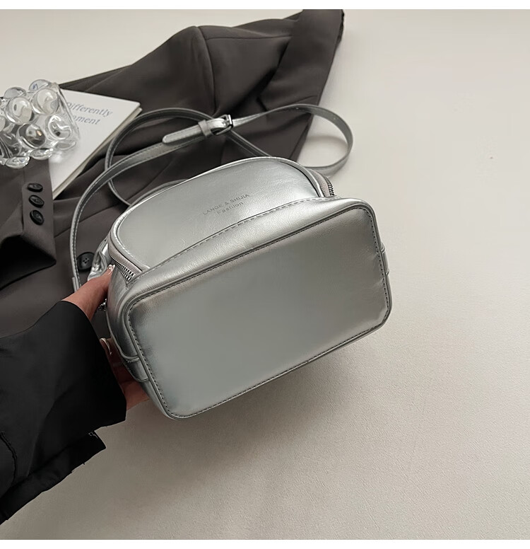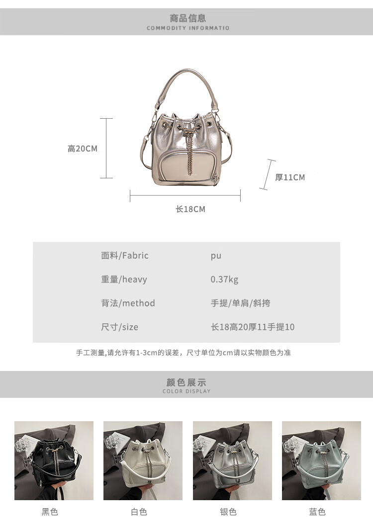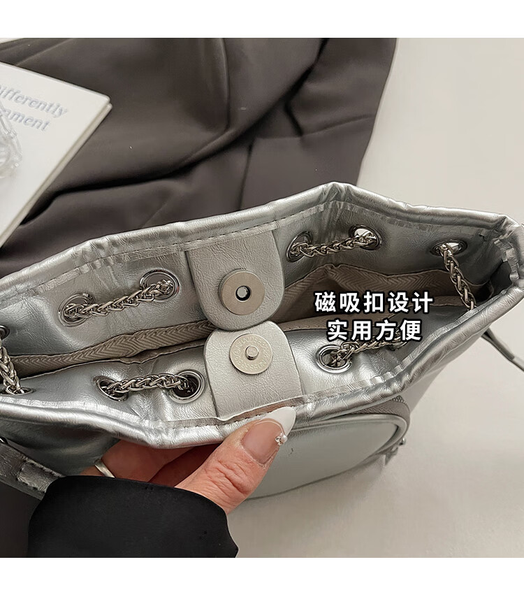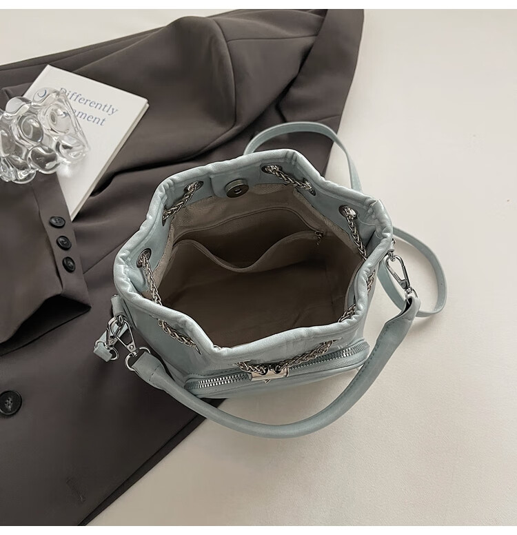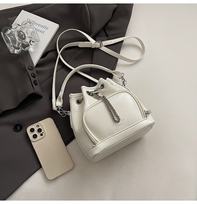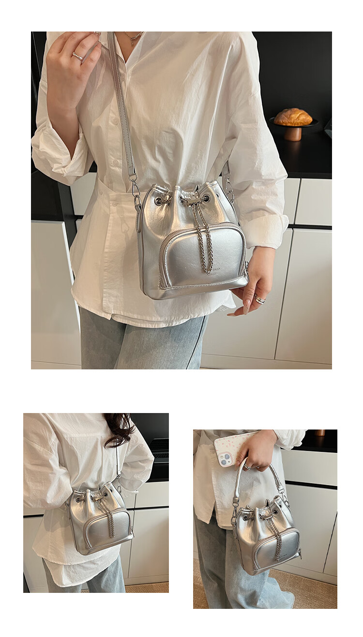 啄木鸟简约洋气抽绳手拎包包女式2025超火新款感流行单肩斜挎水桶包 黑色