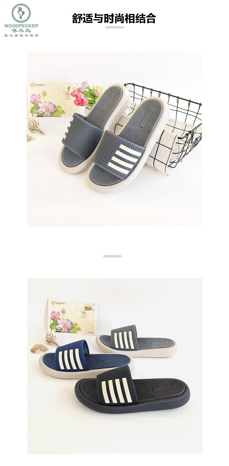 啄木鸟品牌高端春夏新款橡胶拖鞋轻奢男外穿2025新款运动休闲潮流一字拖 蓝色  40-41 偏小