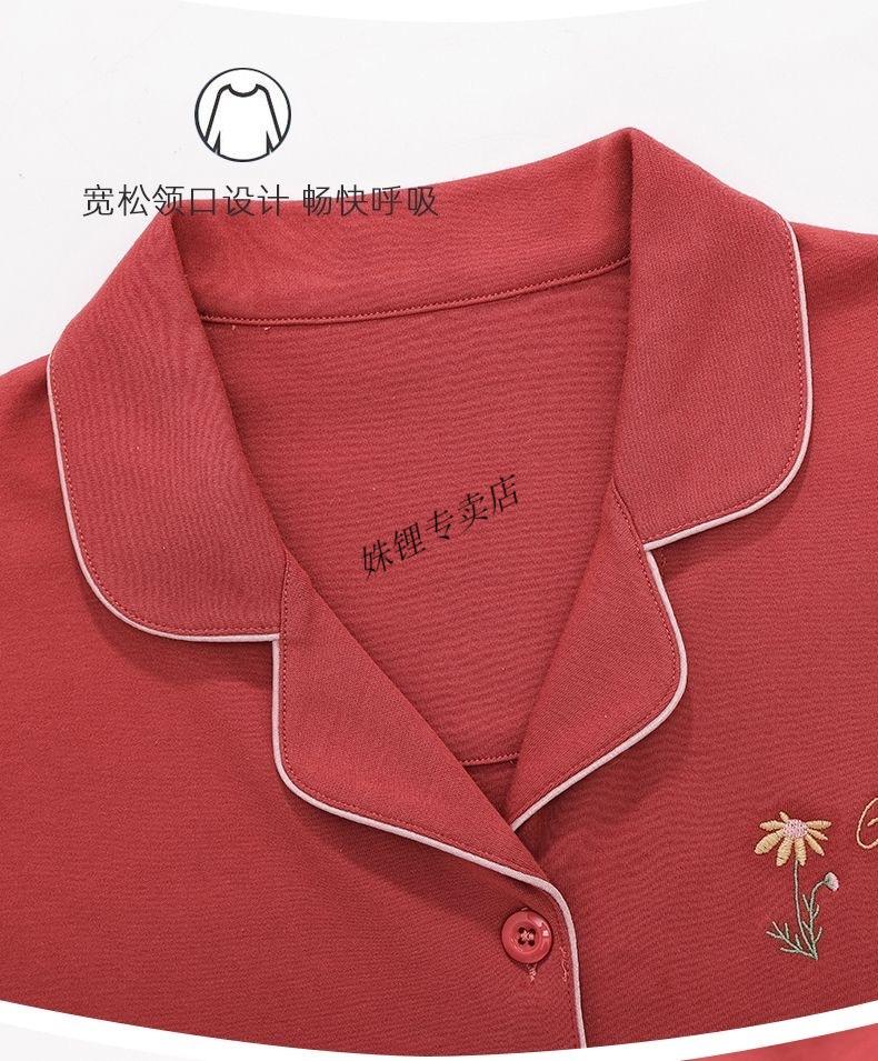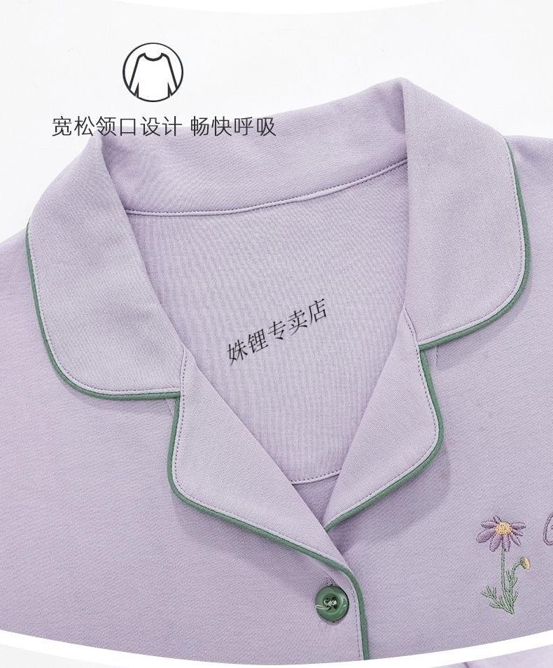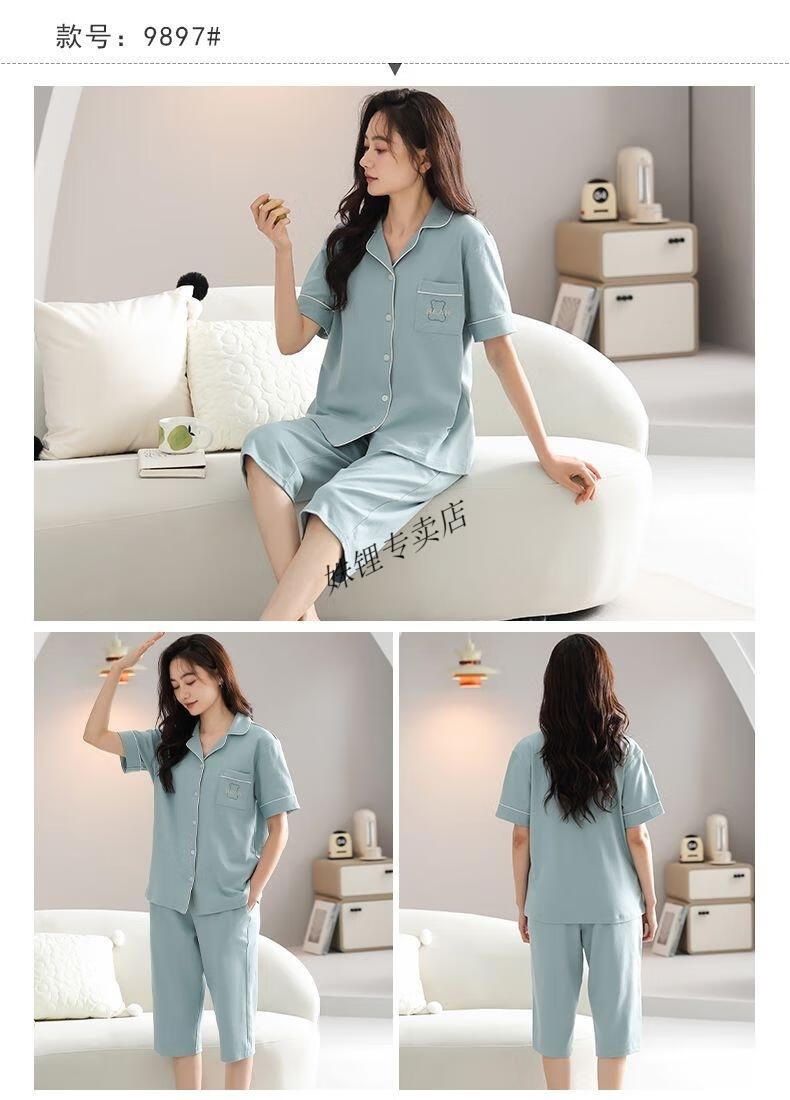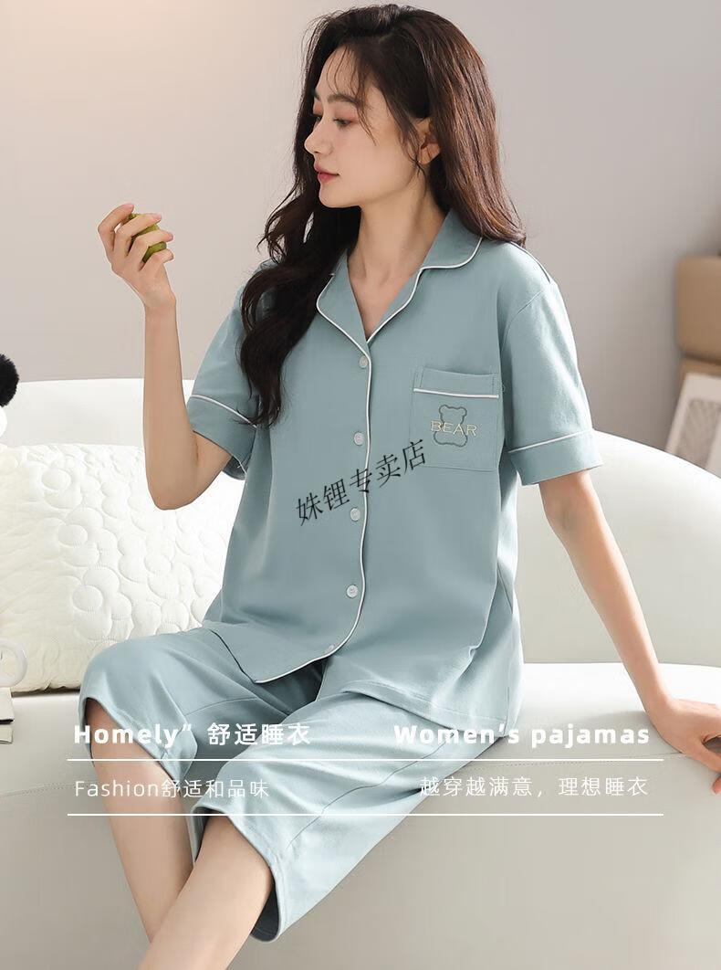 Hengyuanxiang pijamas de algodón puro para mujeres jóvenes y de mediana edad pantalones tres cuartos de manga corta de verano cárdigan de talla grande de estilo coreano traje de mujer ropa para el hogar N9896 XL 120-140