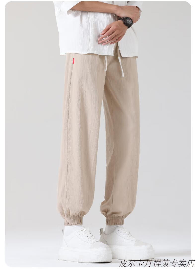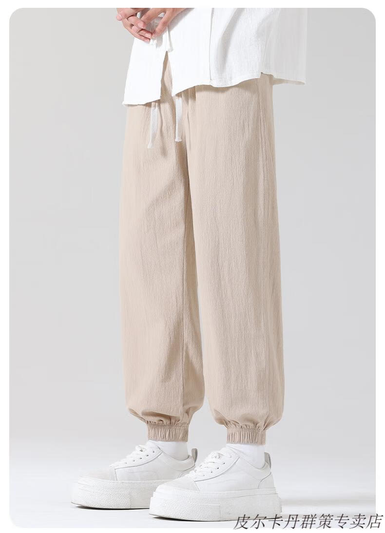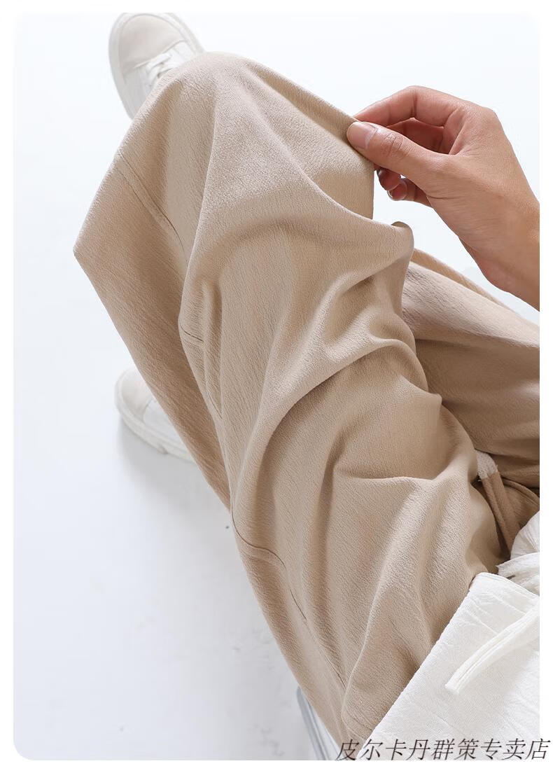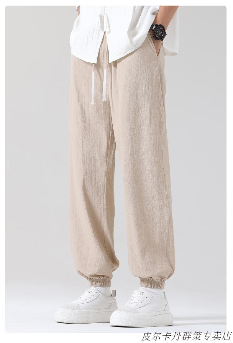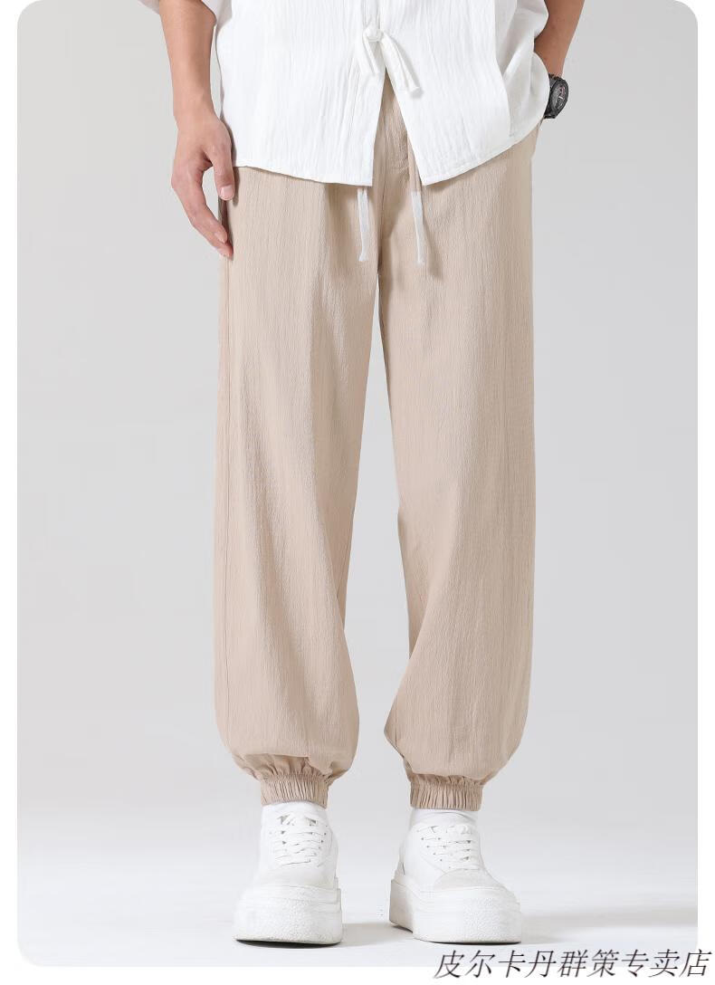 皮尔卡丹(pierre cardin)2025新款裤子男夏季薄款亚麻休闲裤宽松透气运动长裤棉麻纯棉束脚 卡其色 M (95-110)斤