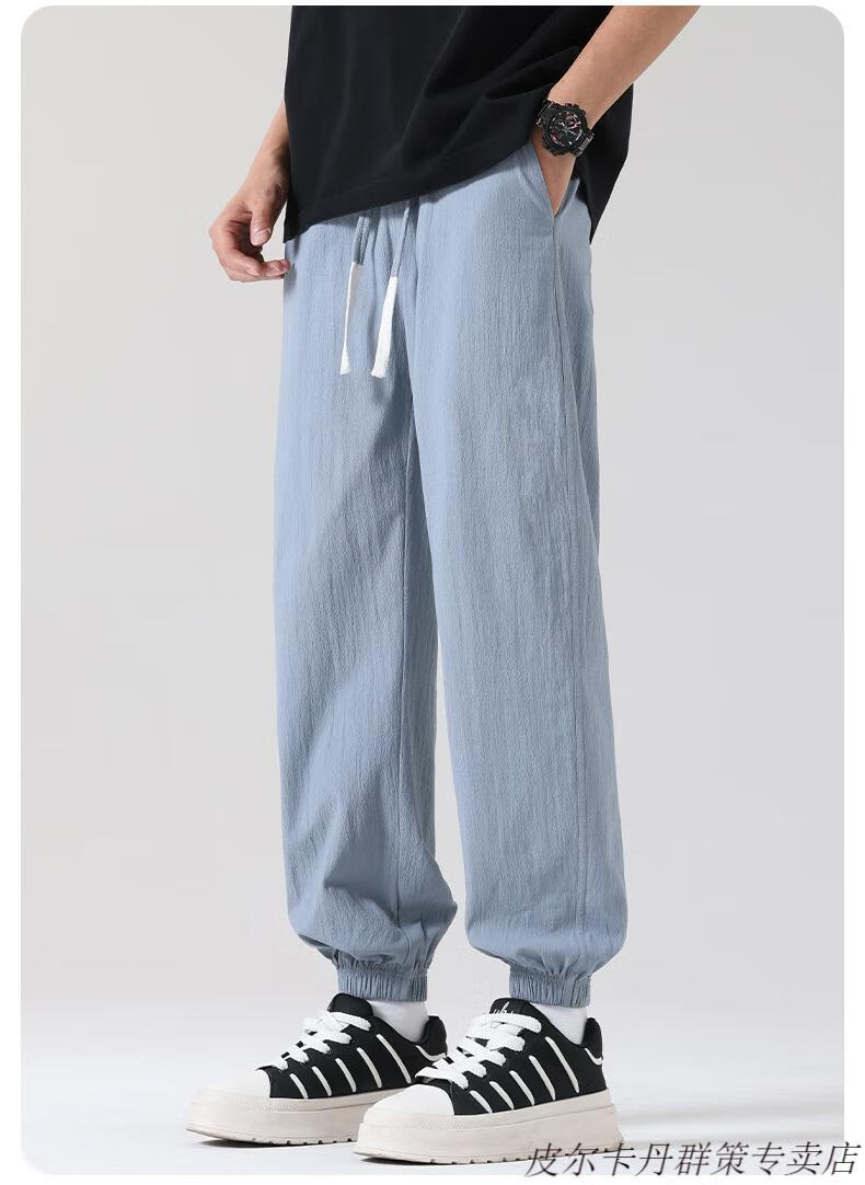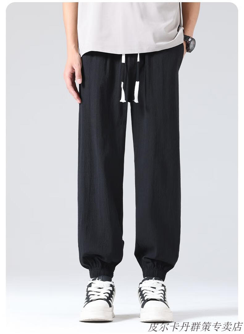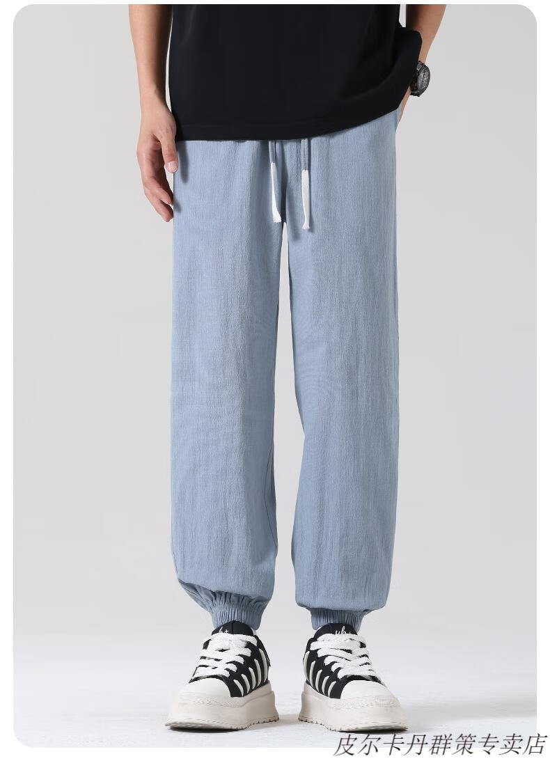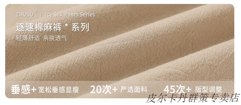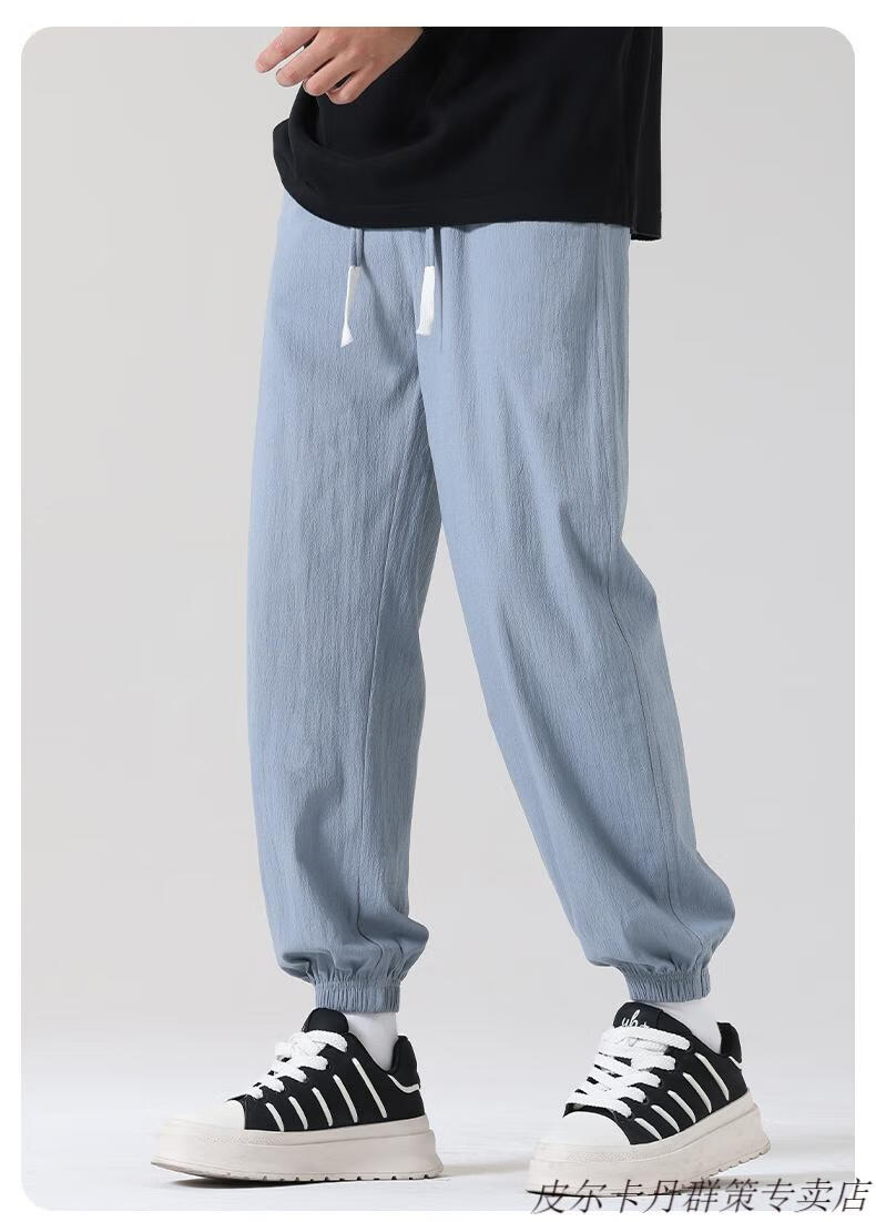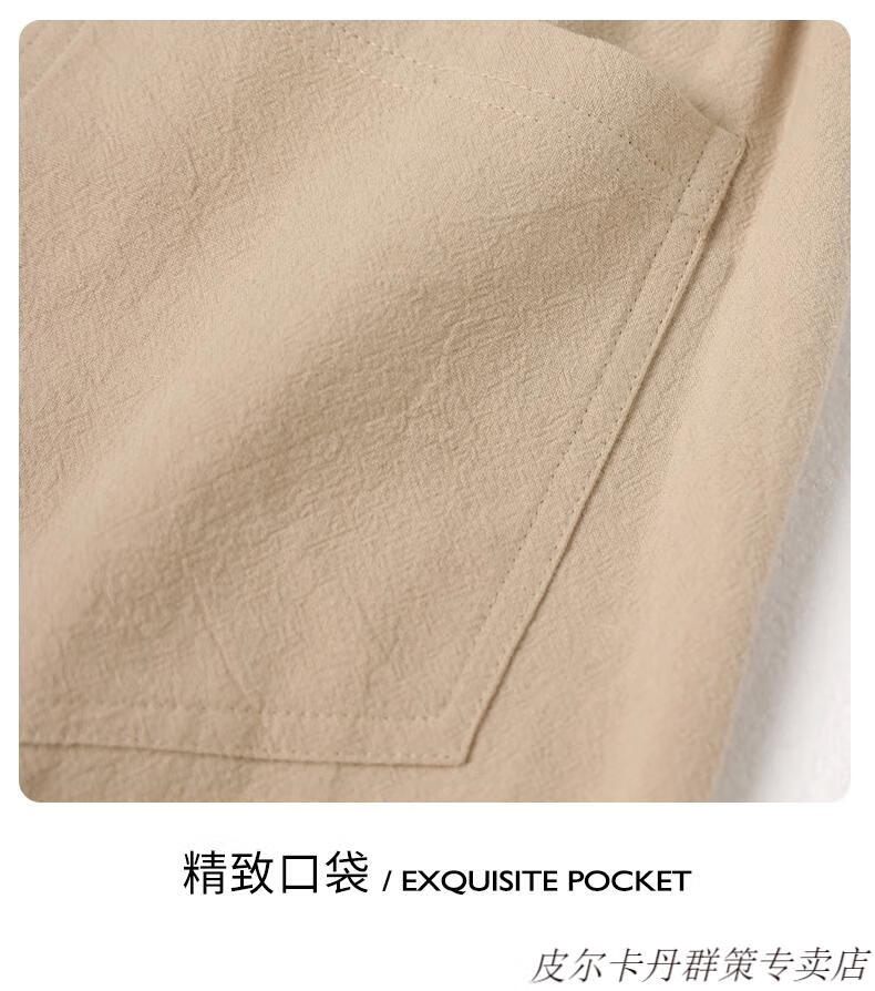 皮尔卡丹(pierre cardin)2025新款裤子男夏季薄款亚麻休闲裤宽松透气运动长裤棉麻纯棉束脚 卡其色 M (95-110)斤