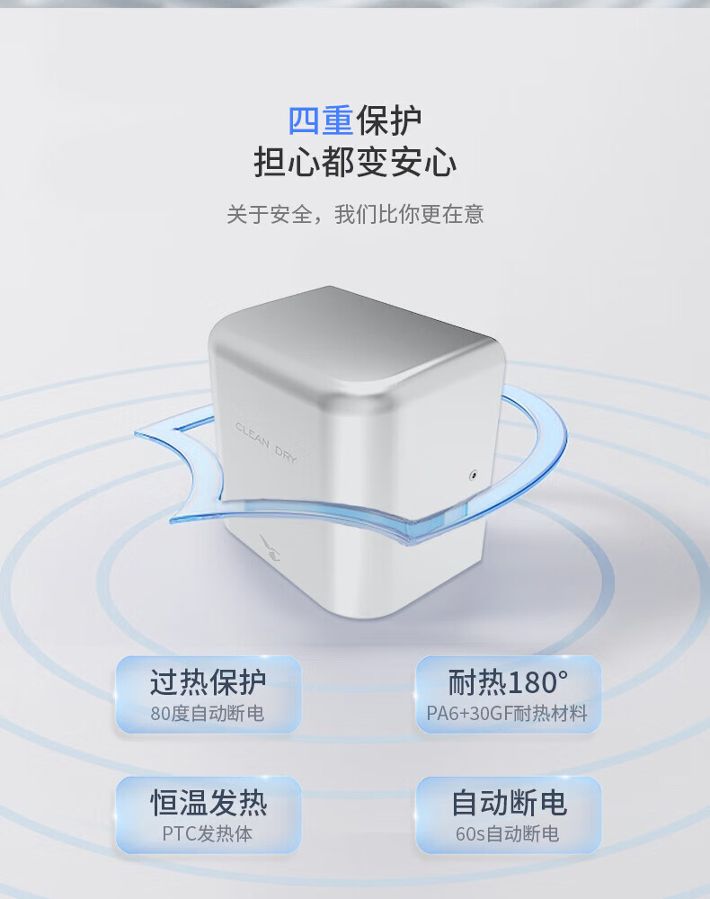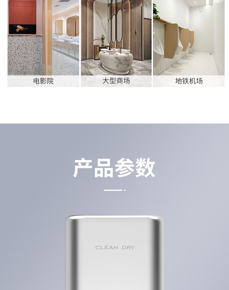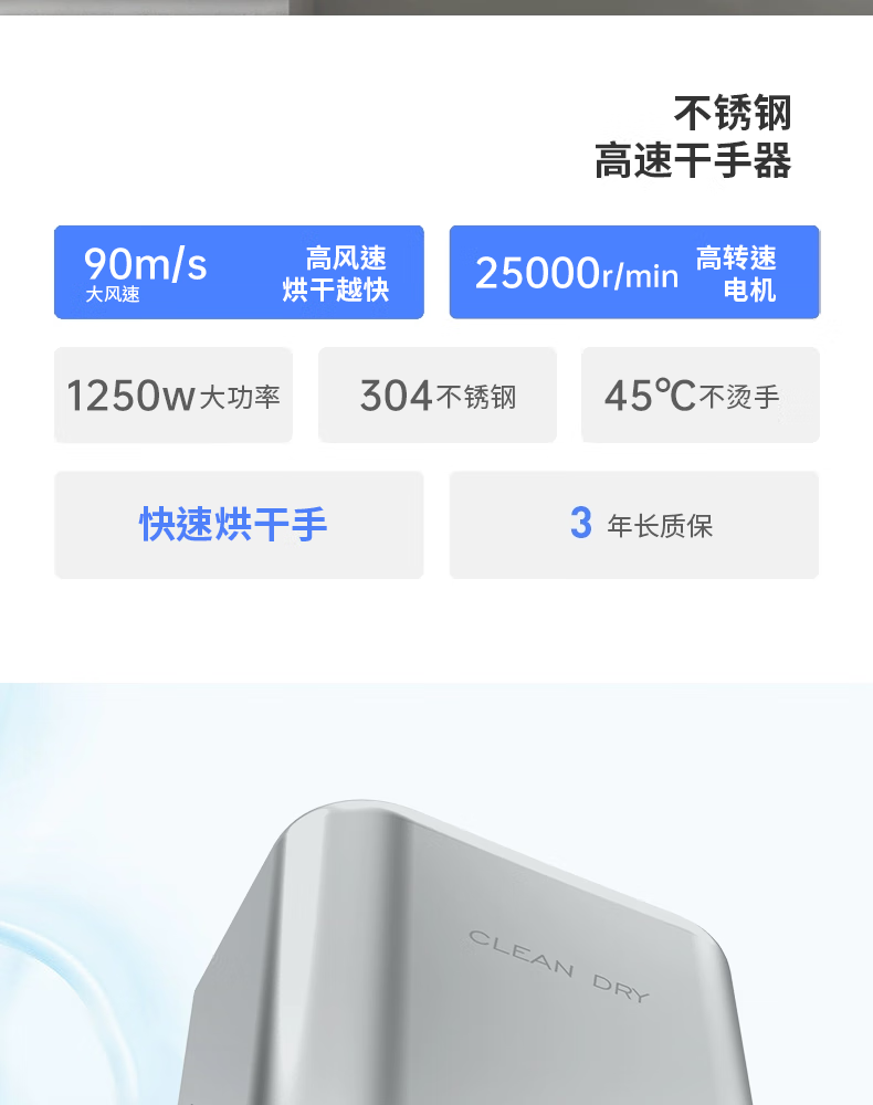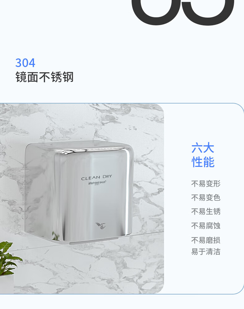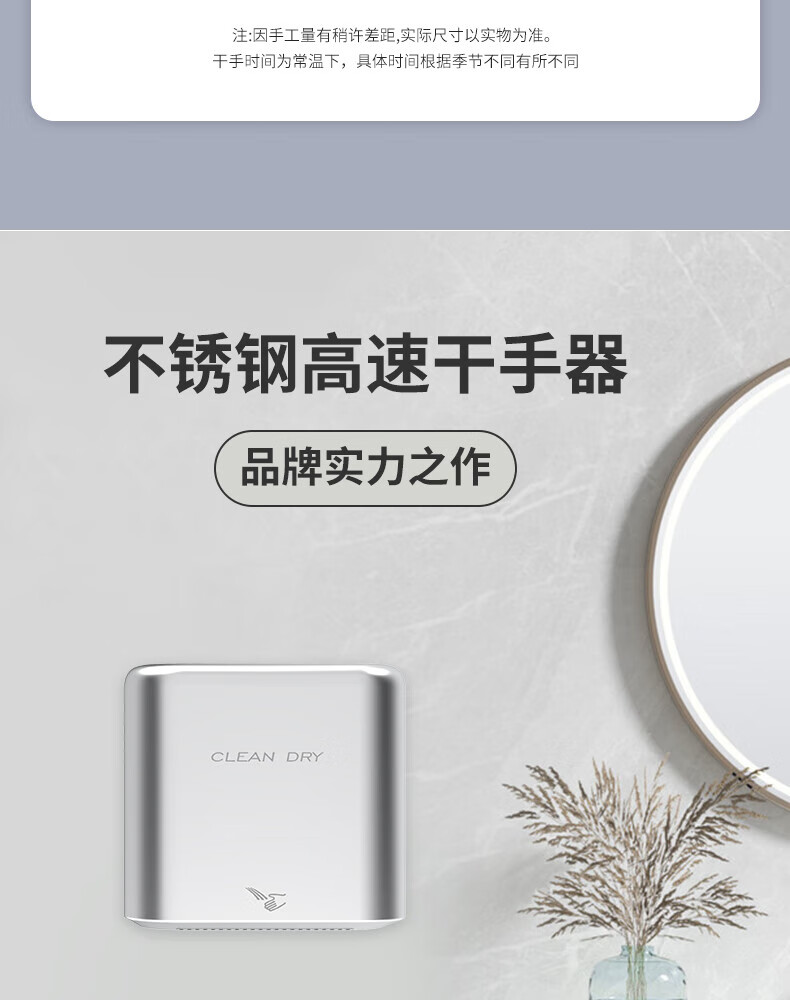 英特汉莎不锈钢厕所烘手器烘干机卫生间烘手机全自动感应干手器吹干手机 A3893白色不锈钢[短款]