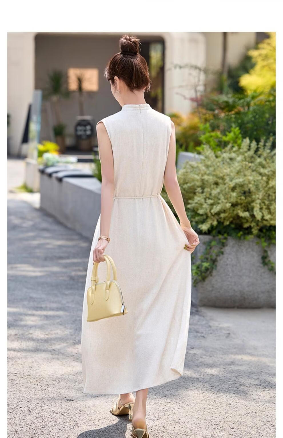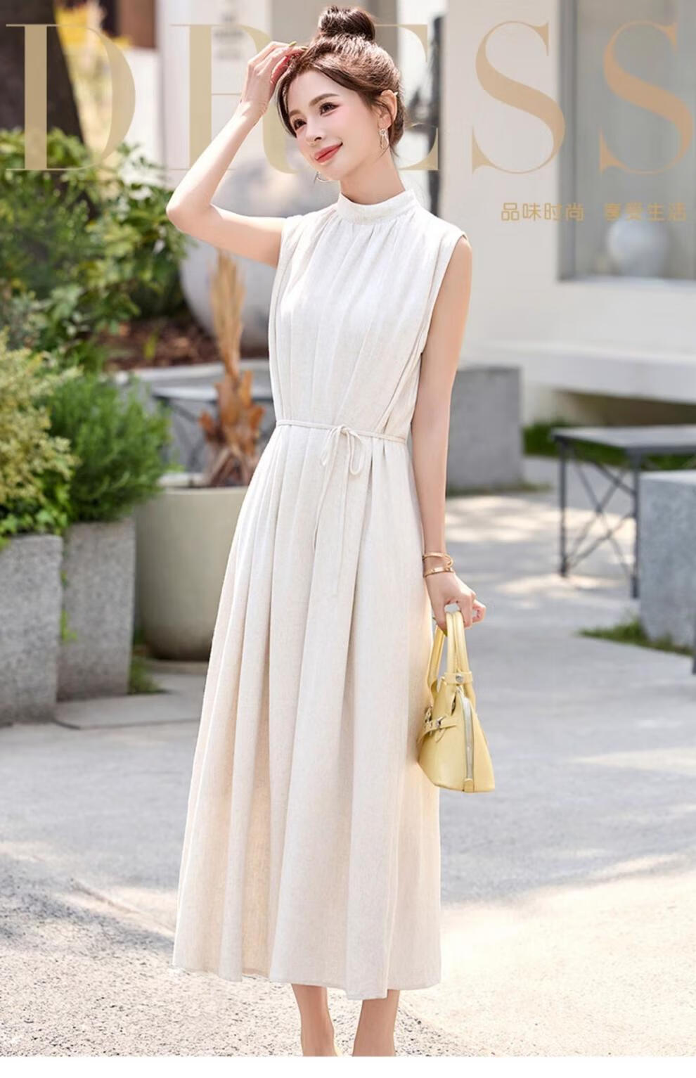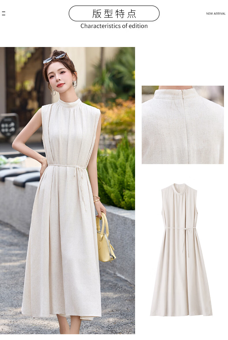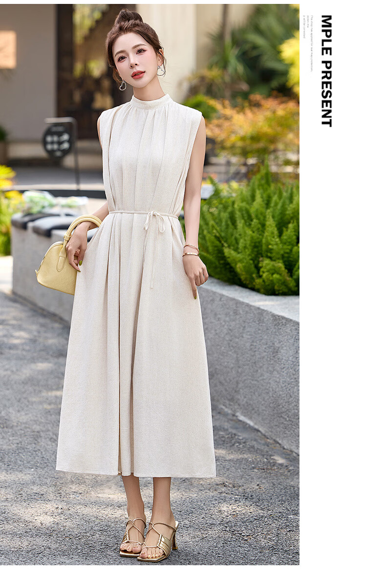 Ehangy Light Luxury Brand 2025 Summer New Dress Women's High-end Temperament Western Style Age-Reducing Simple and Elegant Skirt Beige M