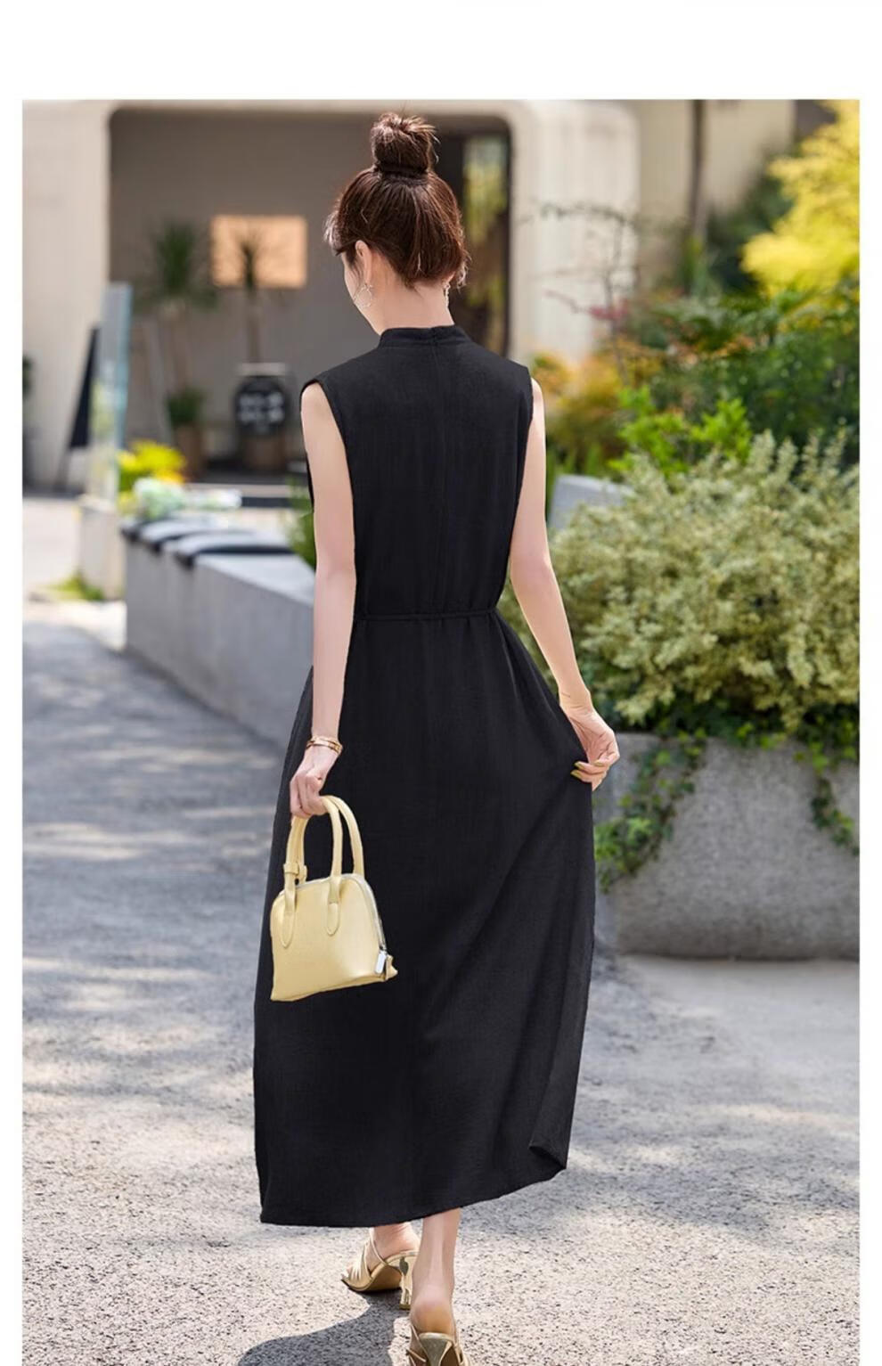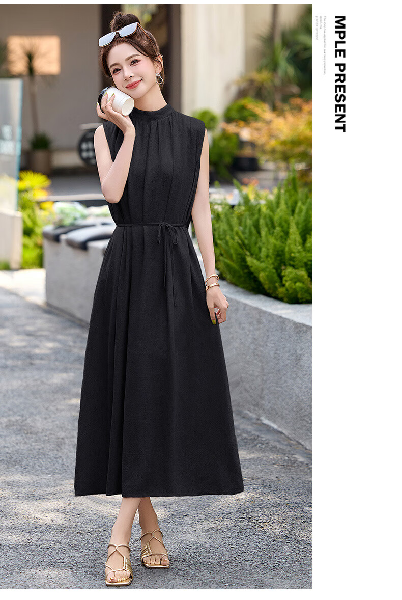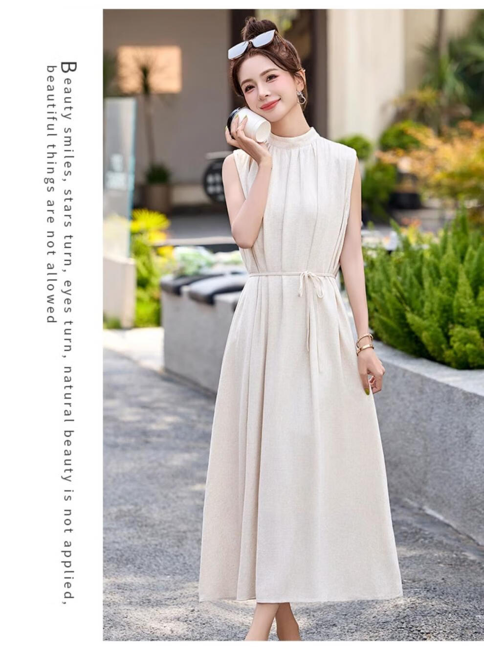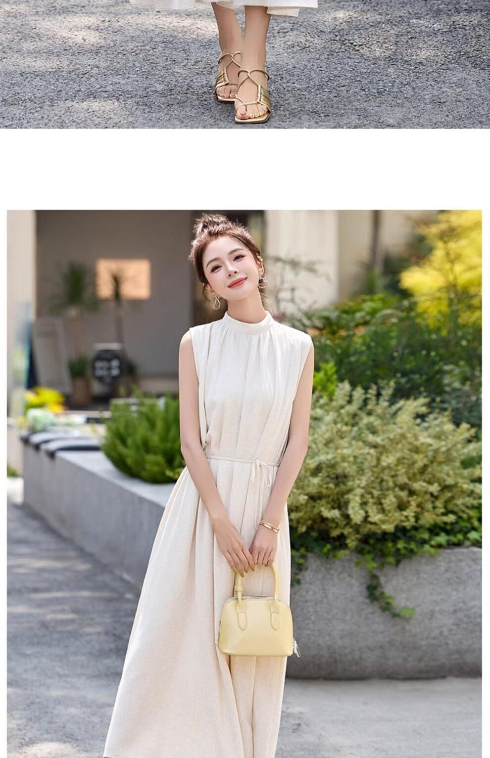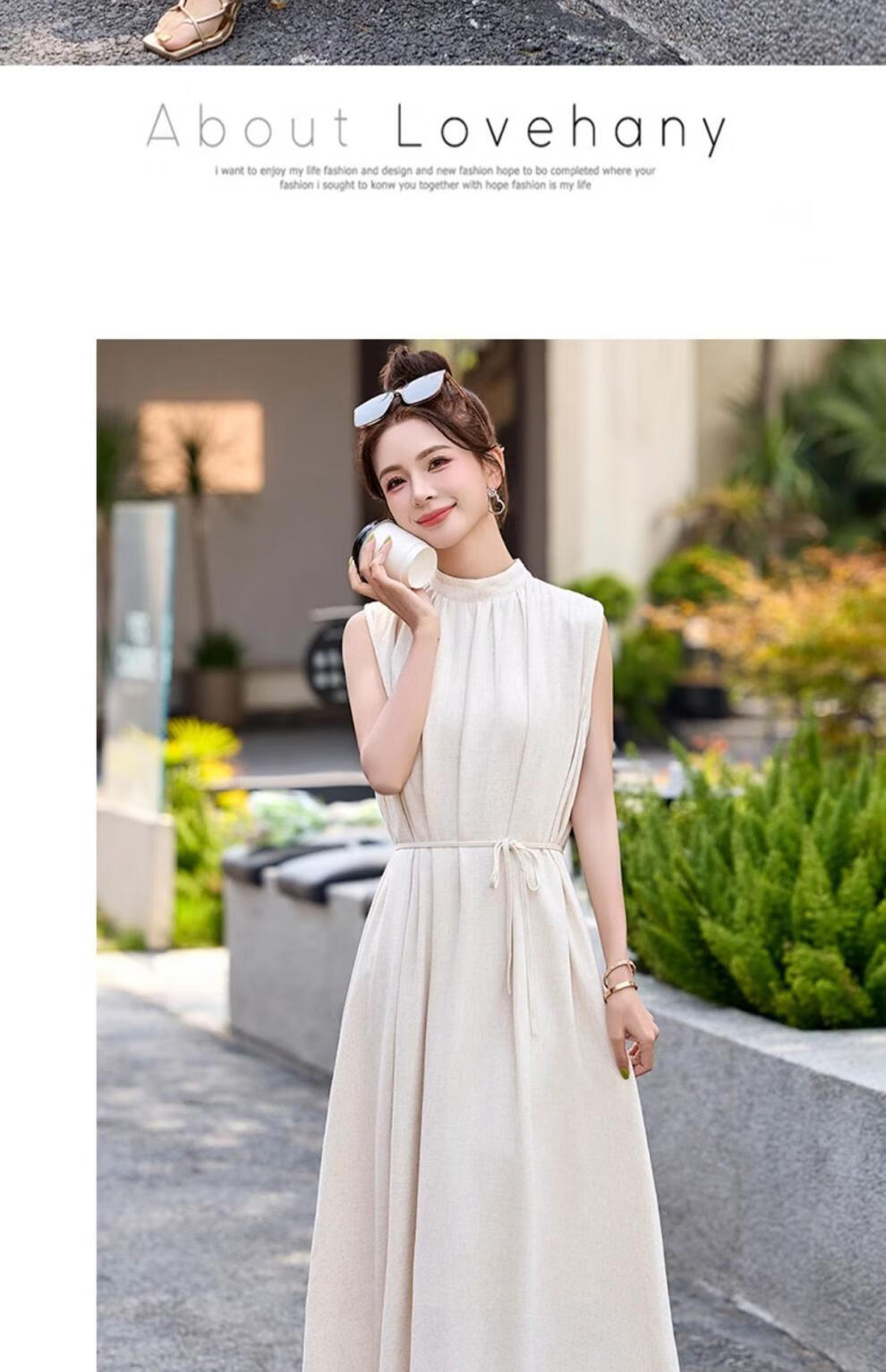 Ehangy Light Luxury Brand 2025 Summer New Dress Women's High-end Temperament Western Style Age-Reducing Simple and Elegant Skirt Beige M