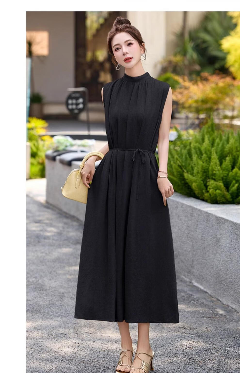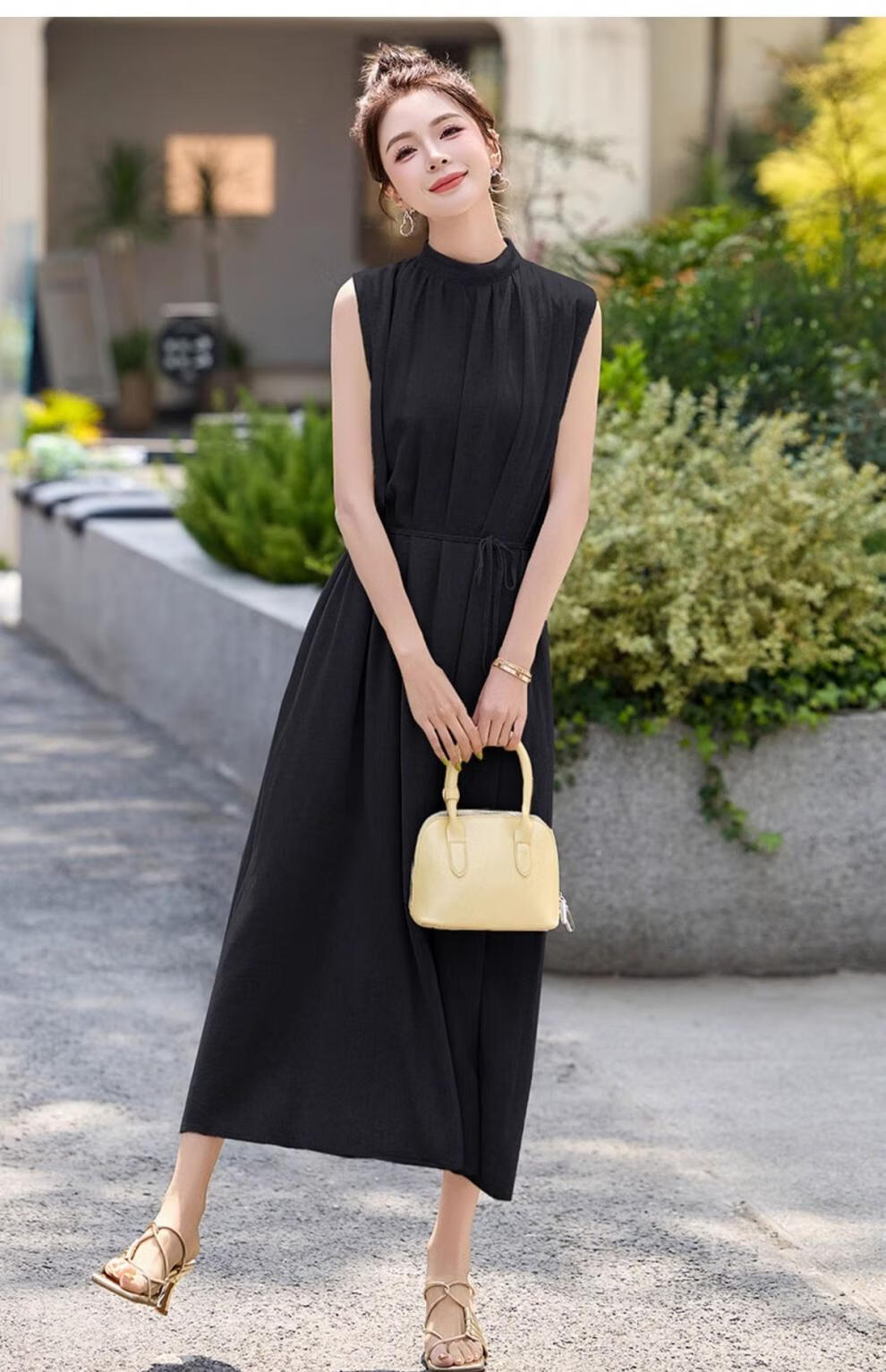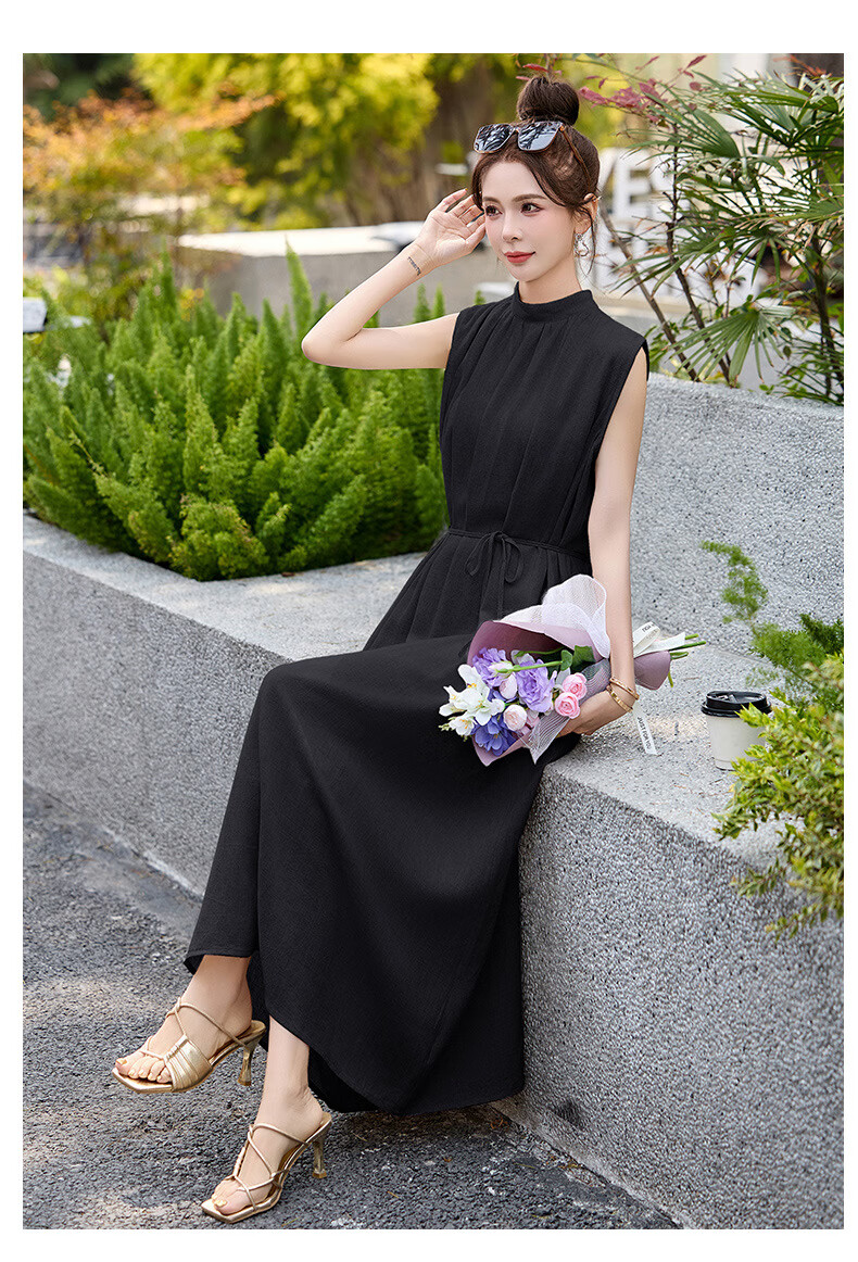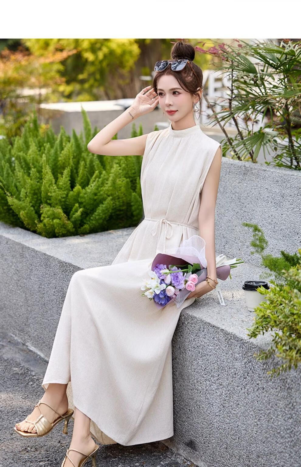 Ehangy Light Luxury Brand 2025 Summer New Dress Women's High-end Temperament Western Style Age-Reducing Simple and Elegant Skirt Beige M