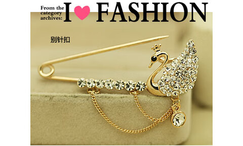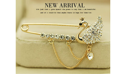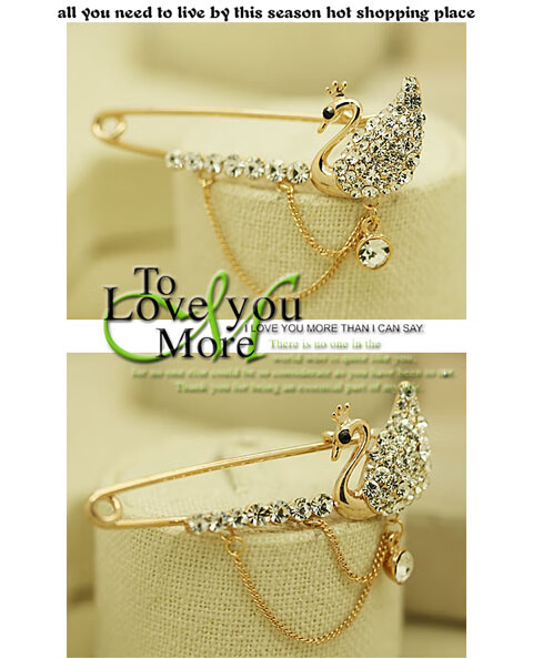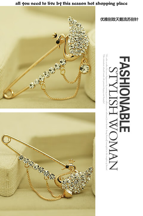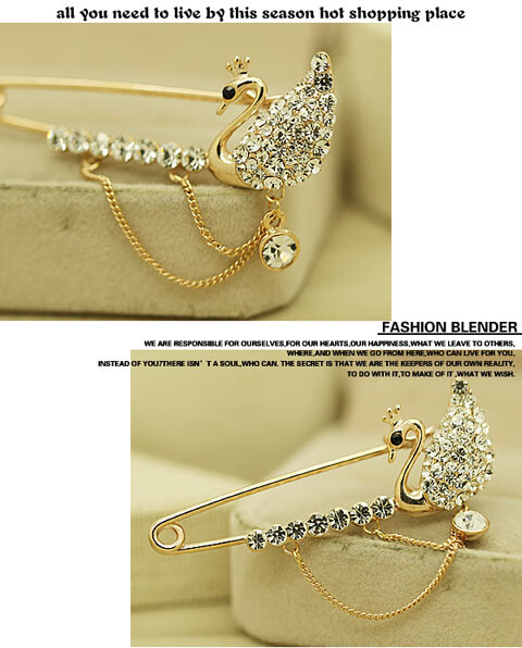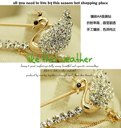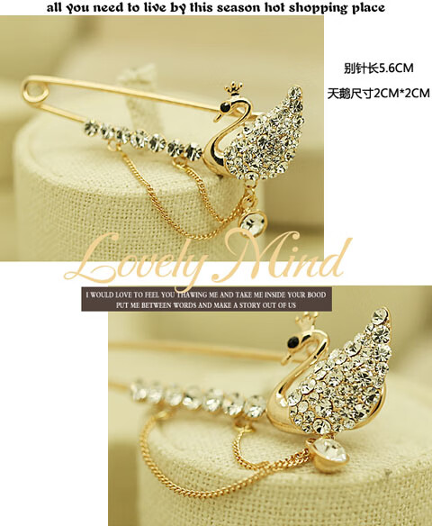 QUAMERBZ36优雅天鹅韩版别针水晶胸针女扣针韩国可爱毛衣披