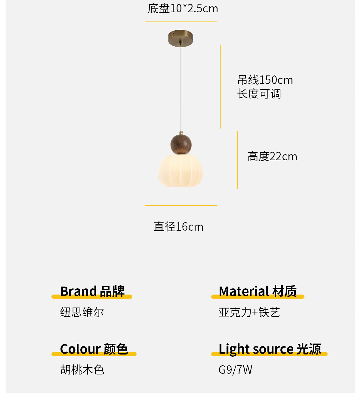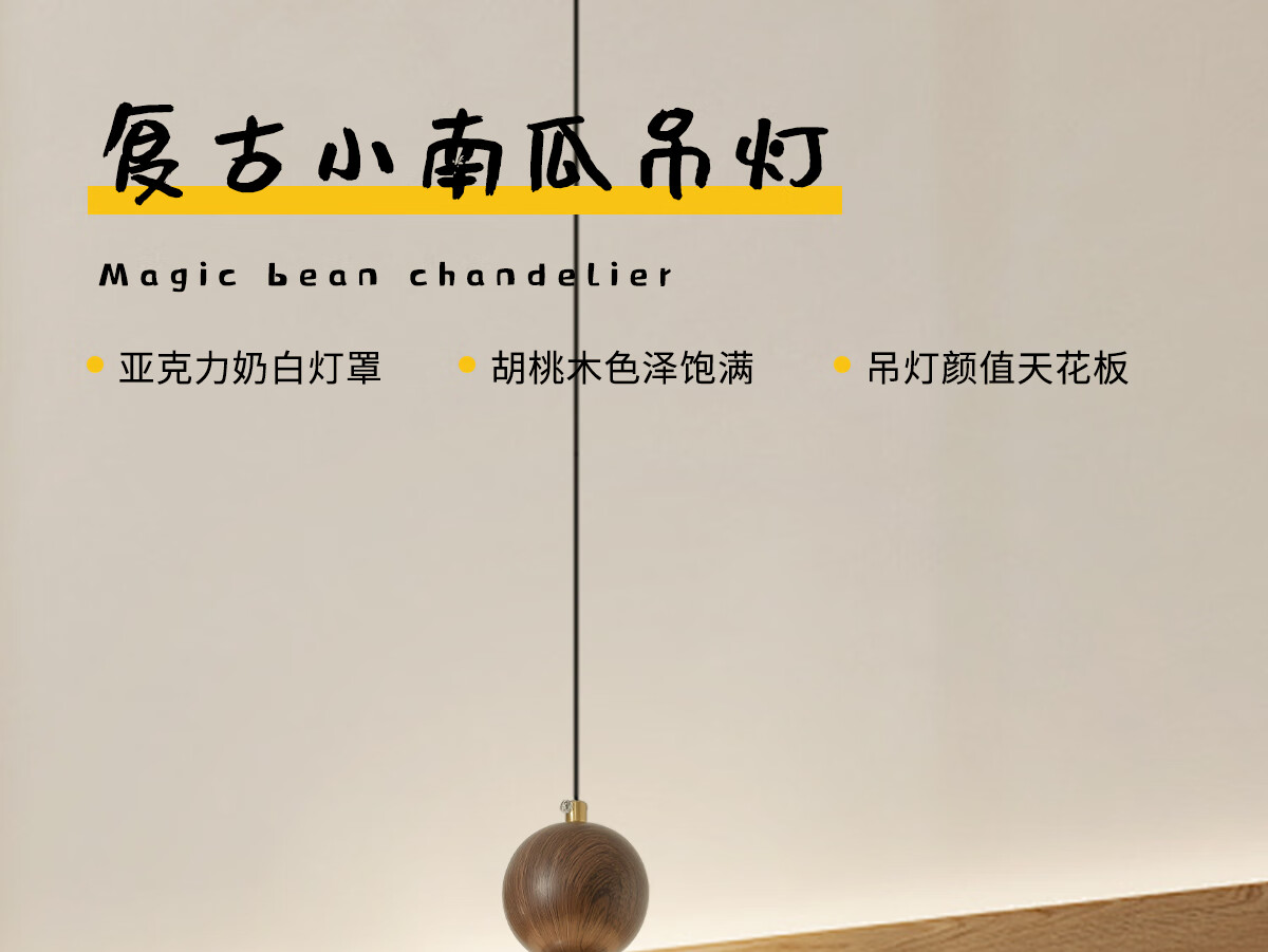 Newswell Lámpara de cabecera de dormitorio de estilo francés de mediados de siglo que levanta la entrada del pasillo de grano de madera de nogal Araña pequeña de calabaza retro Paquete 897 - dos habitaciones y dos salas de estar - cambio de luz de tres colores