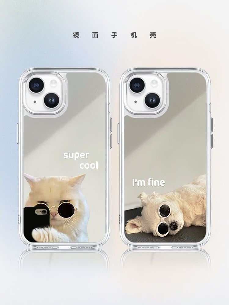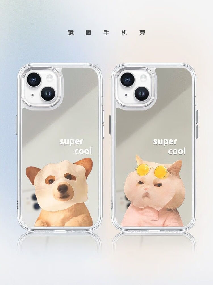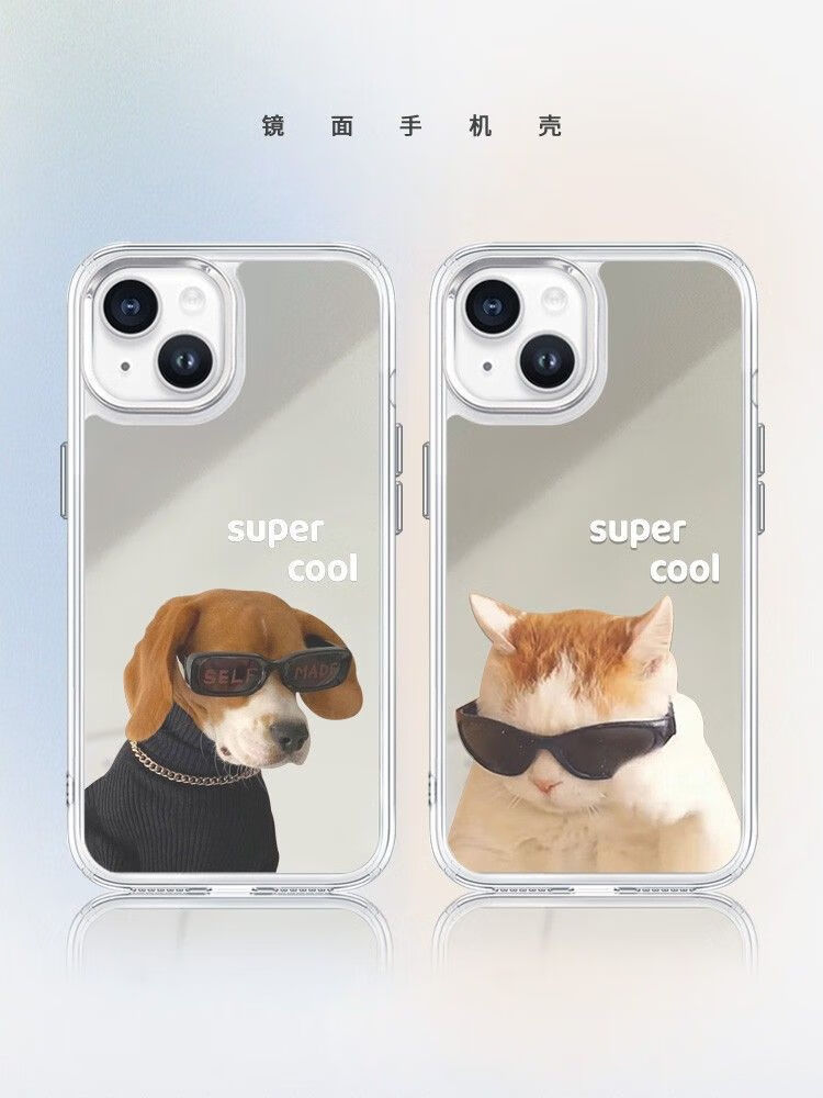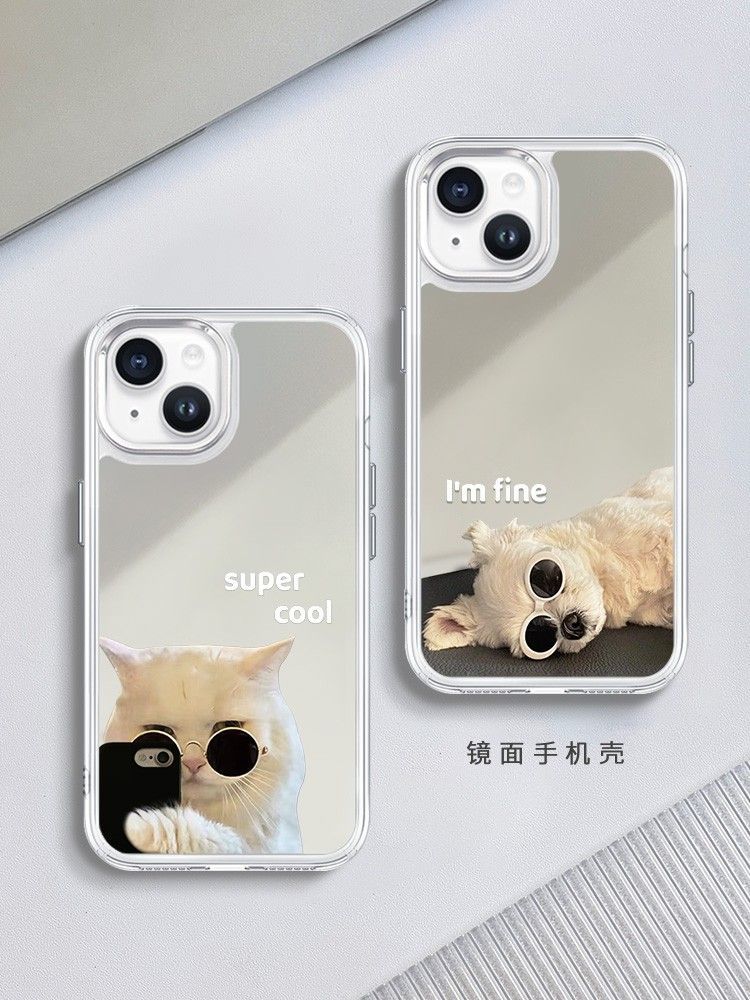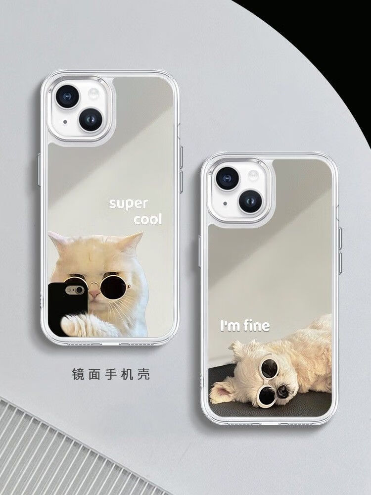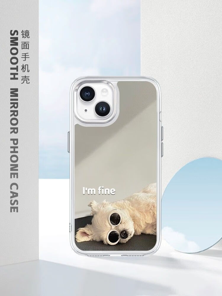 解颜面膜小狗iPhone16Promax镜面手机壳15苹果13防摔14闺蜜款补妆镜12 银镜框镜子【JM1478微笑柴犬】内气囊防尘网金属 苹果12