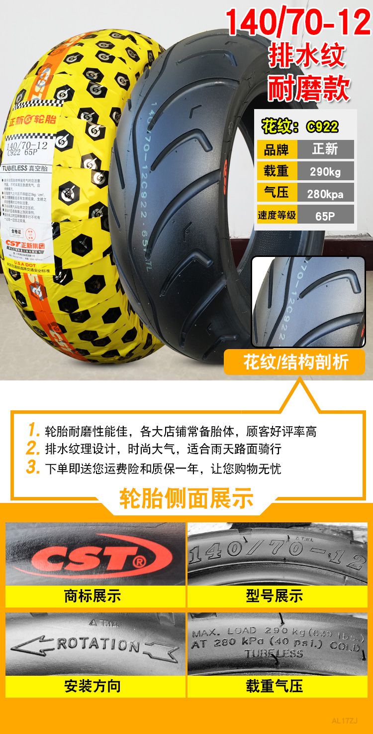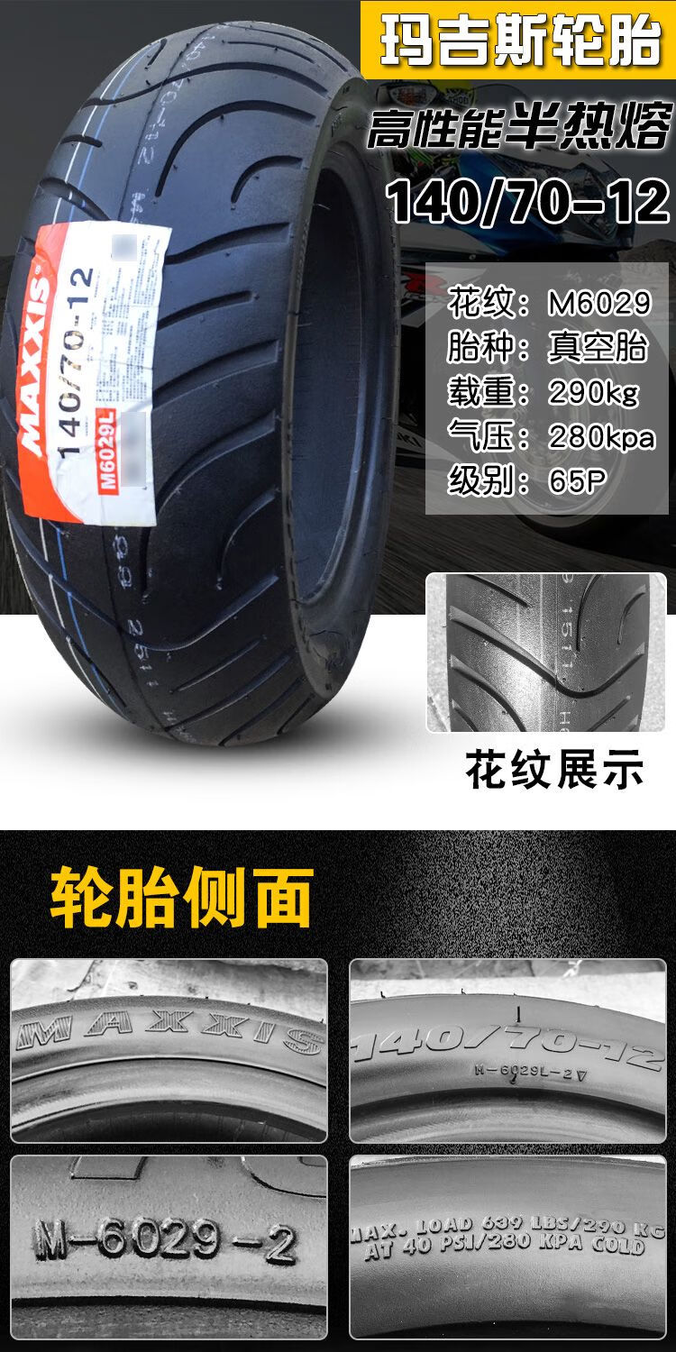 正新轮胎14070-12真空胎摩托车电动车外胎14070一寸玛吉斯半热熔 140/70-12正新耐磨真空胎