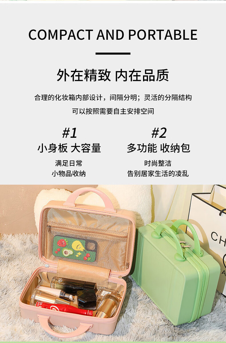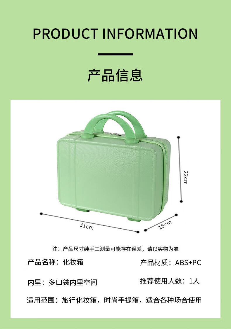 定制小手提箱行箱14寸化妆箱子伴手礼小型迷你旅行密码箱收纳包 绿 1英寸 14寸