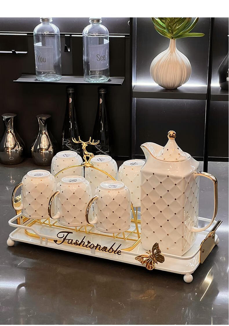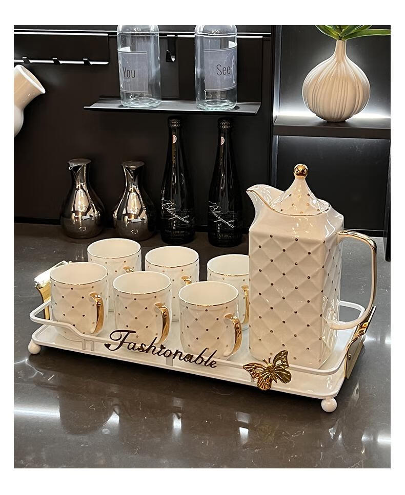 Yusenyi high-end tea set set light luxury home hospitality teapot teacup office hospitality Shuizi high-end tea set teacup 9-piece set 691 gift box