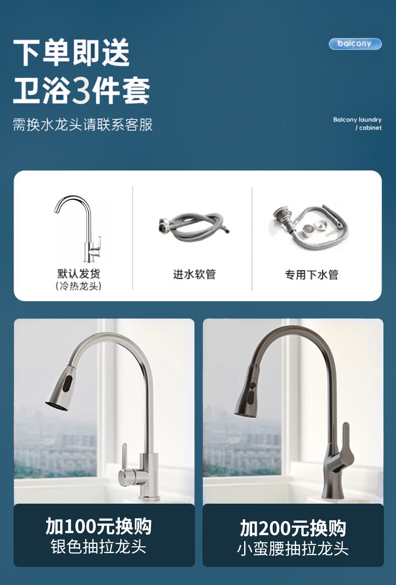 XMSJ定制铝阳台洗衣机柜组合定制滚筒洗衣槽池台带搓板一体洗衣柜伴侣 门店带肥皂架13063左盆雪域