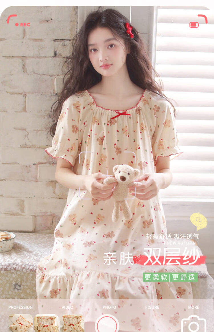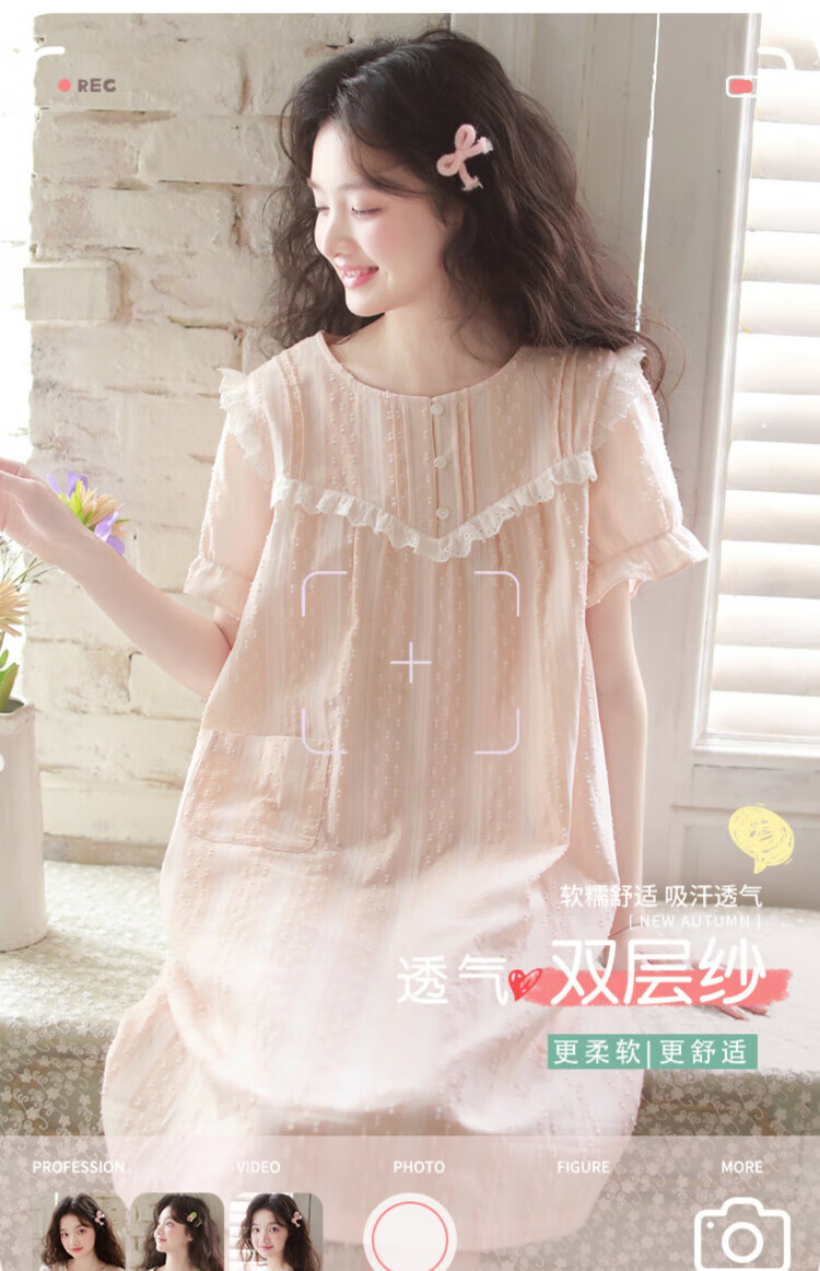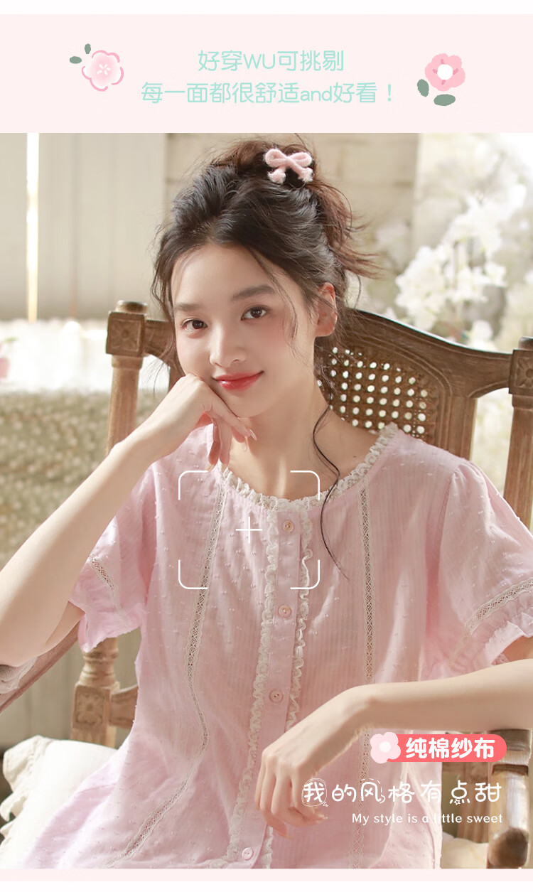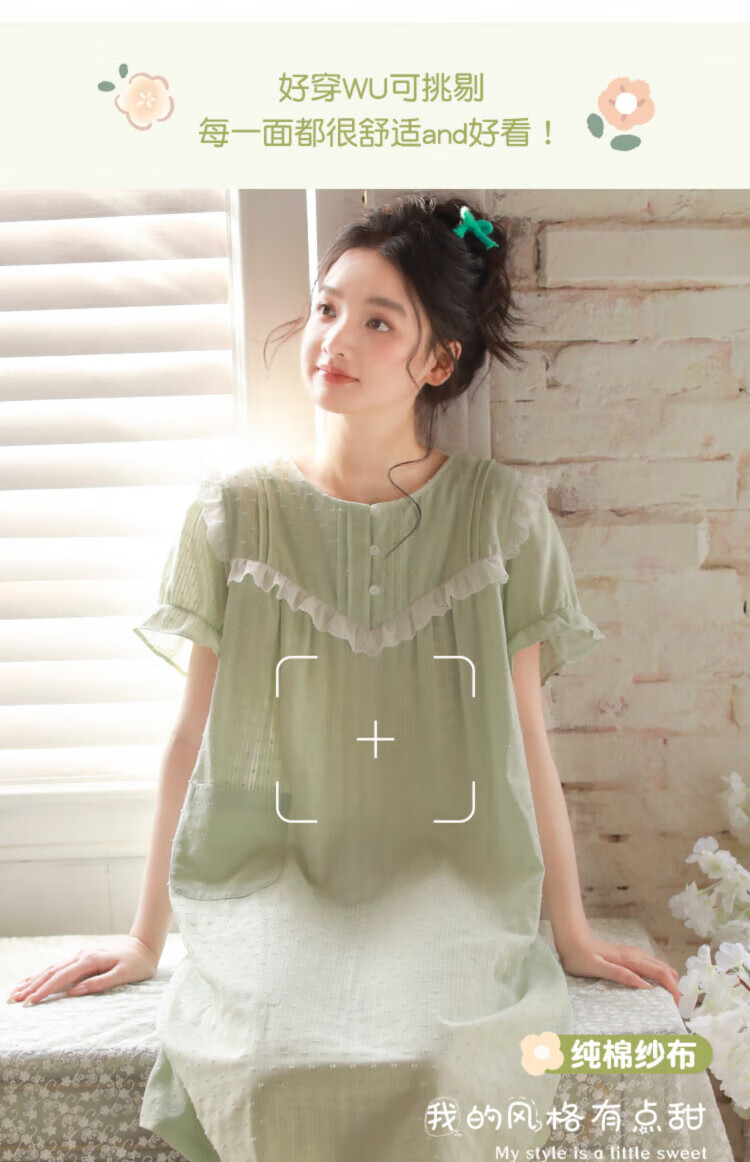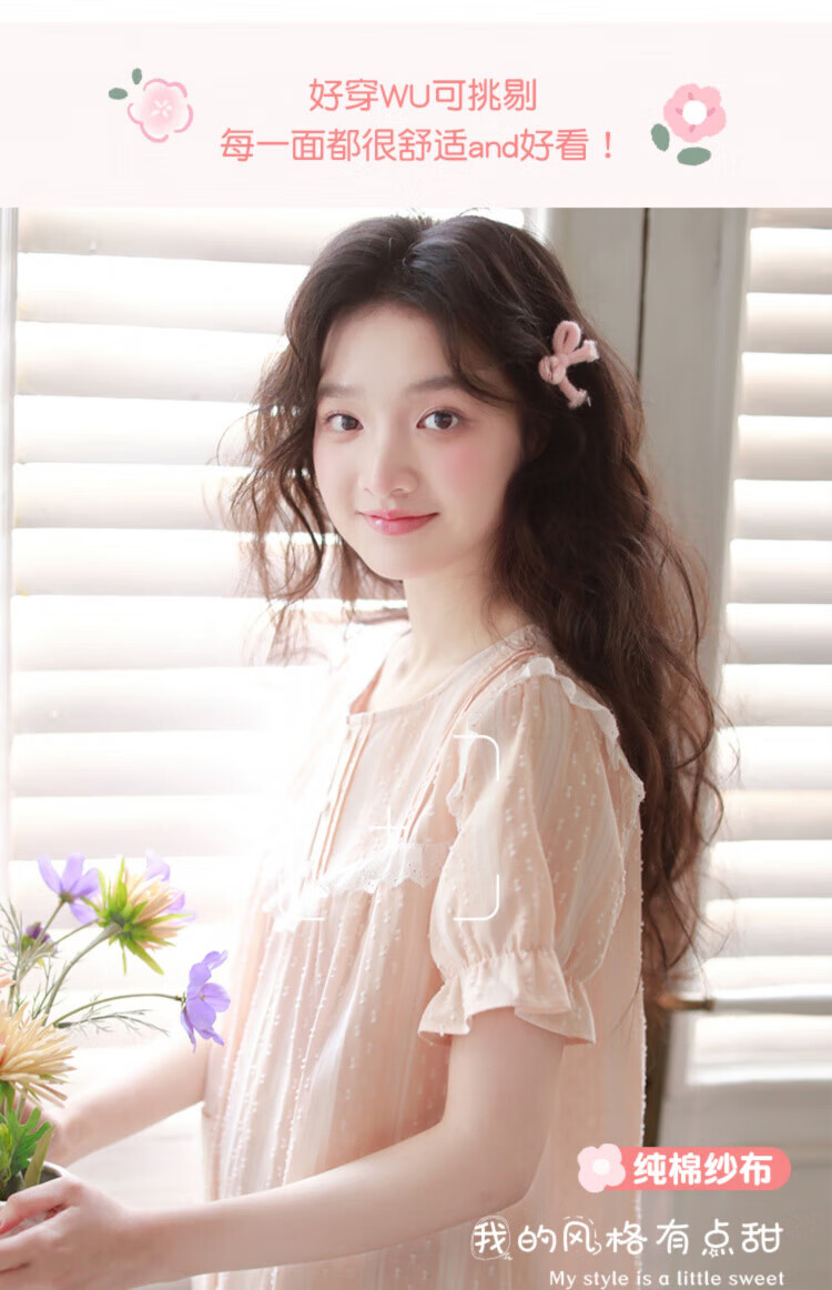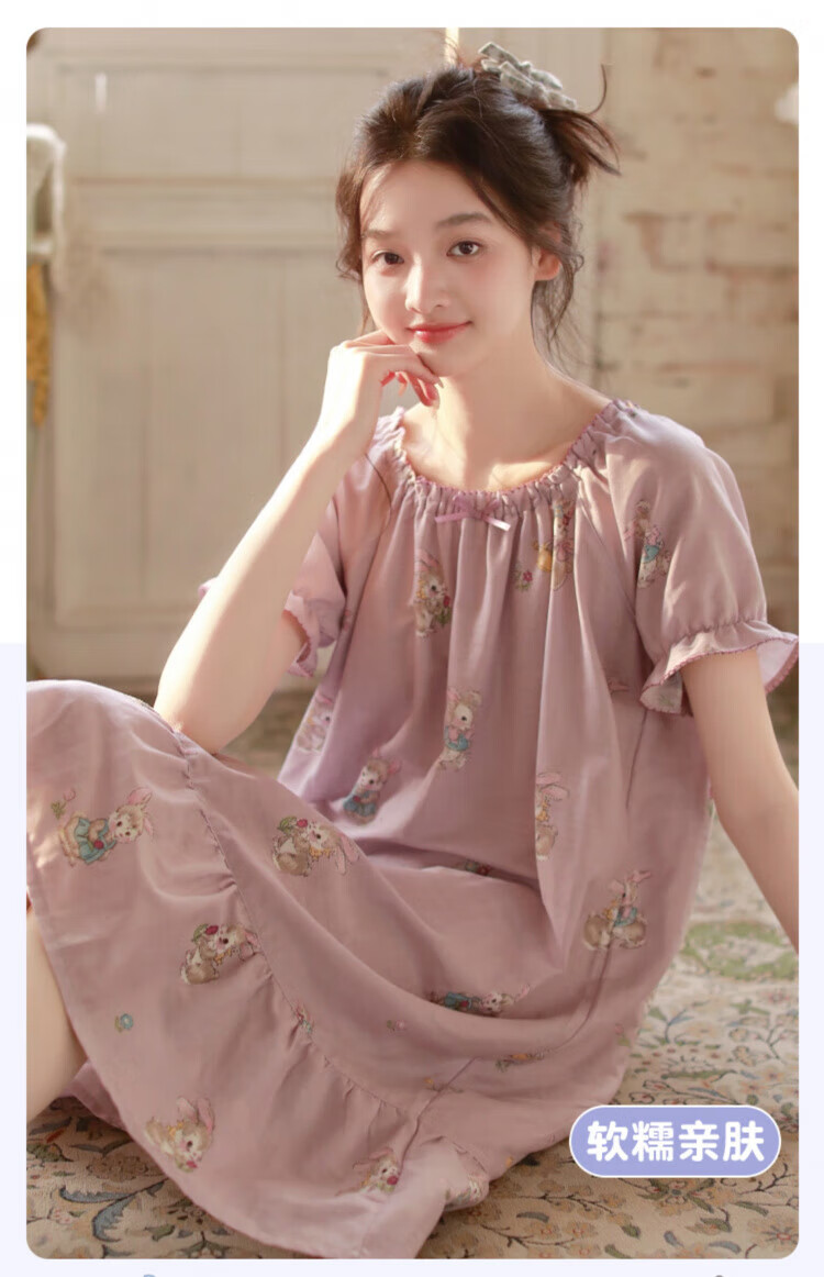 Yalu-Nachthemd für Damen, Sommer, Prinzessinnen-Stil, kurzärmelig, 2025, Sommer, neuer Pyjama, Gaze aus reiner Baumwolle, süße, mädchenhafte Baumwolle, Heimkleidung, 3893, Lila, XL (empfohlen 125–140 Jin Jin entspricht etwa 0,5 kg)