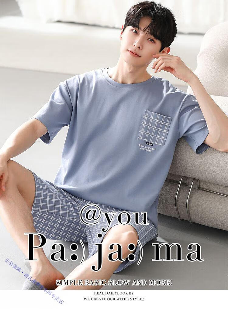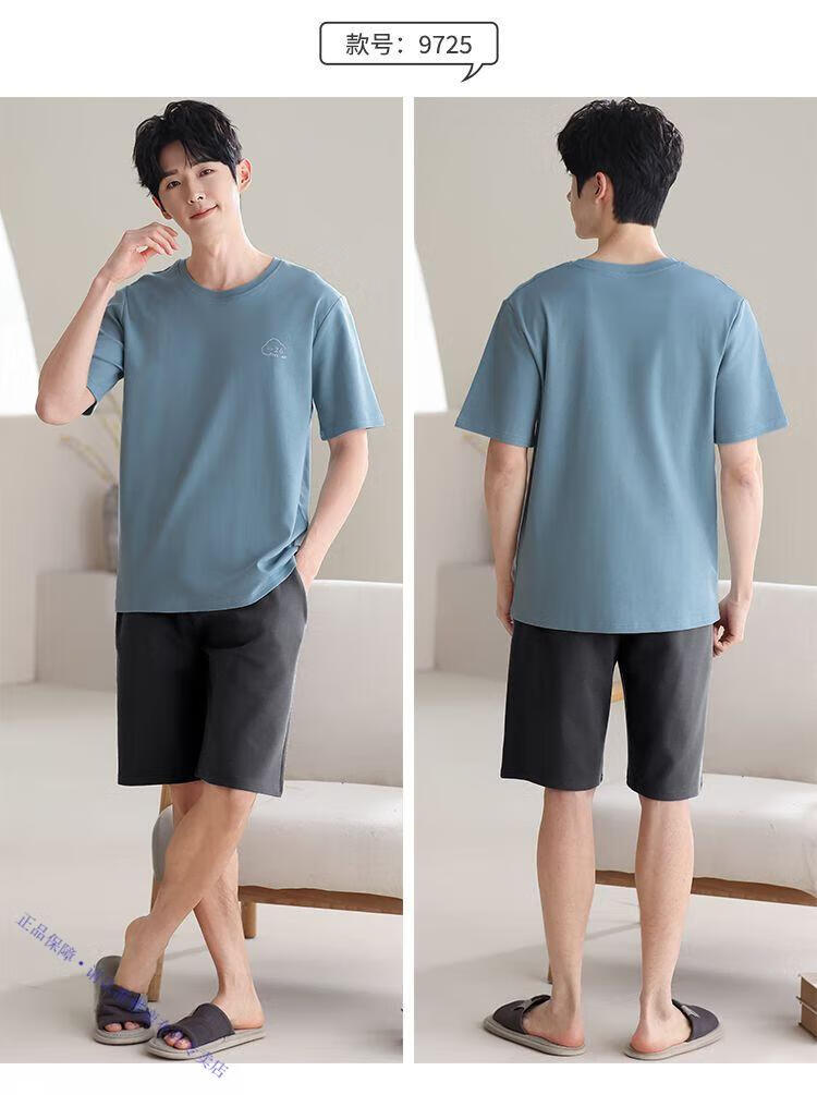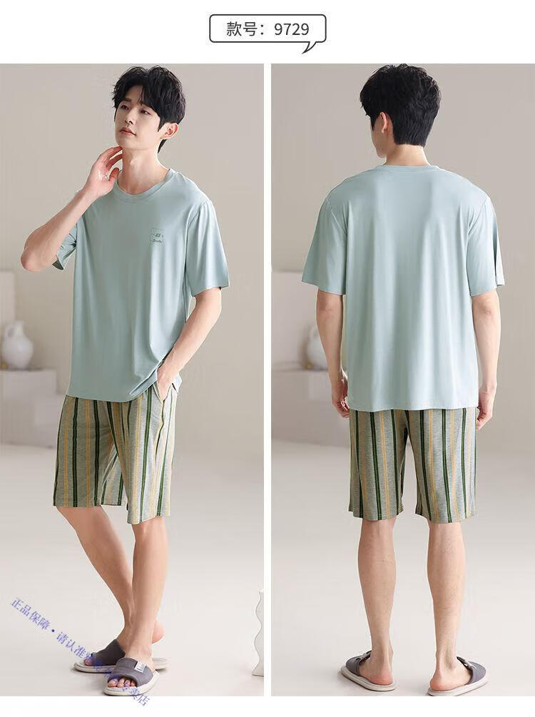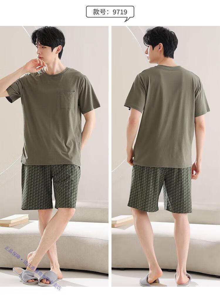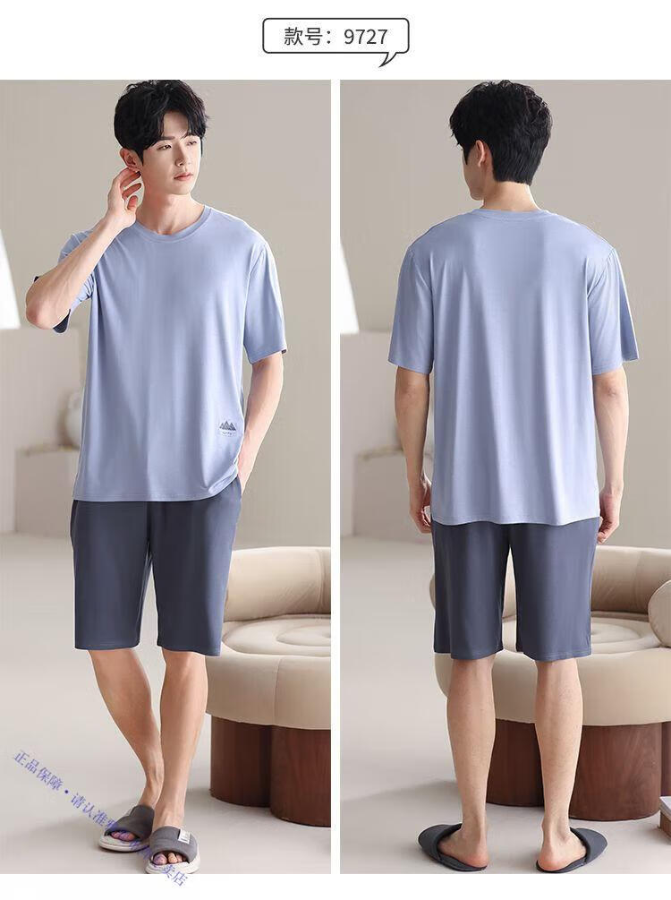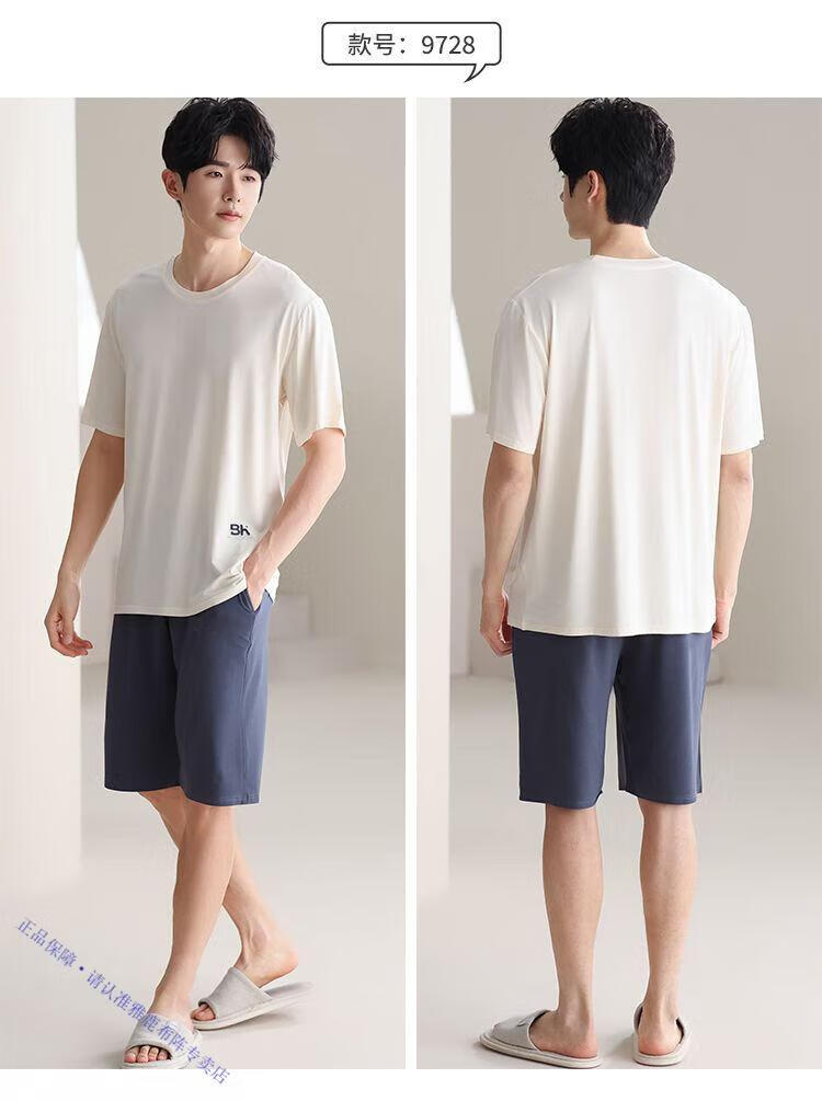 雅鹿男士睡衣夏季四季通用男生短袖帅气夏天大码棉绸可外穿家居服 9731格斯黑 棉绸短袖短裤 2XL 【150-180斤】