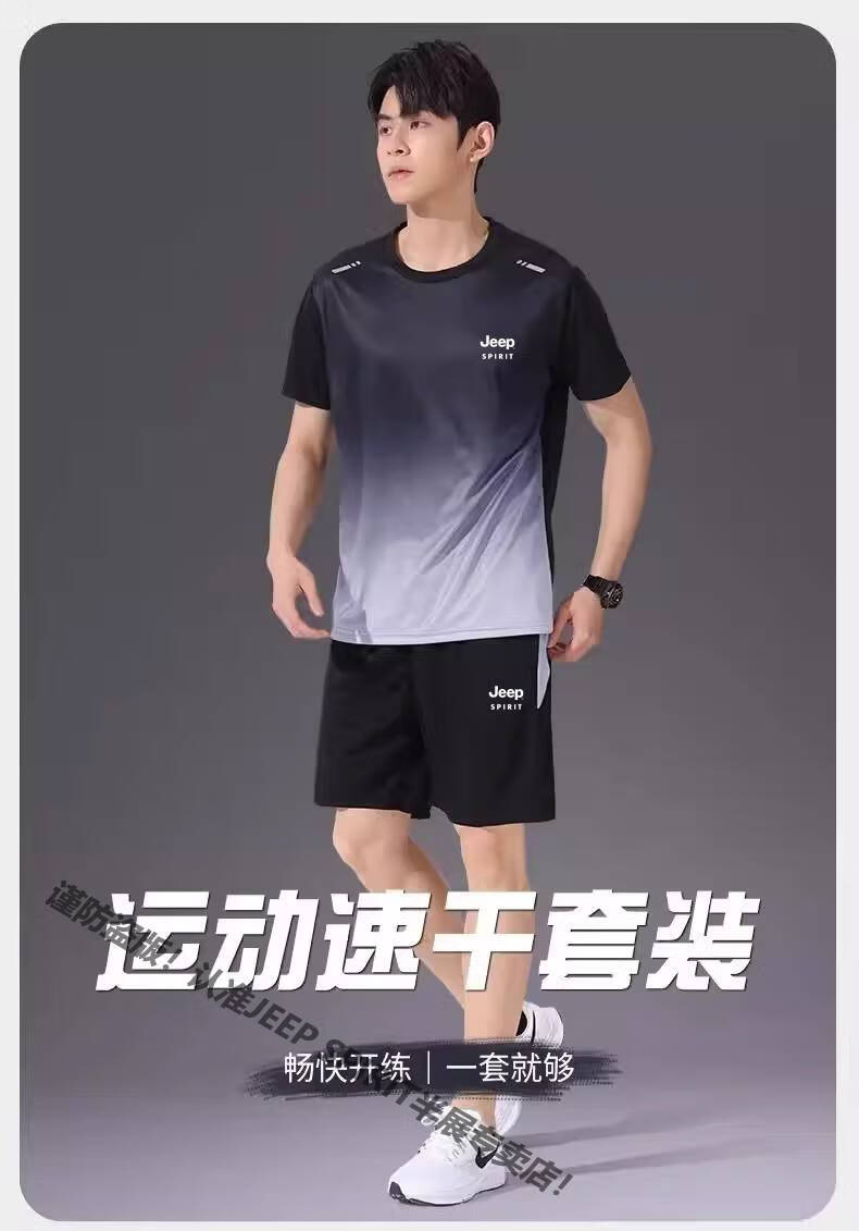 JEEP SPIRIT Jeep Ice Silk Suit Men's Summer Thin Quick-Drying Short-Sleeved T-Shirt Running Fitness Basketball Badminton Suit 9901 Black Green Suit M