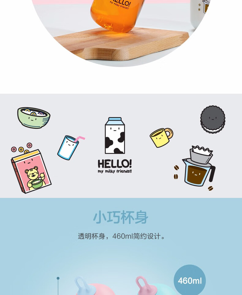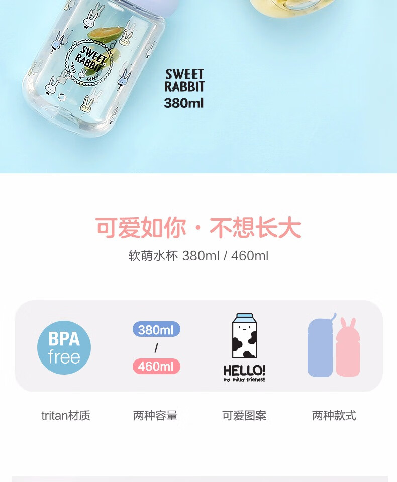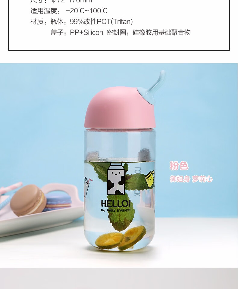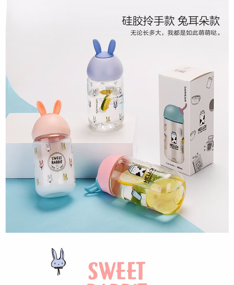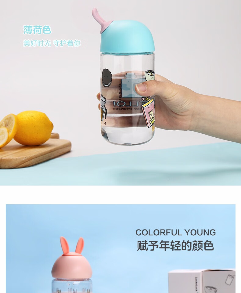 乐扣乐扣软萌水杯Tritan塑料杯子夏天女便携可爱少女儿童小学生 薄荷色 ABF653MIT 460ml