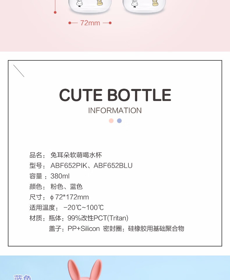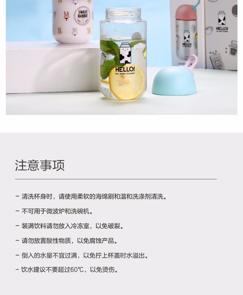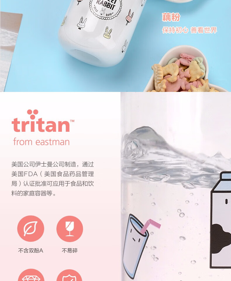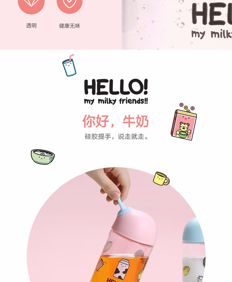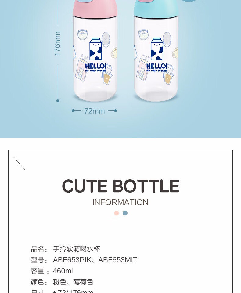 乐扣乐扣软萌水杯Tritan塑料杯子夏天女便携可爱少女儿童小学生 薄荷色 ABF653MIT 460ml