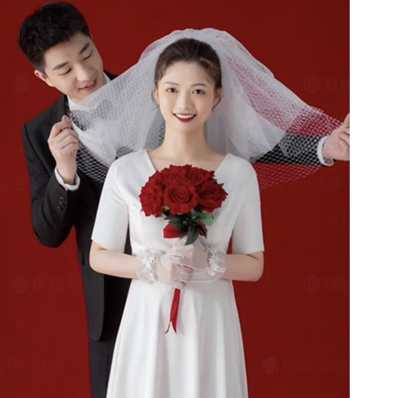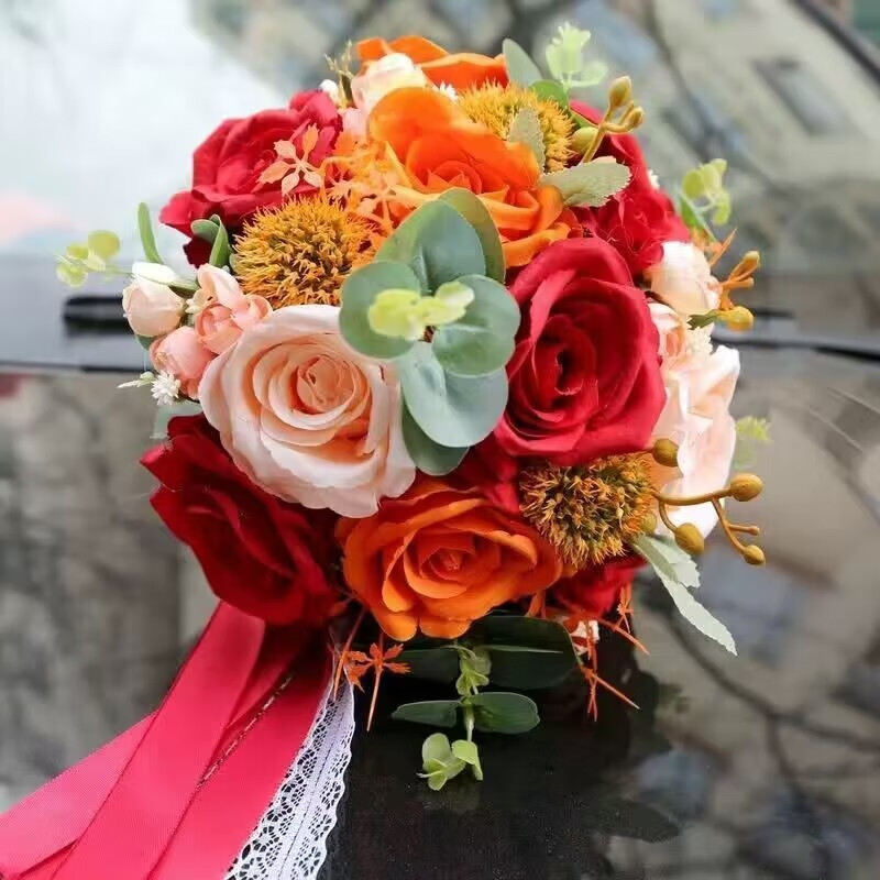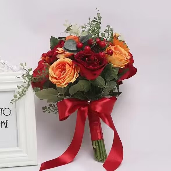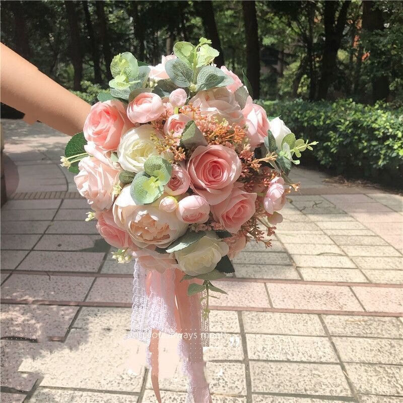 CLCEY新款森系茶花苞仿真白色玫瑰花婚纱拍照摄影新娘结婚庆订婚手捧花 百年好合