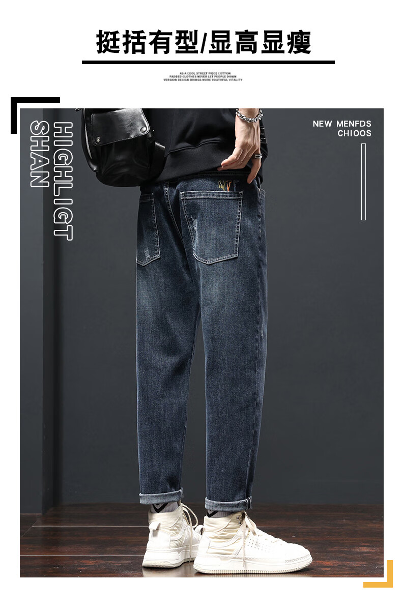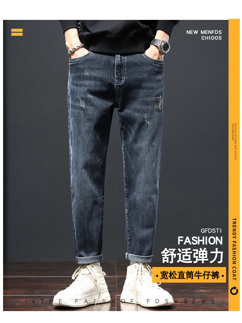 Джинсы Playboy (PLAYBOY) мужские свободные прямые летние модные бренды 2025 года, новый Guangzhou Xintang, тонкие эластичные повседневные брюки для мужчин k882, светло-голубые брюки с девятью точками, тонкие 28 рекомендаций 90-100Jin Jin равен 0,5 кг