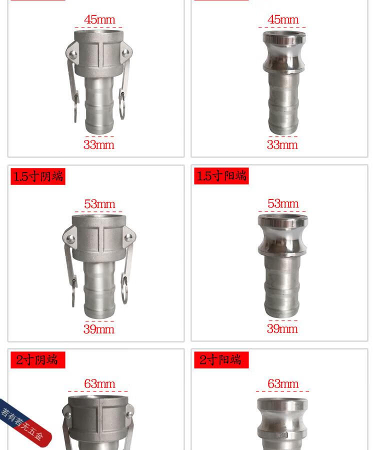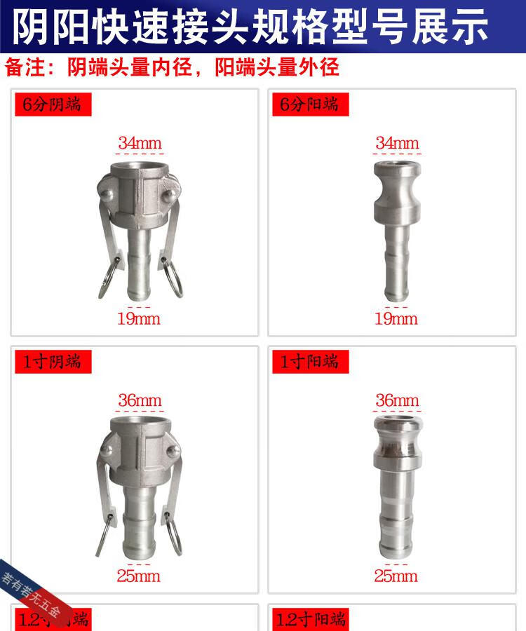 XMSJ阴阳端接头公母快速12346寸506580卸油管 1.5寸阴端/DN40母