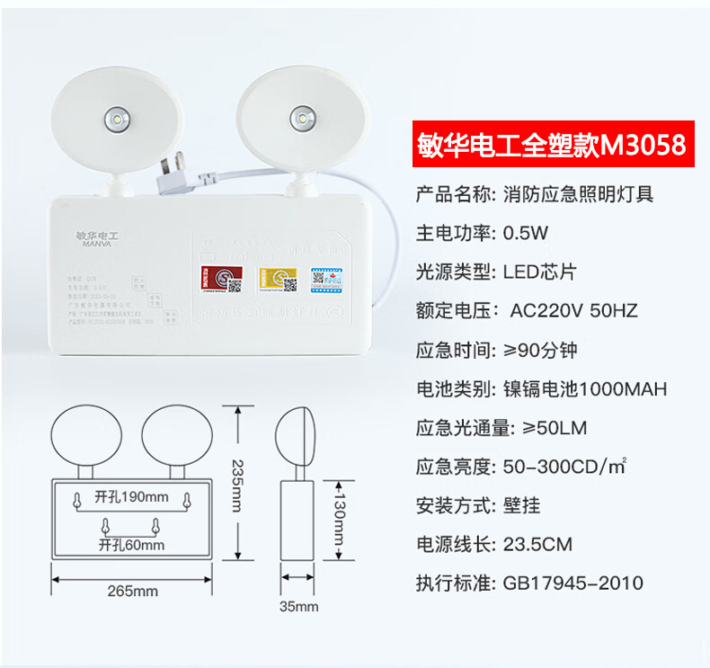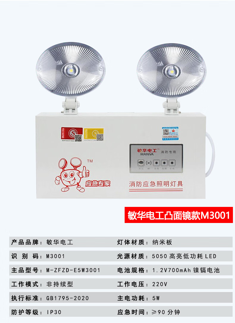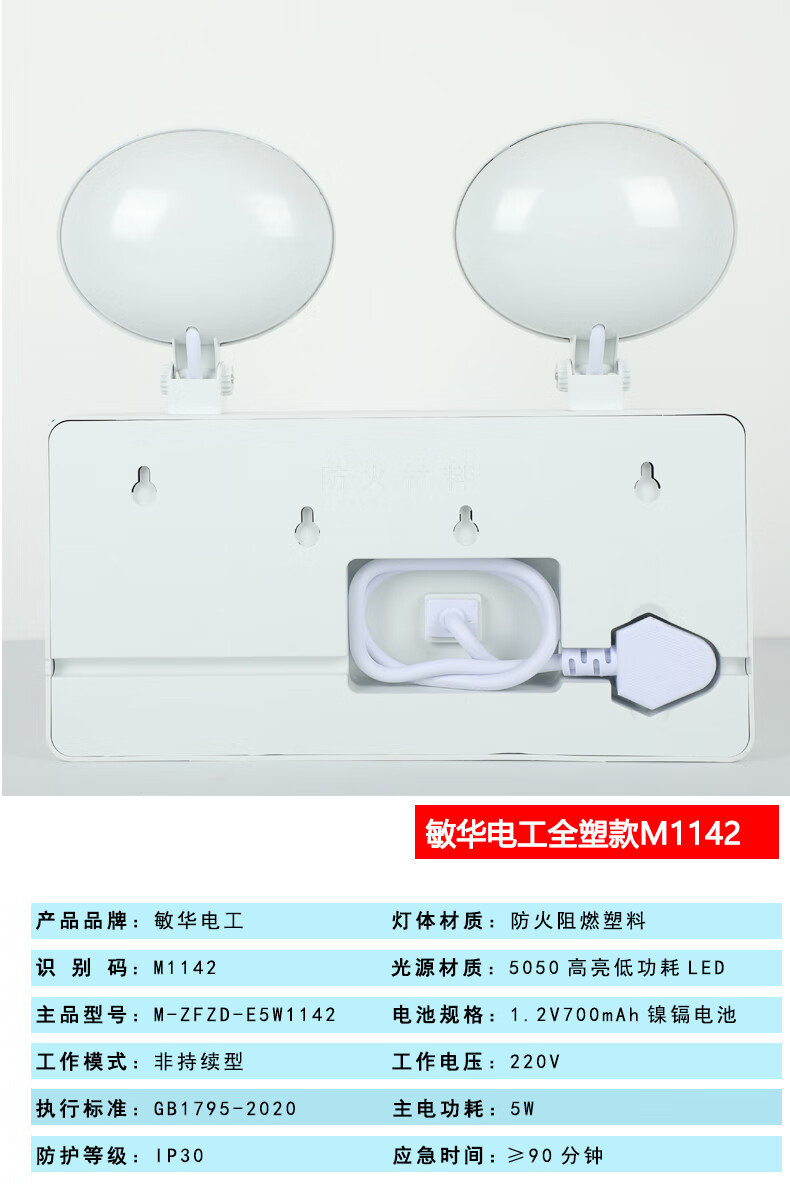 敏华电工(MINHUA)敏华消防应急灯安全出口led应急照明紧急停电应急劳士双头应急灯 M1349 计算器式