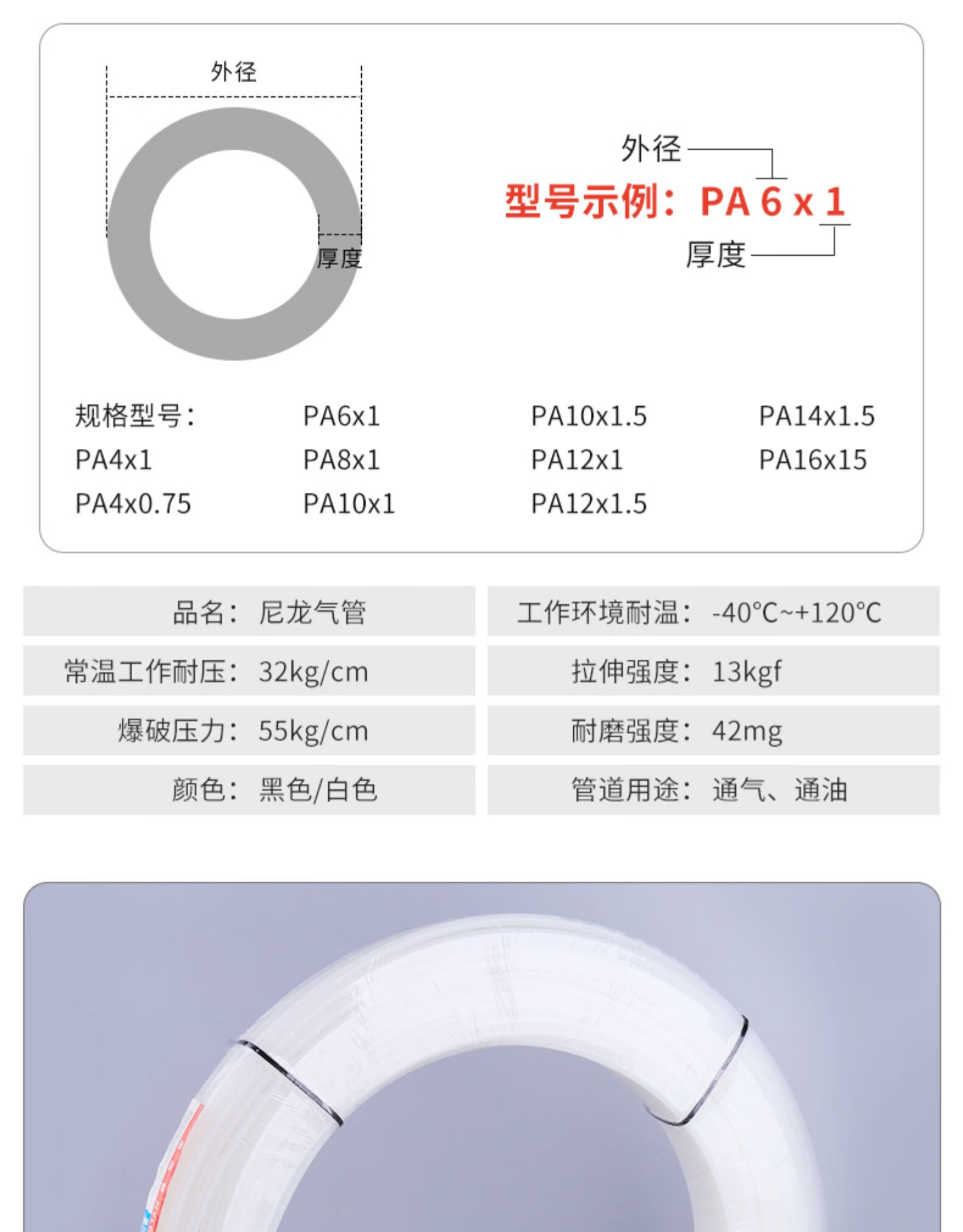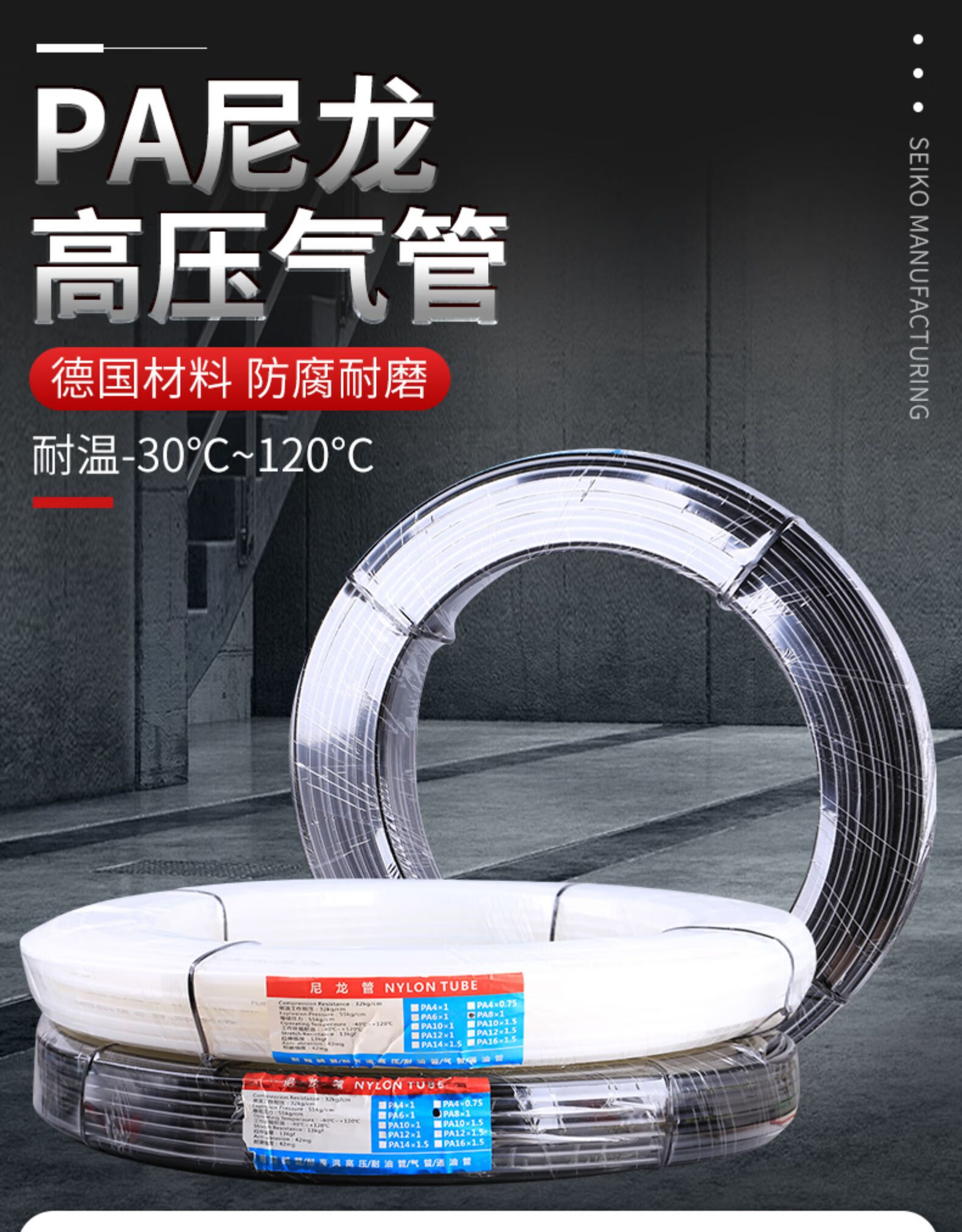 XMSJPA11-6尼龙气管耐压20公斤兆帕86mm硬管加厚防爆耐腐蚀高温高压 PA12101=100米 外径12内径10壁