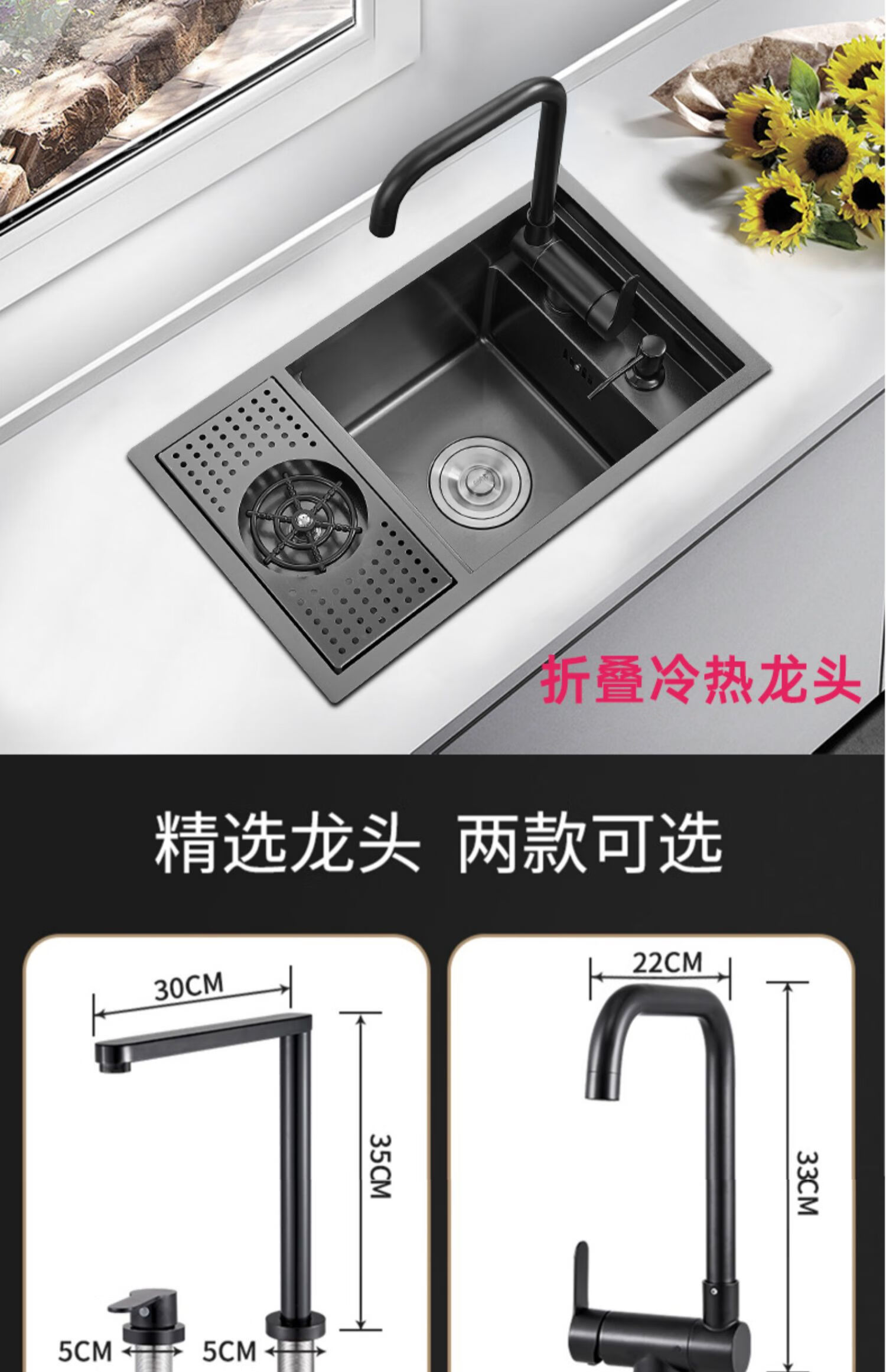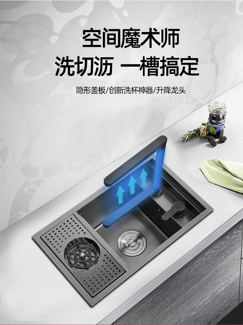 科勒(KOHLER)吧台隐形水槽小单槽带盖板304不锈钢高压洗杯器隐藏中岛台洗菜盆 3522隐形水槽+折叠冷热龙头